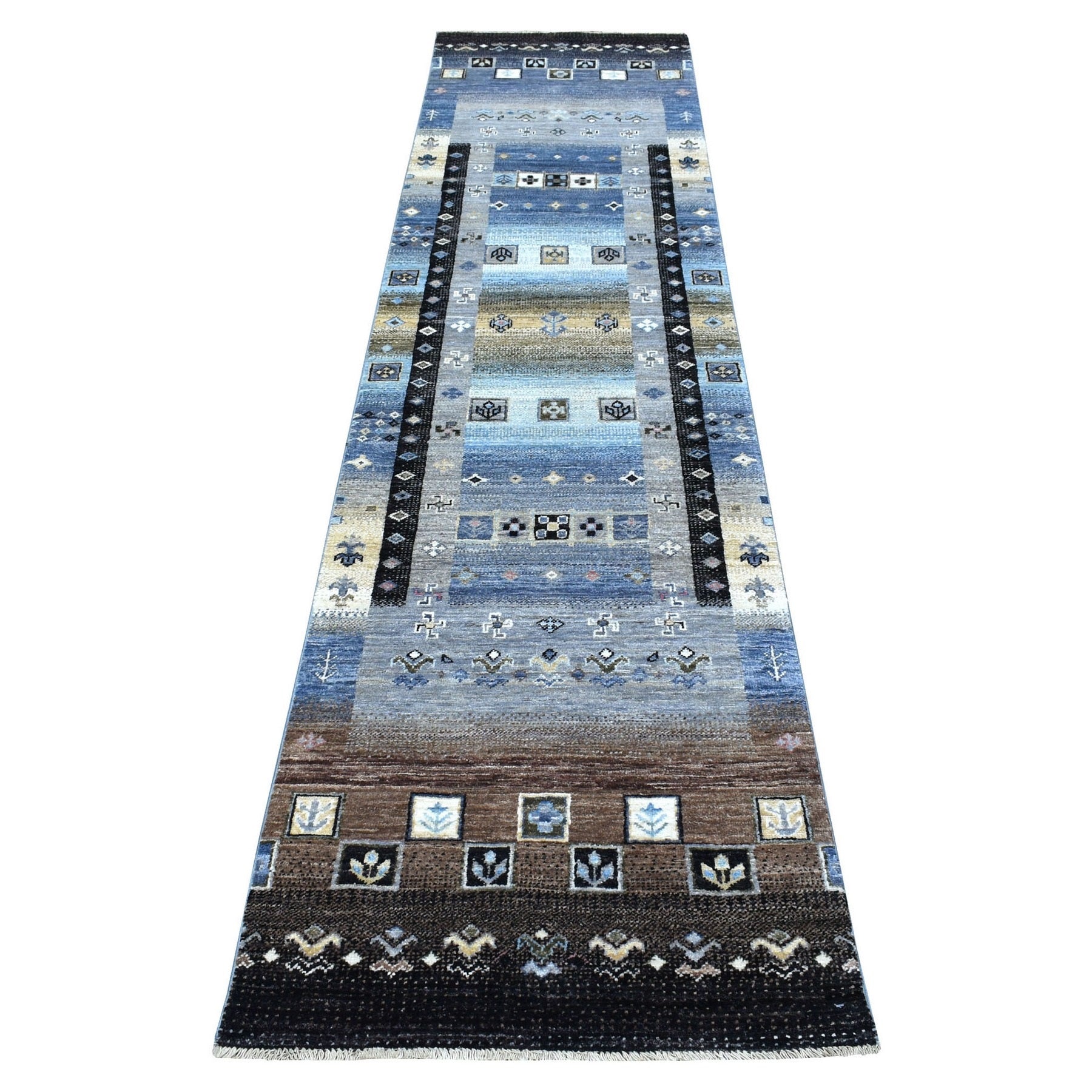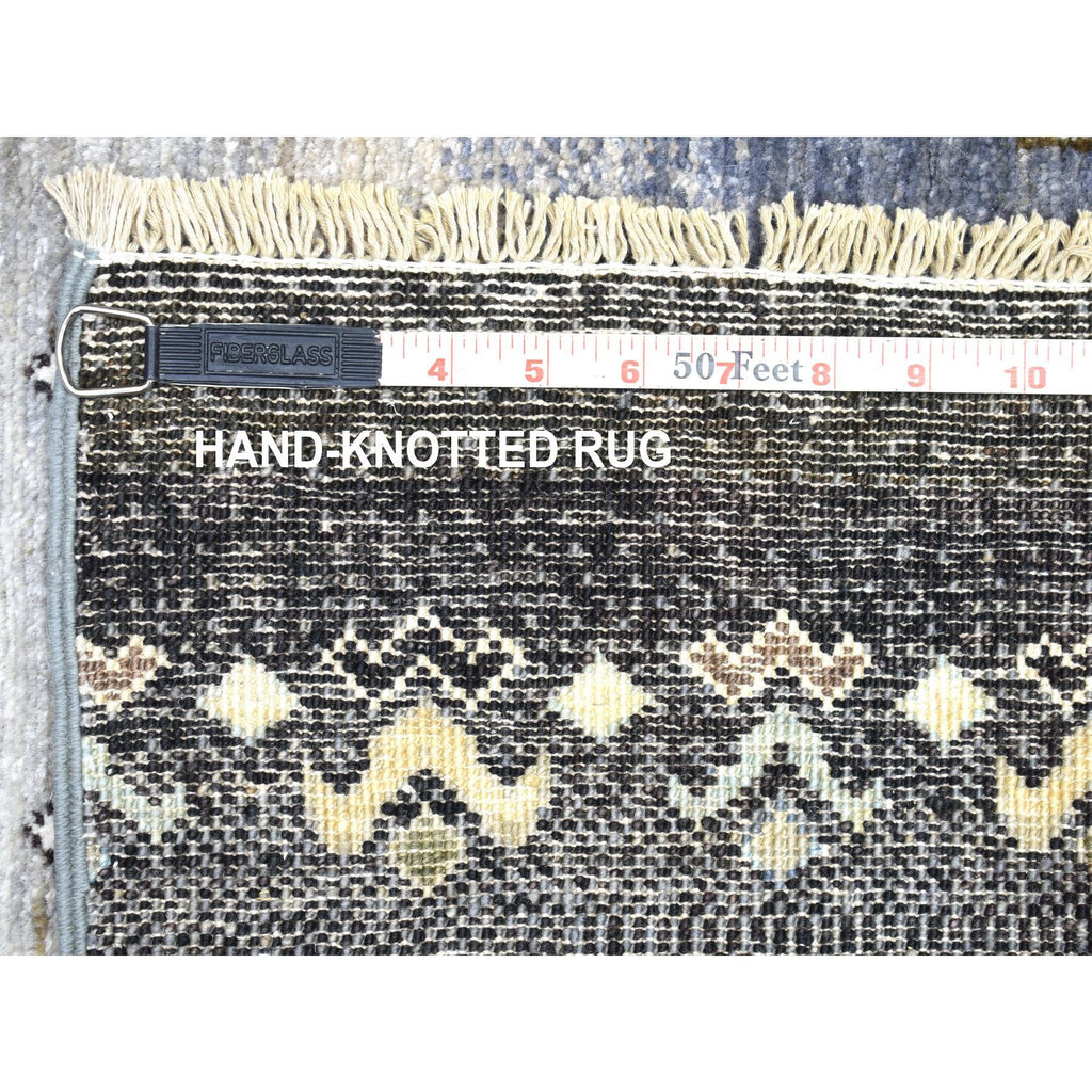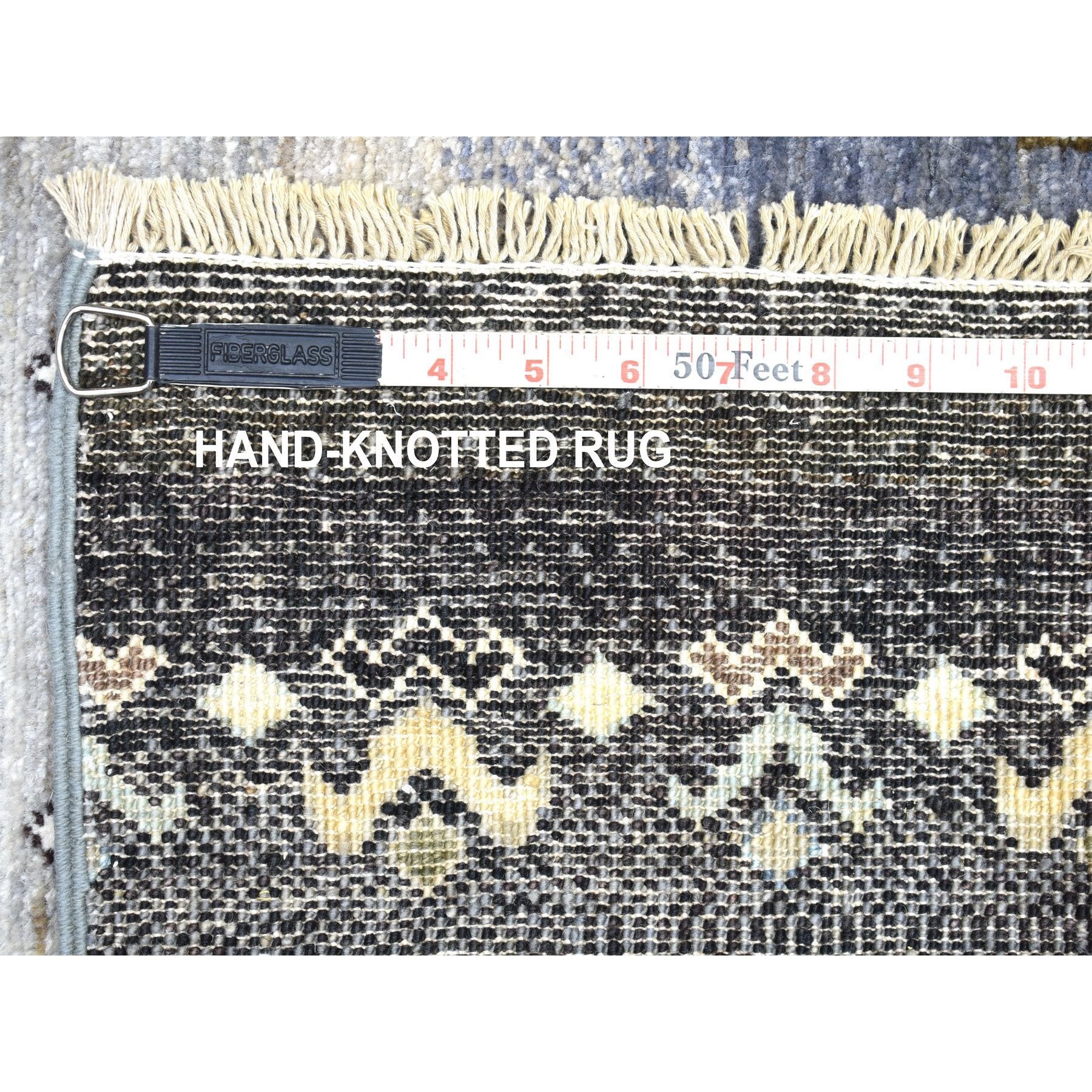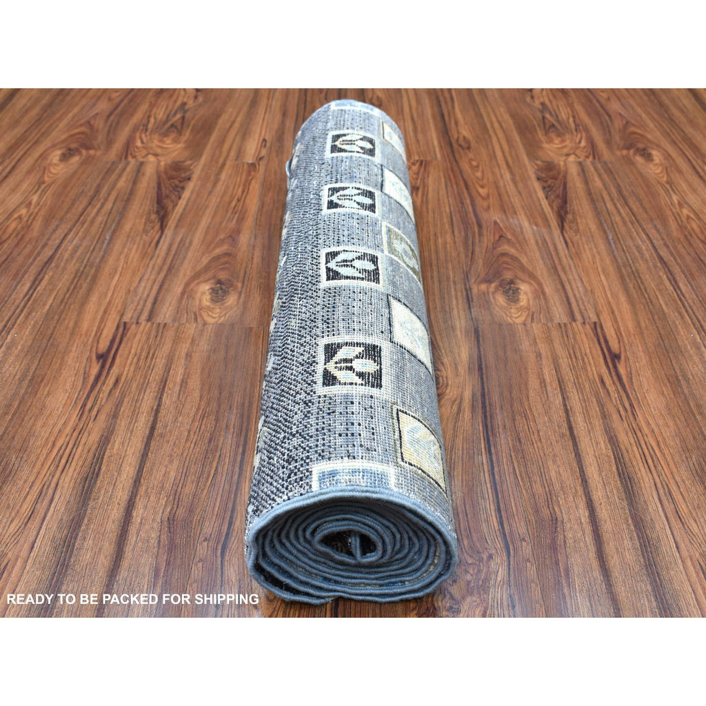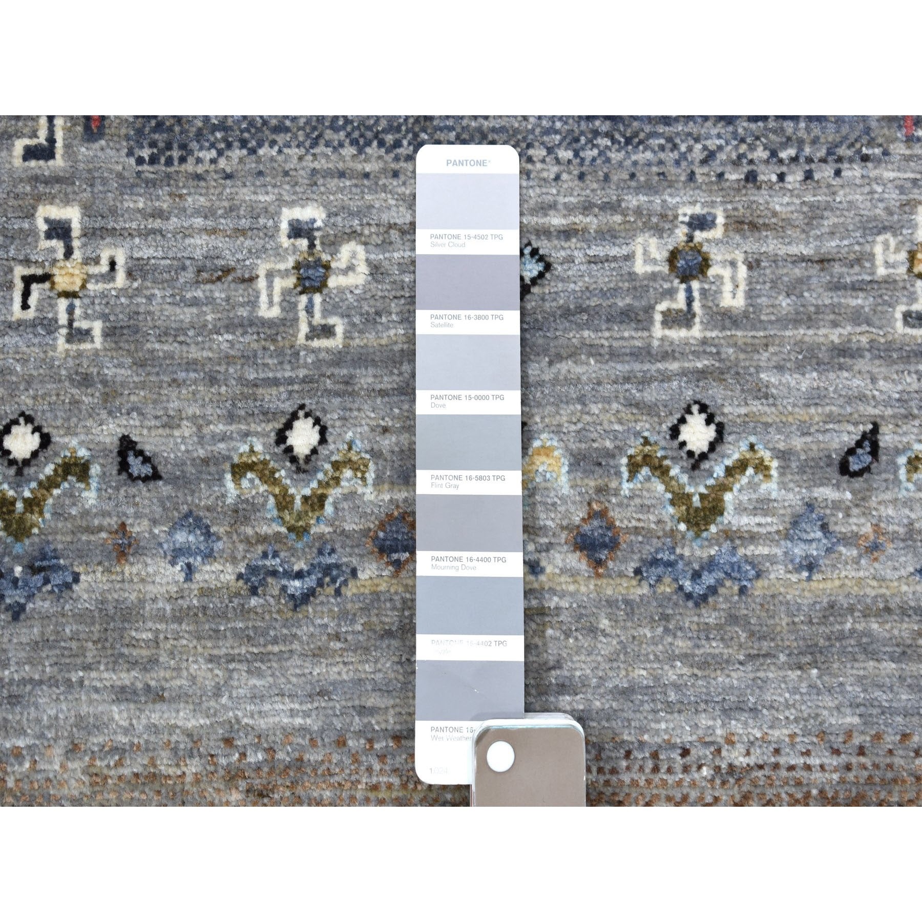 2'4"x9'9" Hand Knotted Gray Kashkuli Gabbeh Pictorial Design Extra Soft Wool Oriental Runner Rug FWR405198