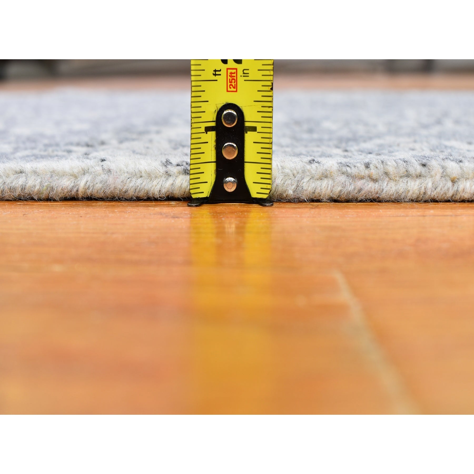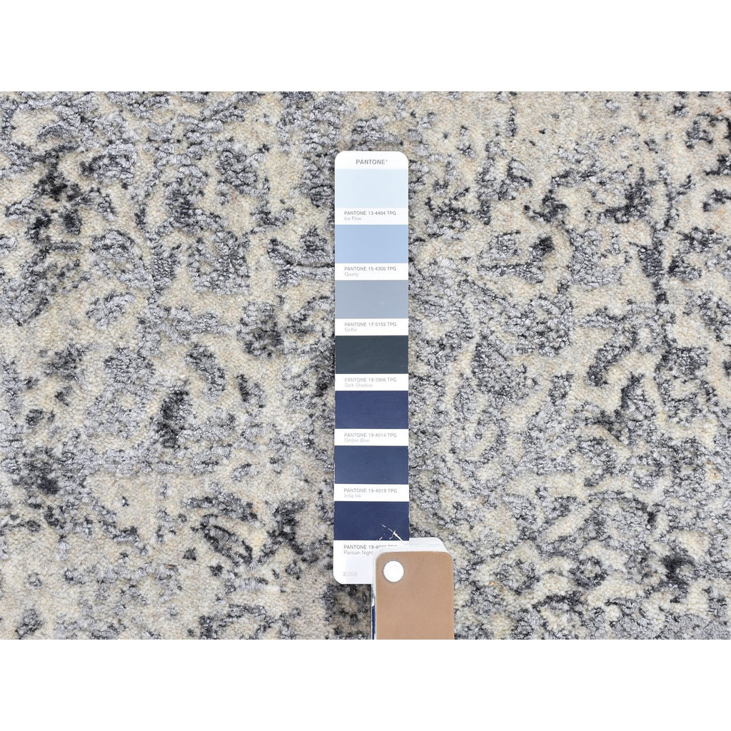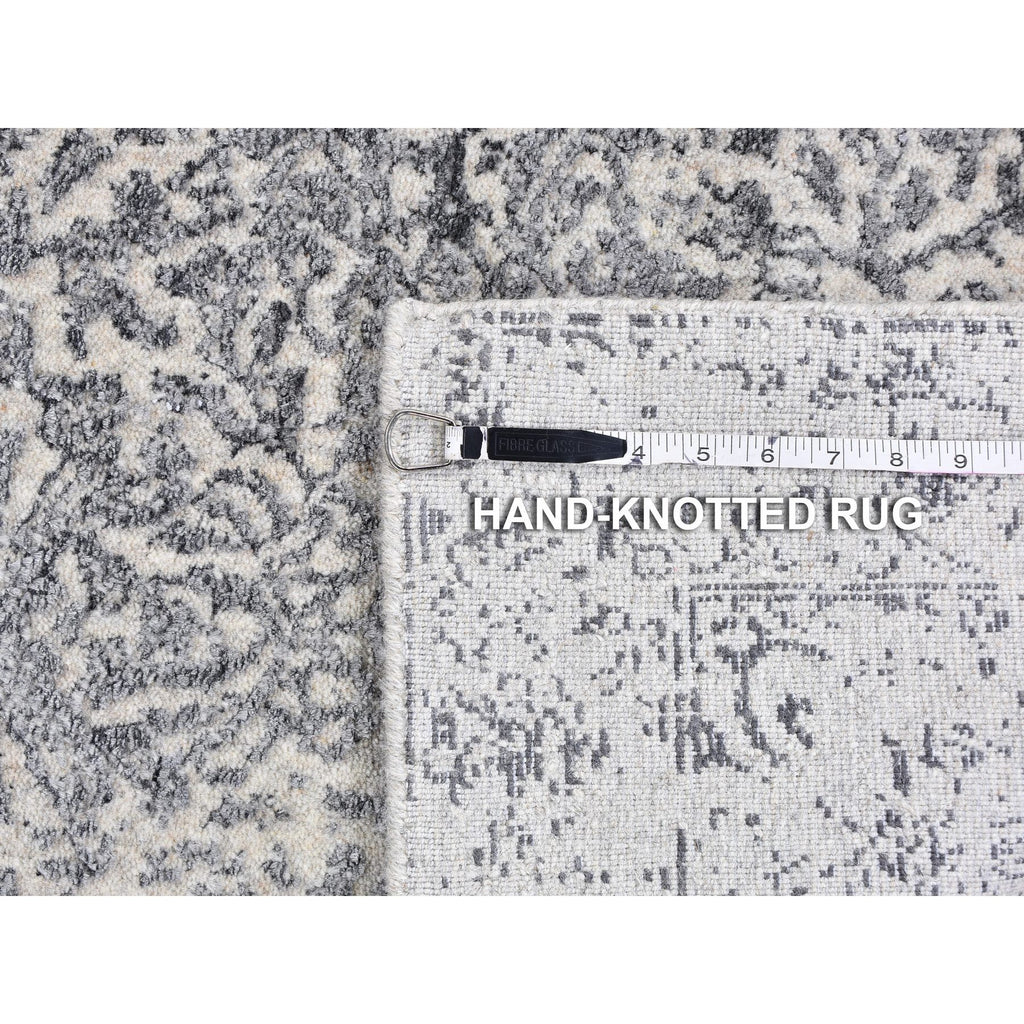 2'5"x10'1" Gray Fine Jacquard Hand Loomed Erased Design Wool And Silk Runner Oriental Rug FWR356160