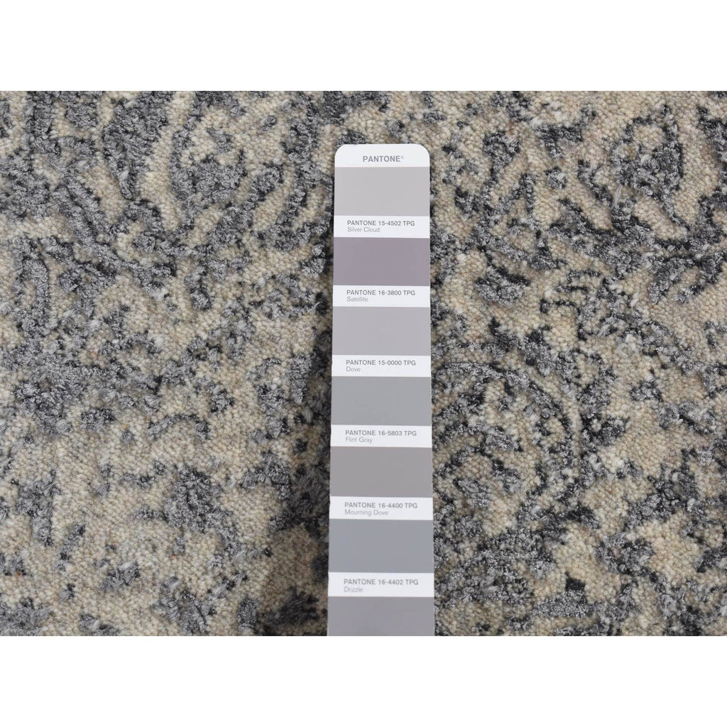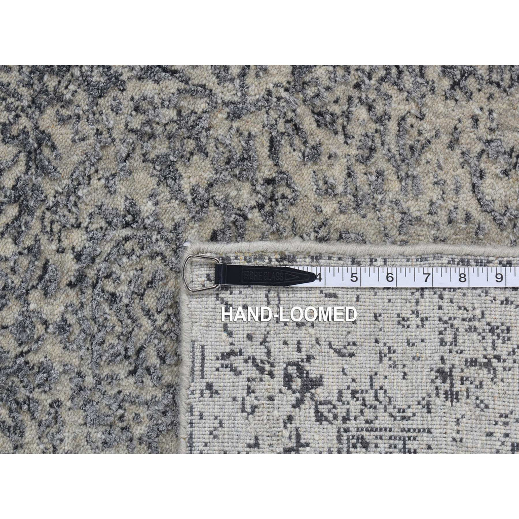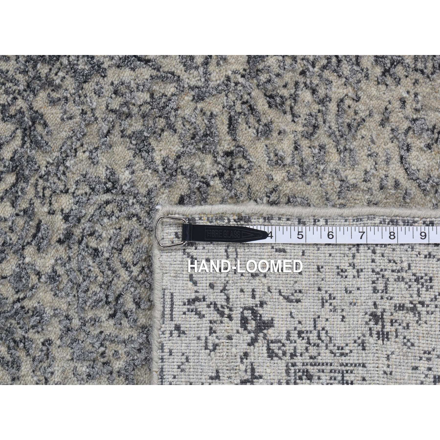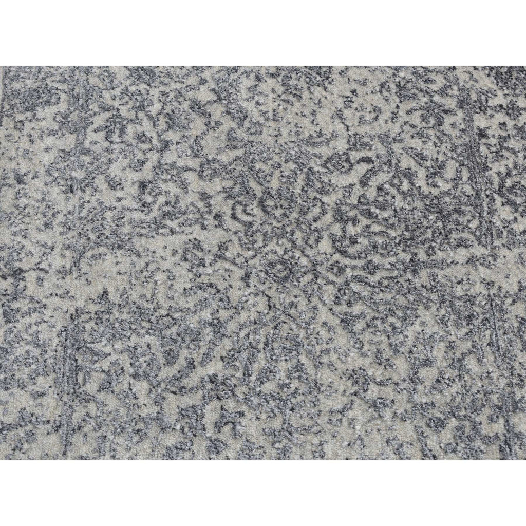 2'5"x10'1" Nickel Gray, Fine Jacquard Hand Loomed, Erased Design, Wool And Silk, Runner Oriental Rug FWR523626