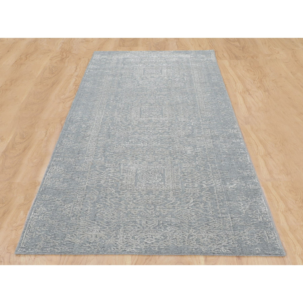 2'5"x10'2" Gray Fine Jacquard Hand Loomed Modern Wool And Art Silk Runner Oriental Rug FWR348630