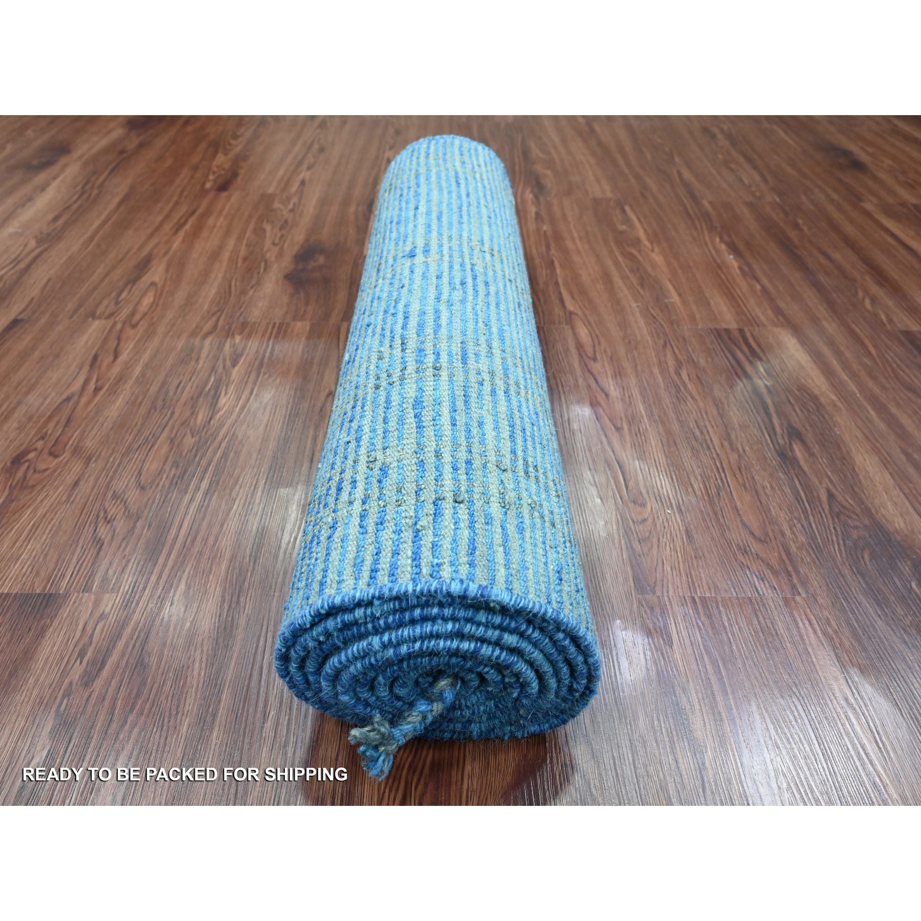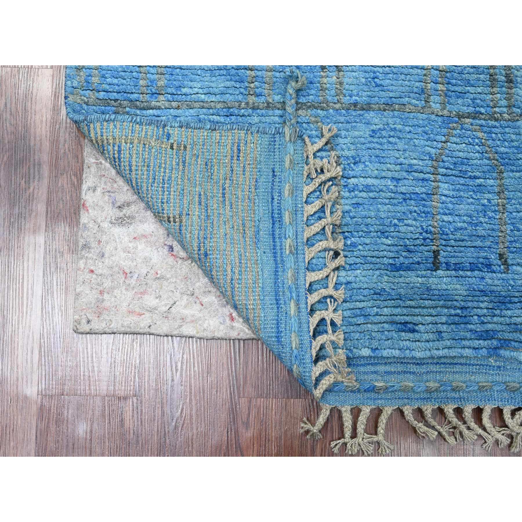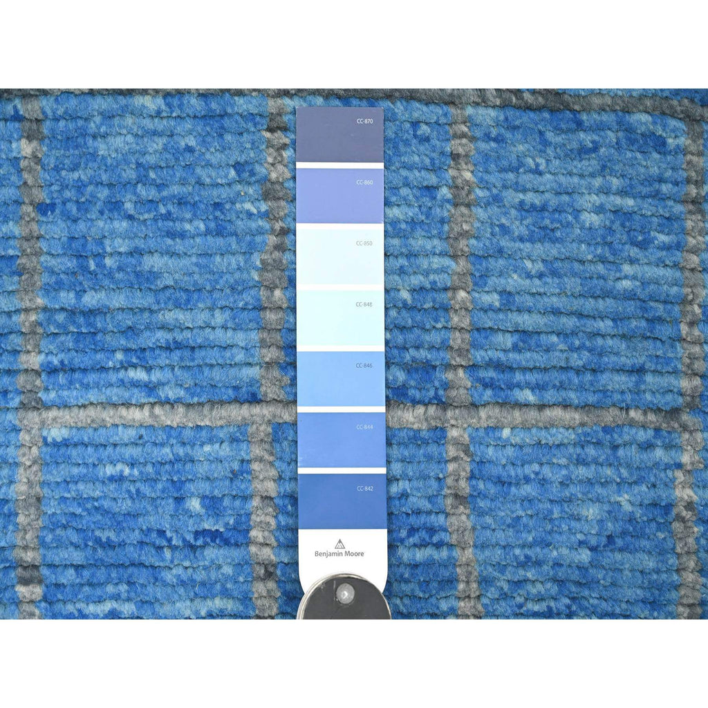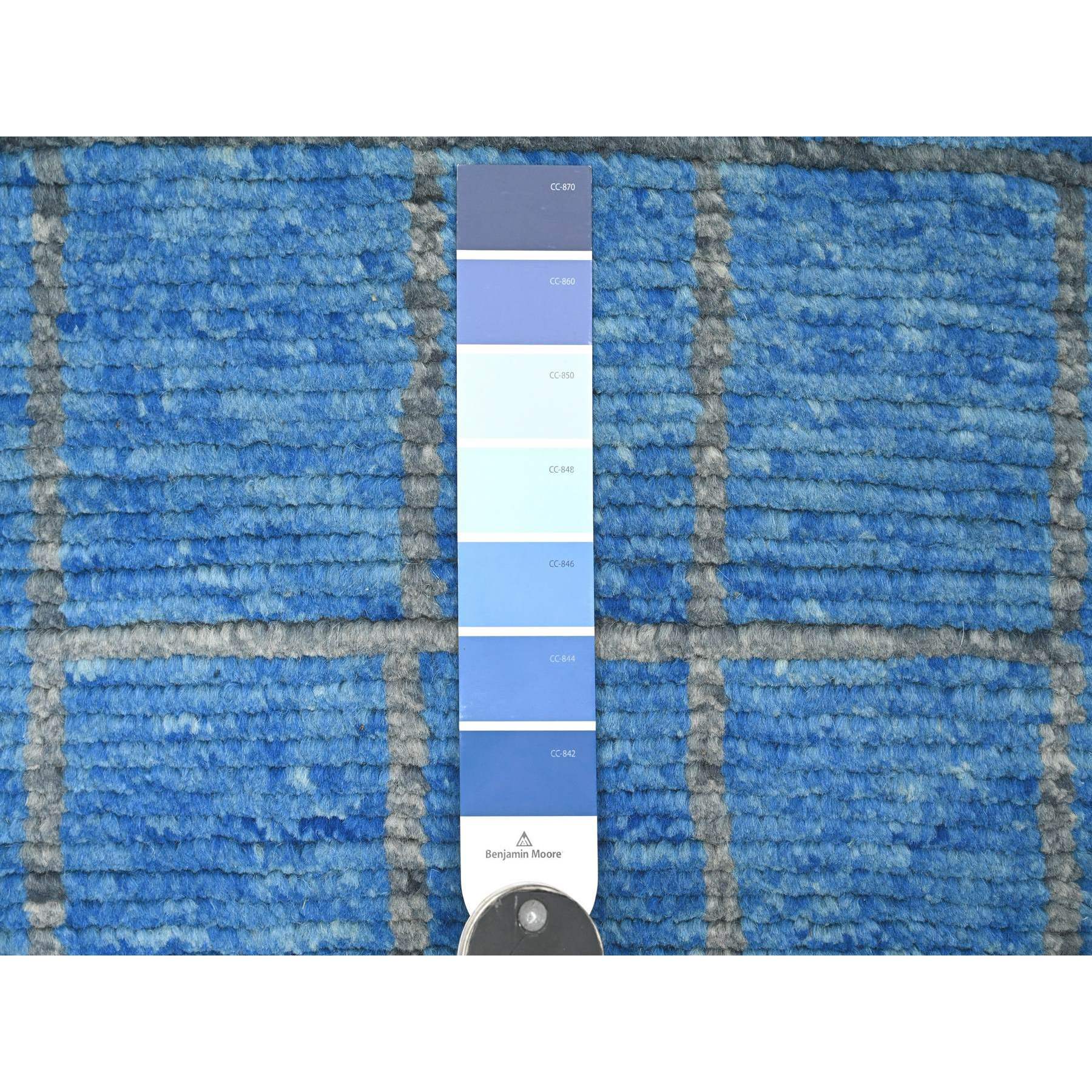 2'5"x10'3" Bayern Blue, Hand Knotted, Moroccan Weave With Geometric Pattern, Soft Wool, Tone On Tone, Textured Pile, Runner, Oriental Rug FWR123720