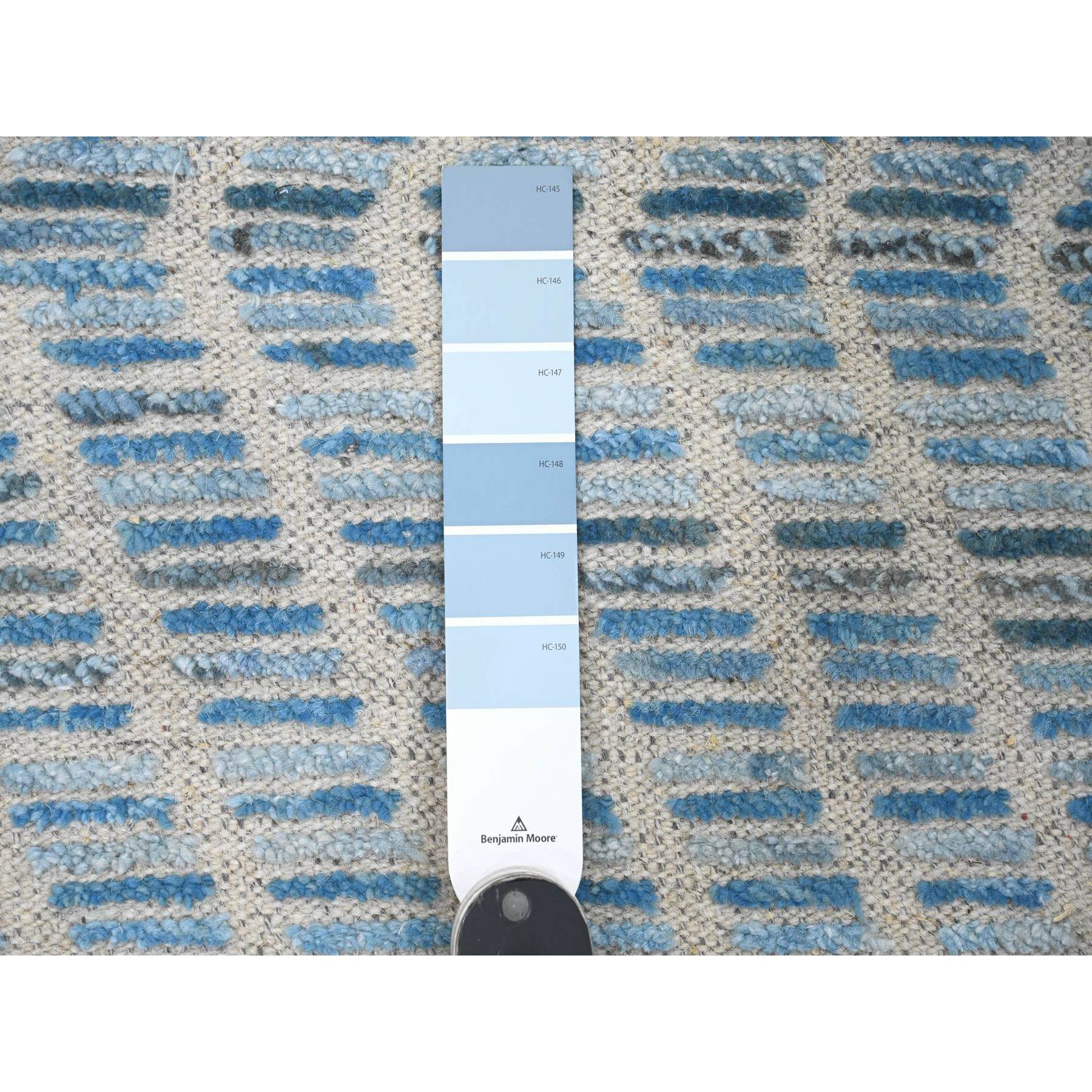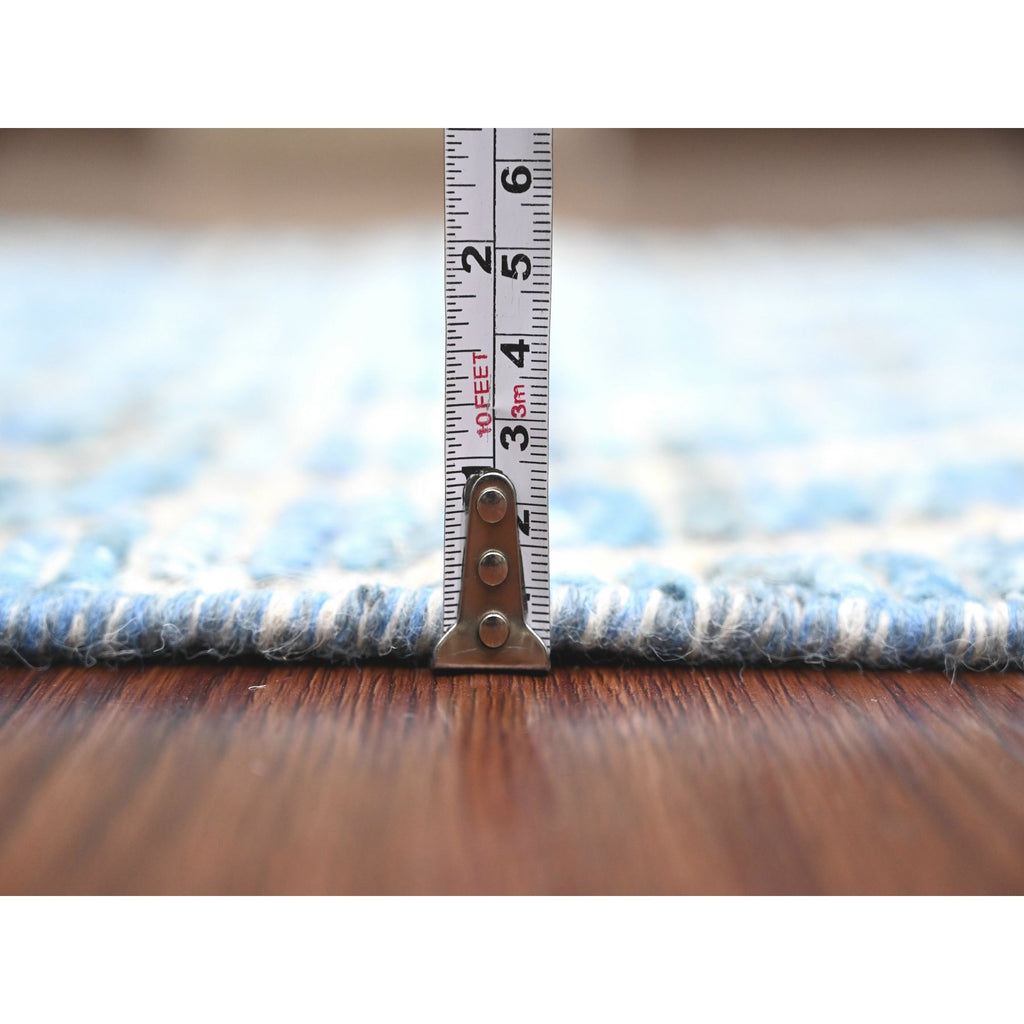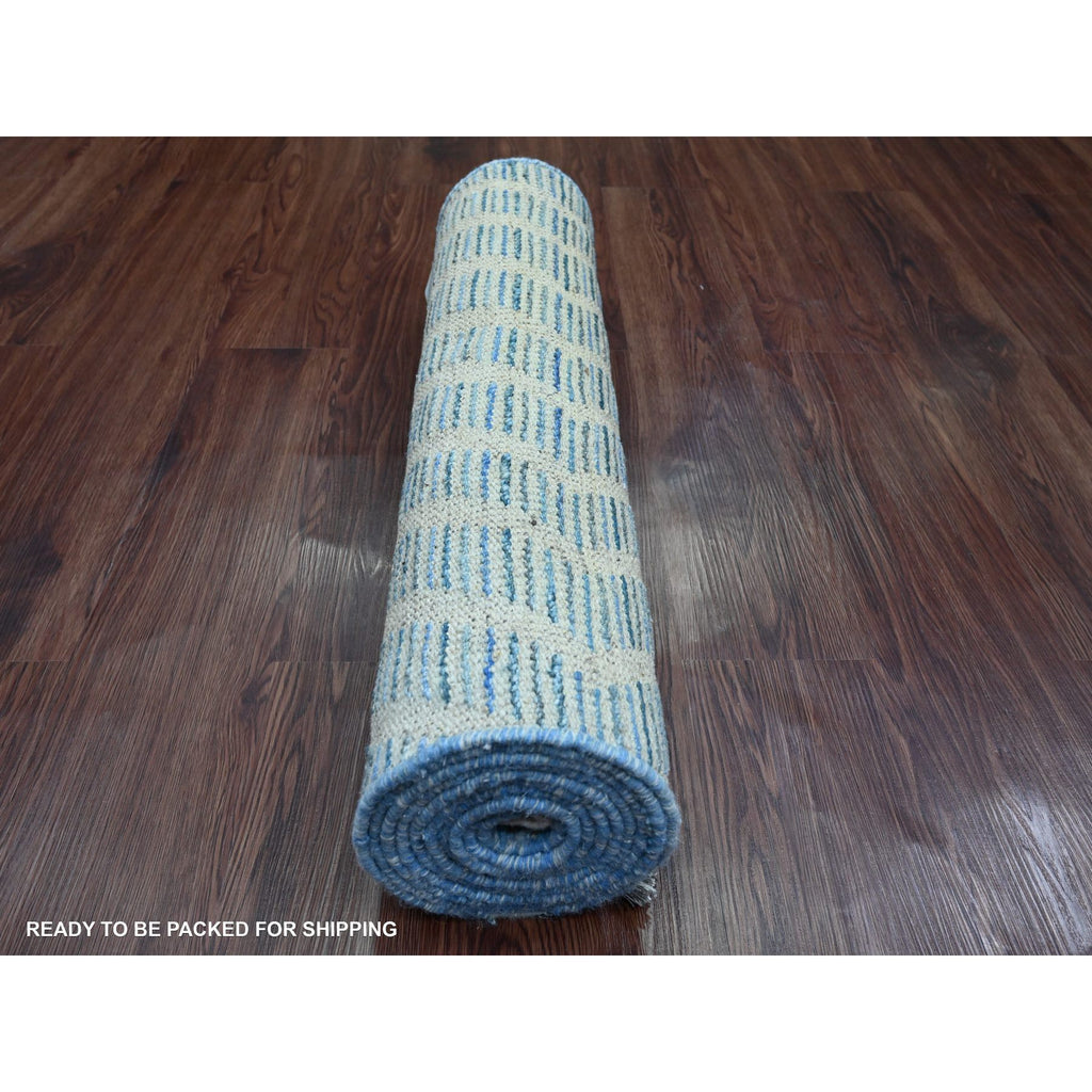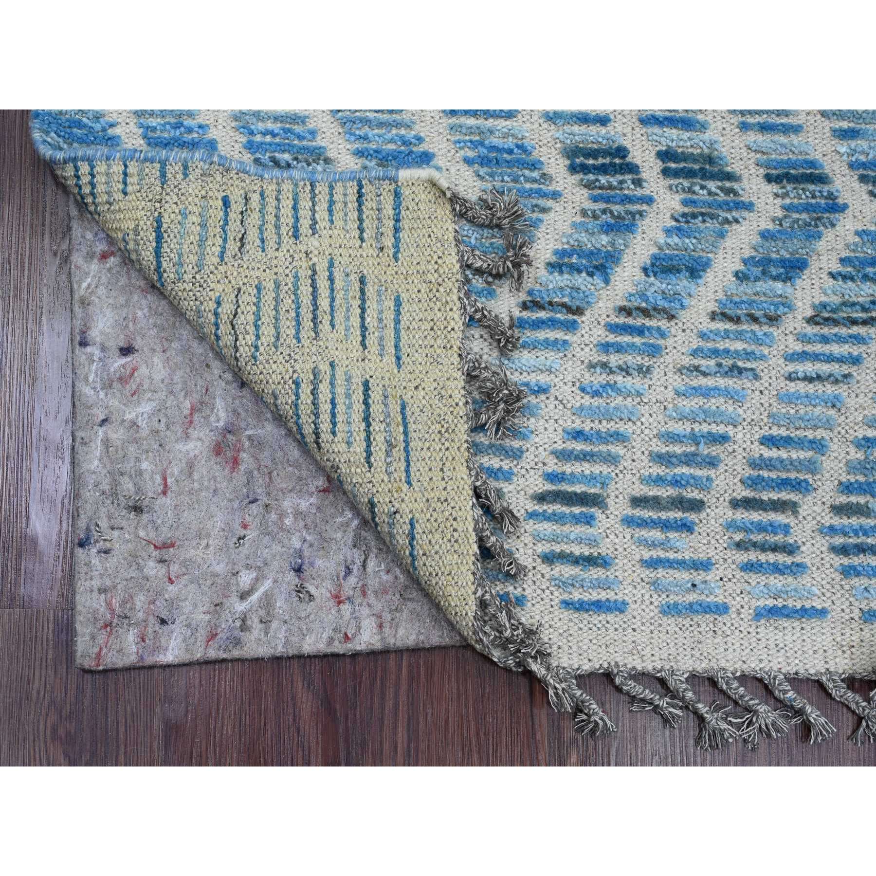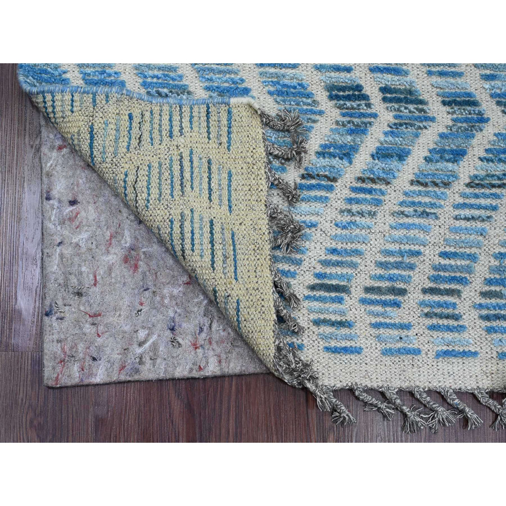 2'5"x10'6" Imperial Blue, Moroccan Weave With Geometric Zig Zag Pattern, Soft Wool, Hand Knotted, Textured Pile, Runner, Oriental Rug FWR121722