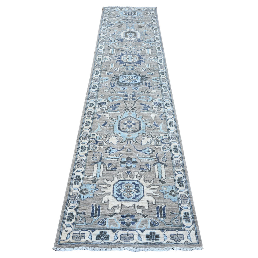 2'5"x10'8" Repose Gray, Denser Weave, Karajeh Design North West Persian, Peshawar Fine Aryana Collection, Hand Knotted All Wool, Natural Dyes, Runner Oriental Rug FWR533394