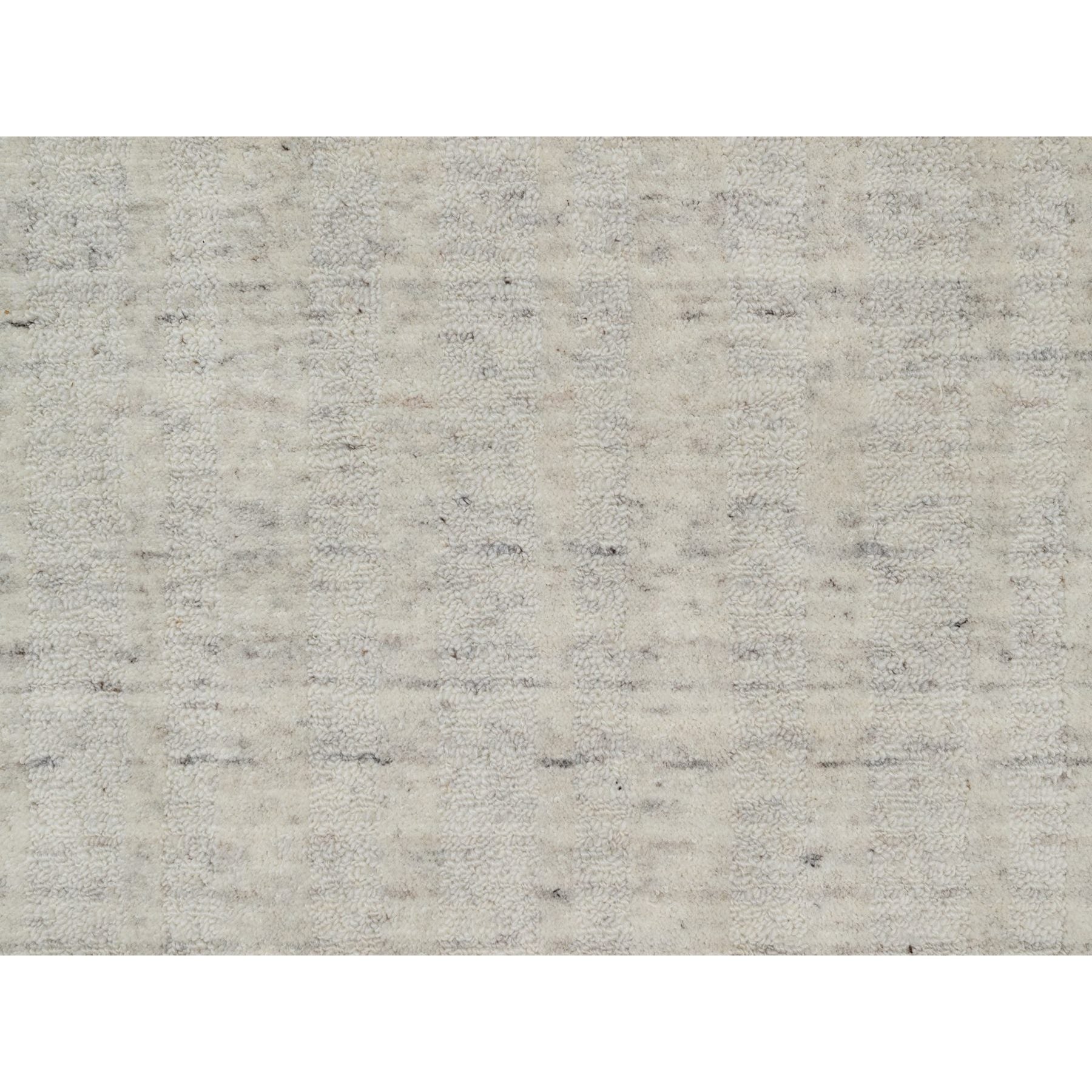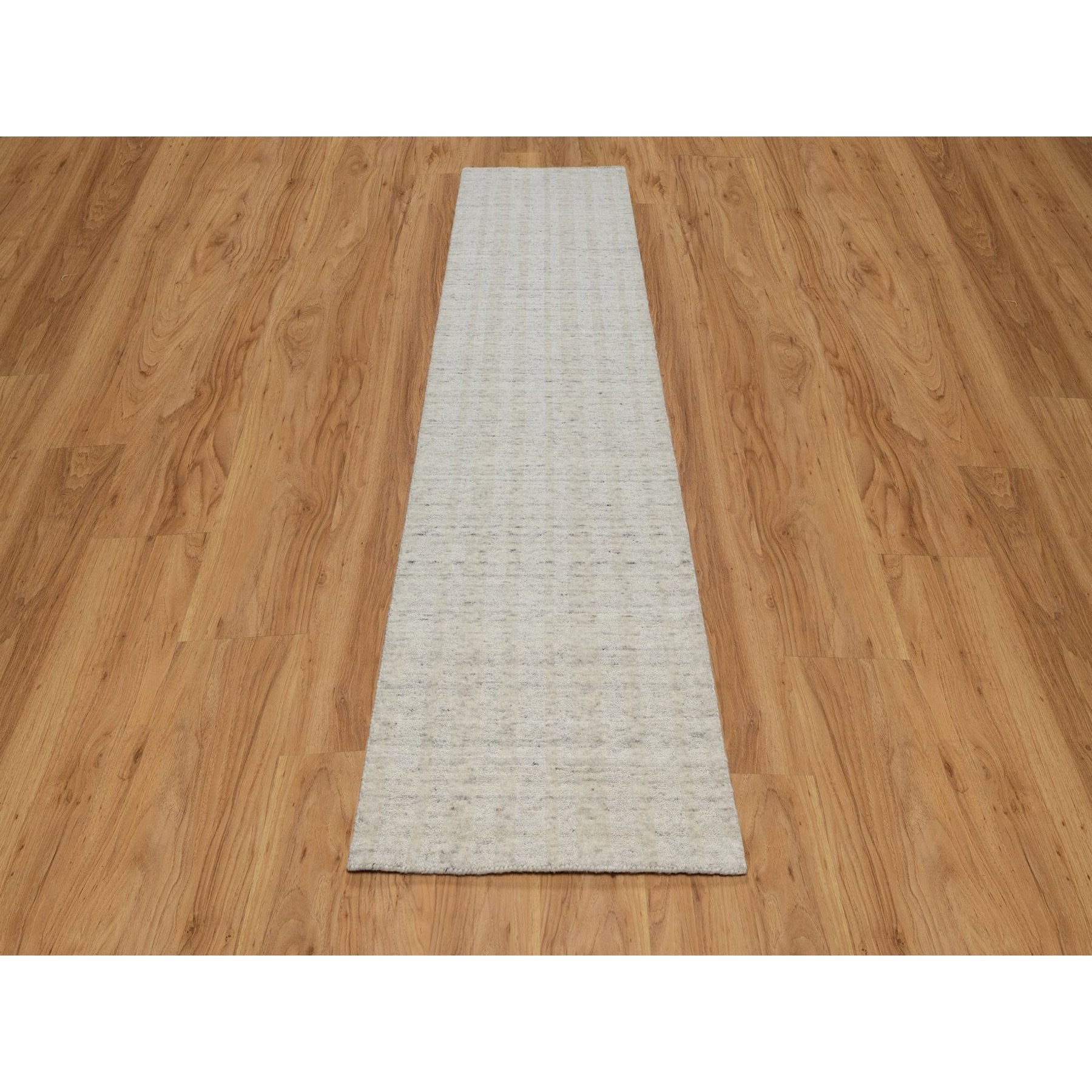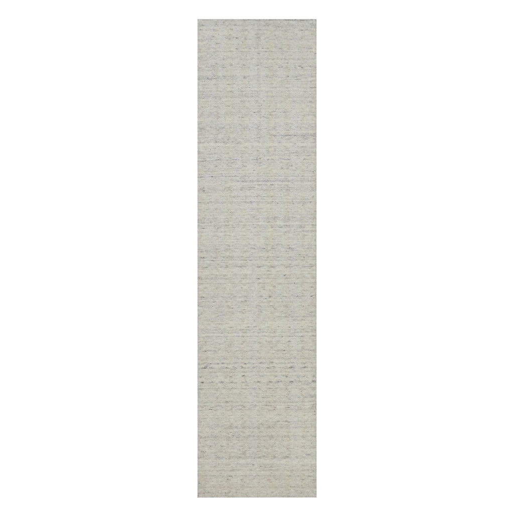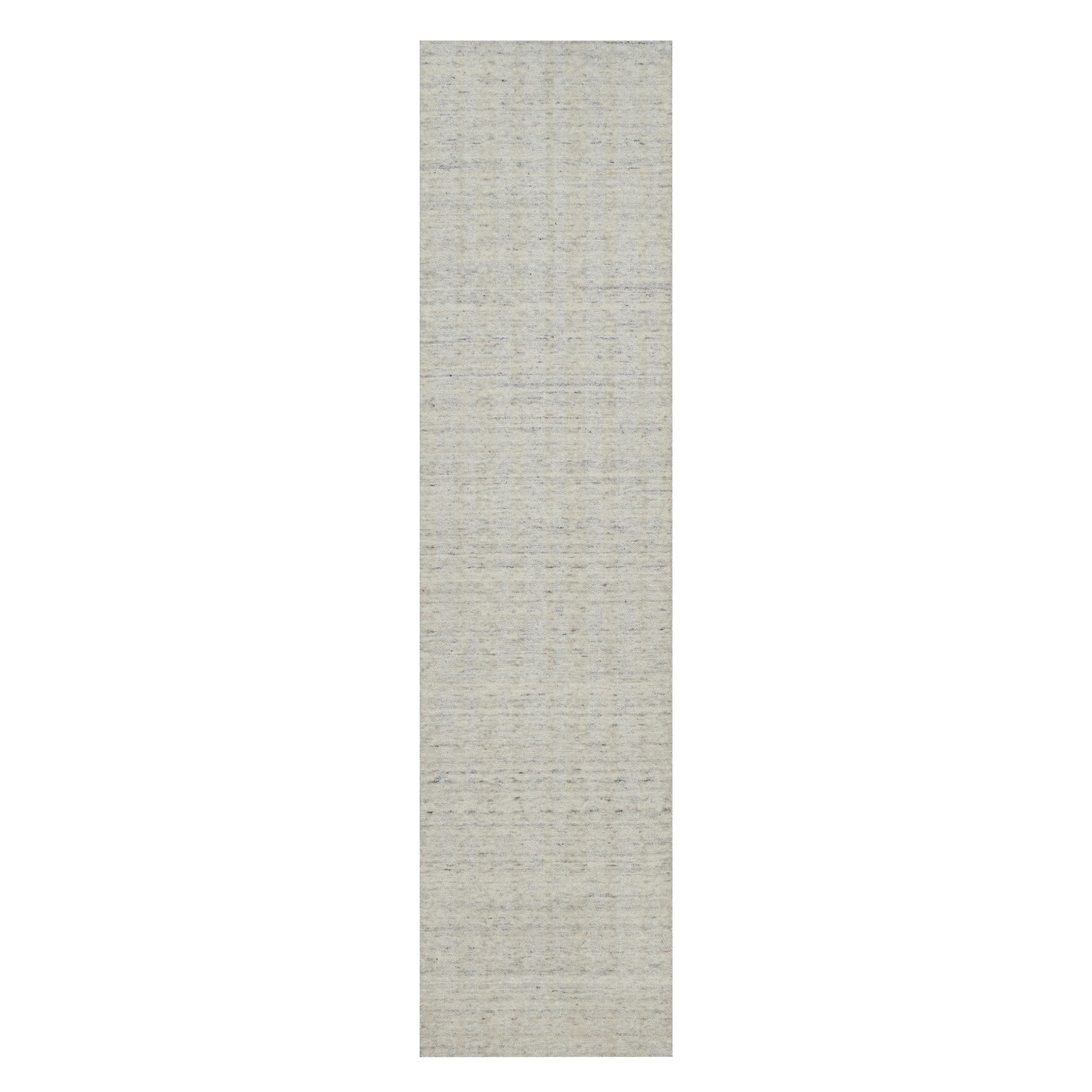 2'5"x10' Chiffon White, Hand Loomed, Salt And Pepper Effect With Vertical Stripes Design, Undyed Natural Wool, Runner, Oriental Rug FWR550020