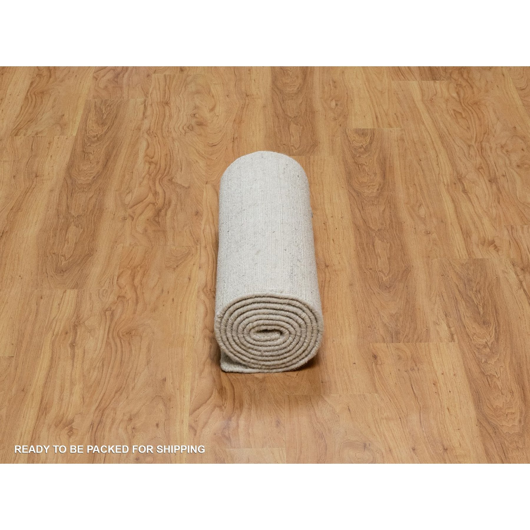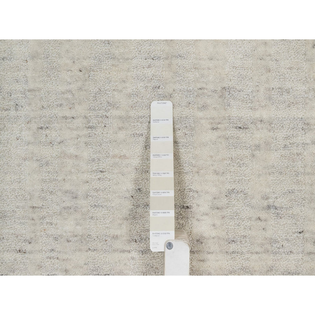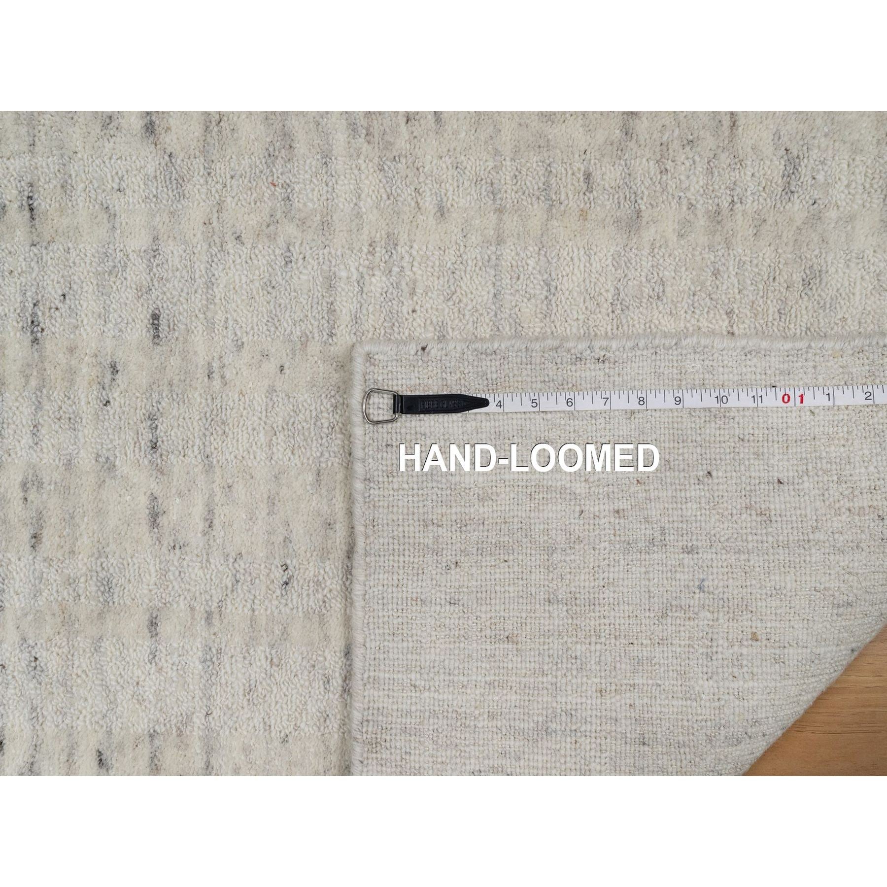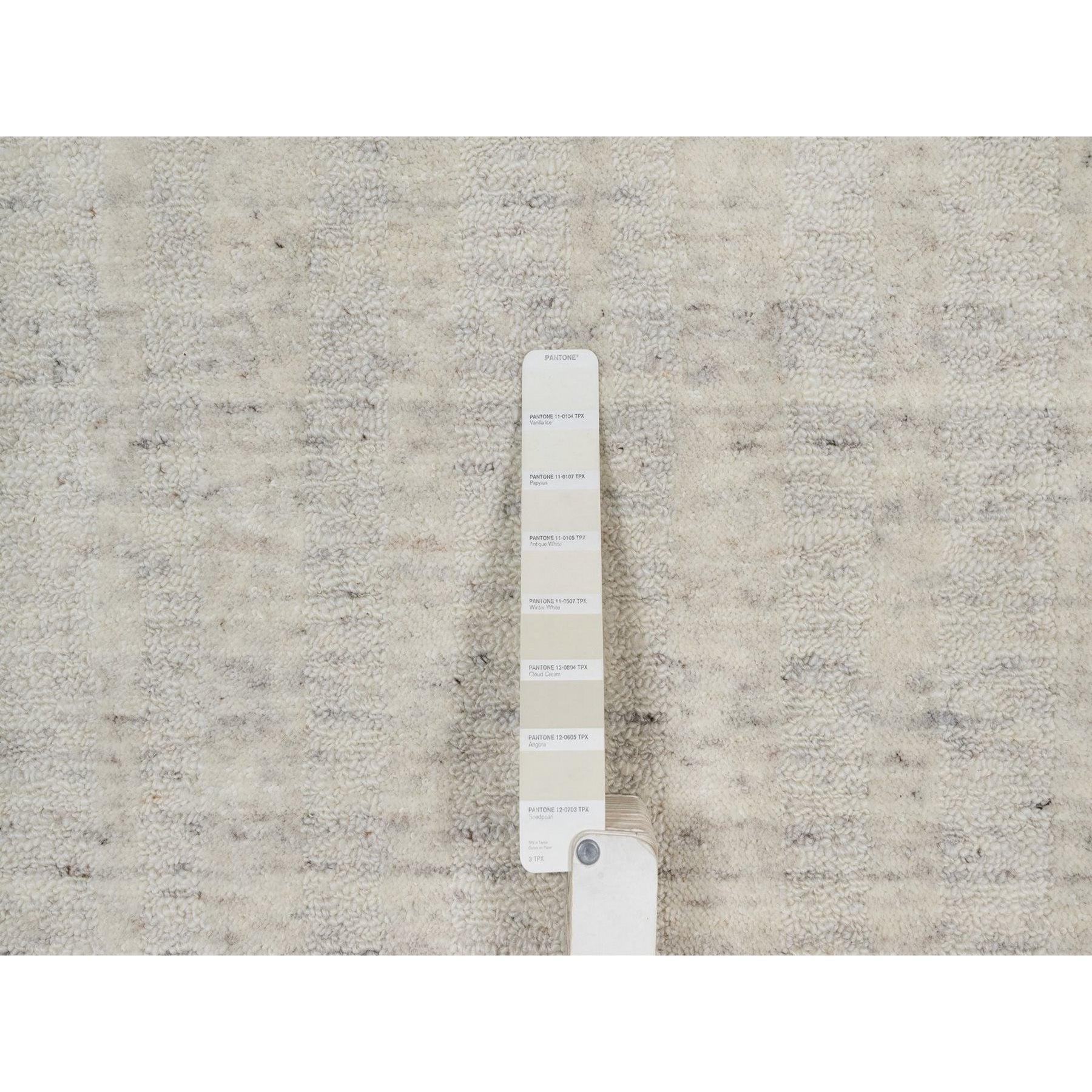 2'5"x10' Chiffon White, Hand Loomed, Salt And Pepper Effect With Vertical Stripes Design, Undyed Natural Wool, Runner, Oriental Rug FWR550020