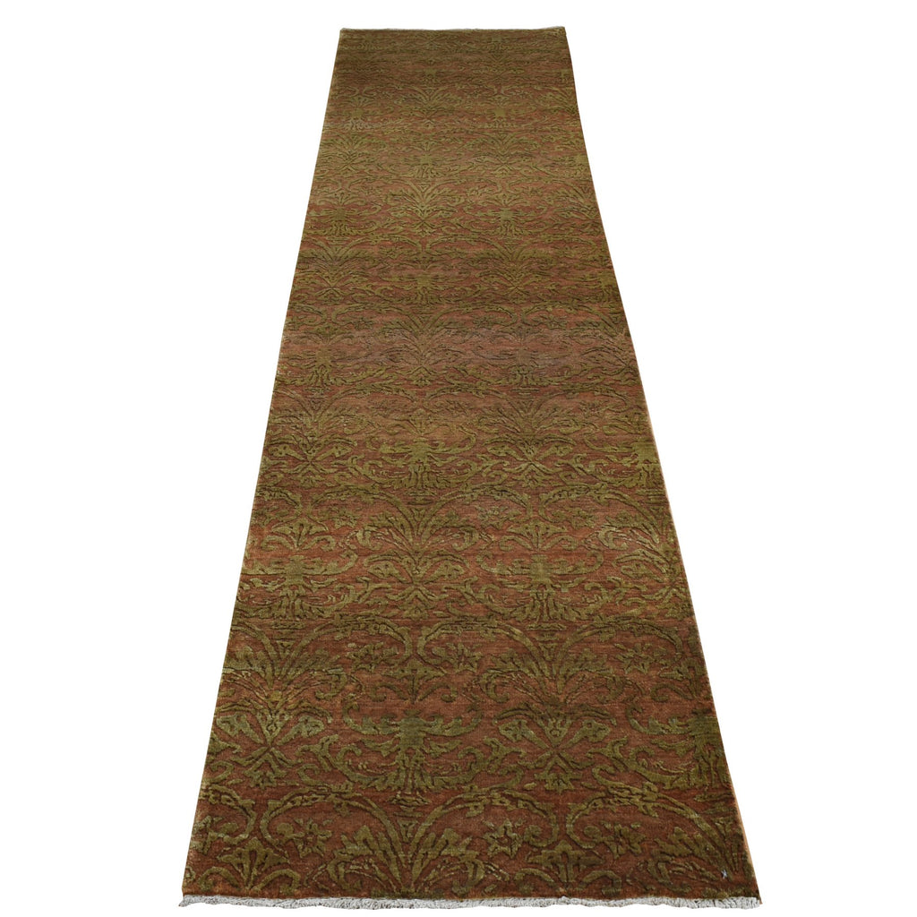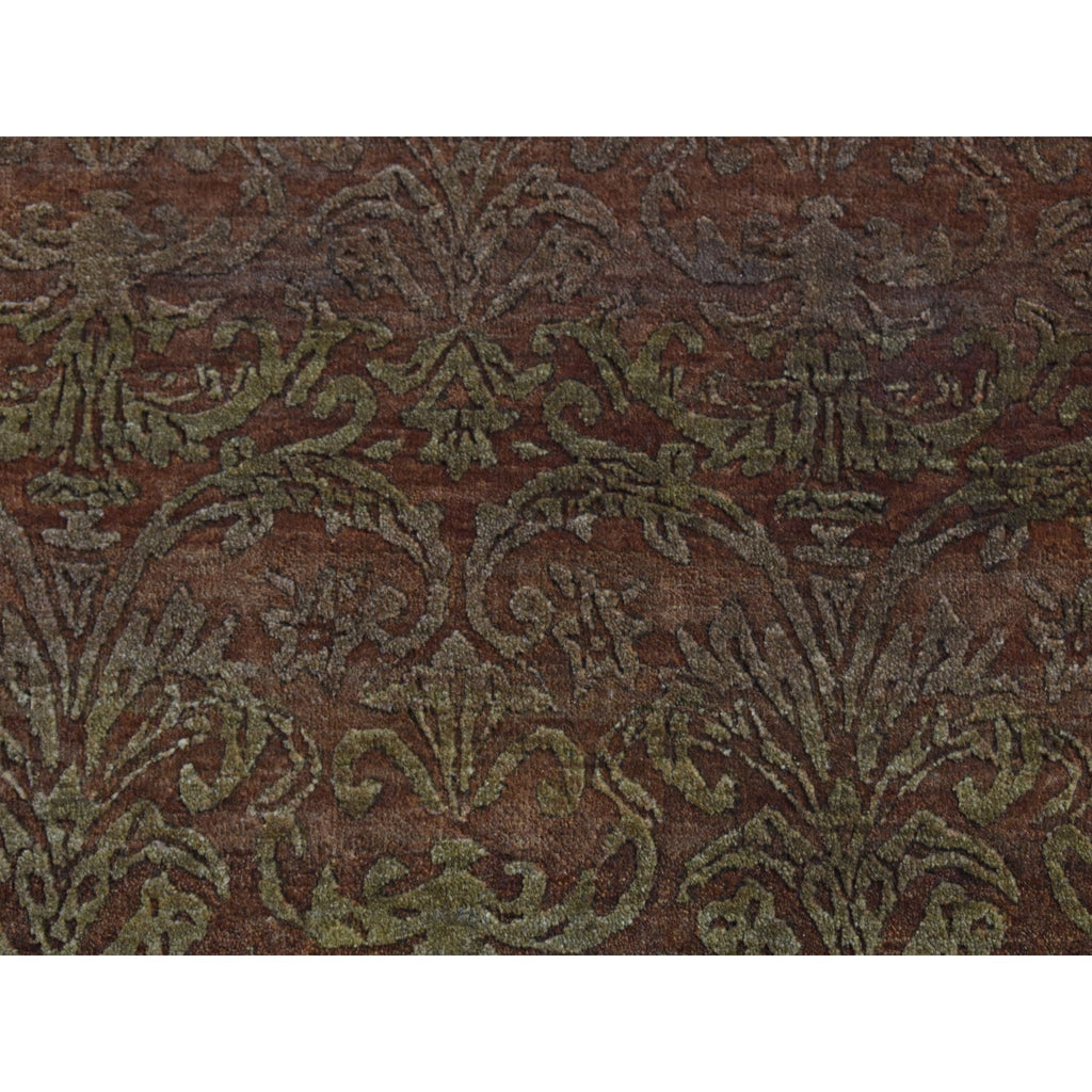 2'5"x11'4" Bitter Chocolate Brown, Abarasque Design, Nepali Tone On Tone, Wool And Silk, Hand Knotted, Runner Oriental Rug FWR523806