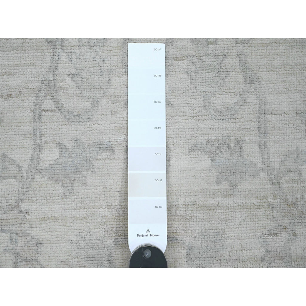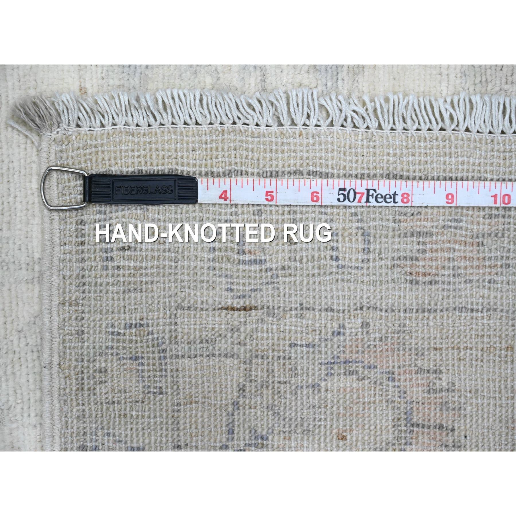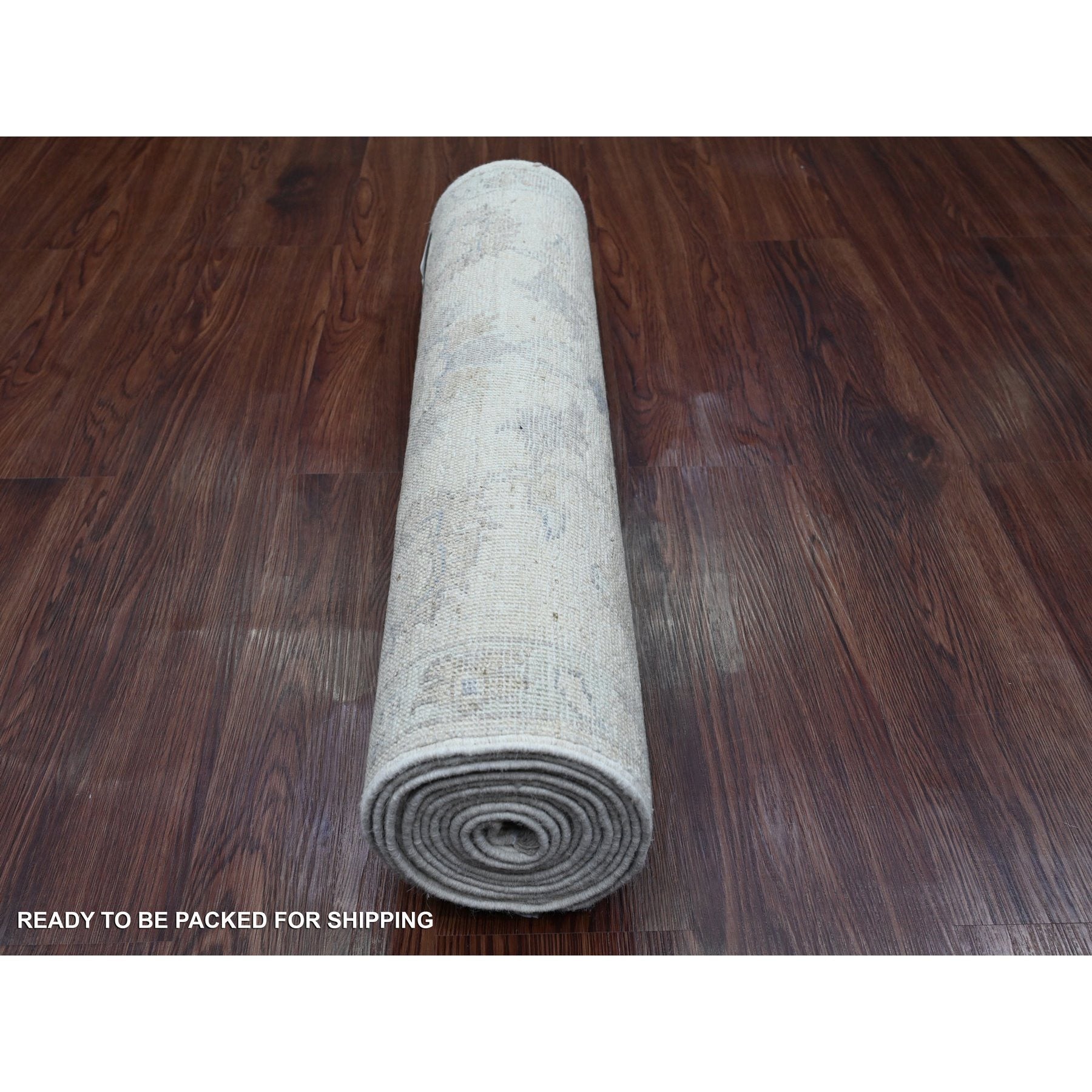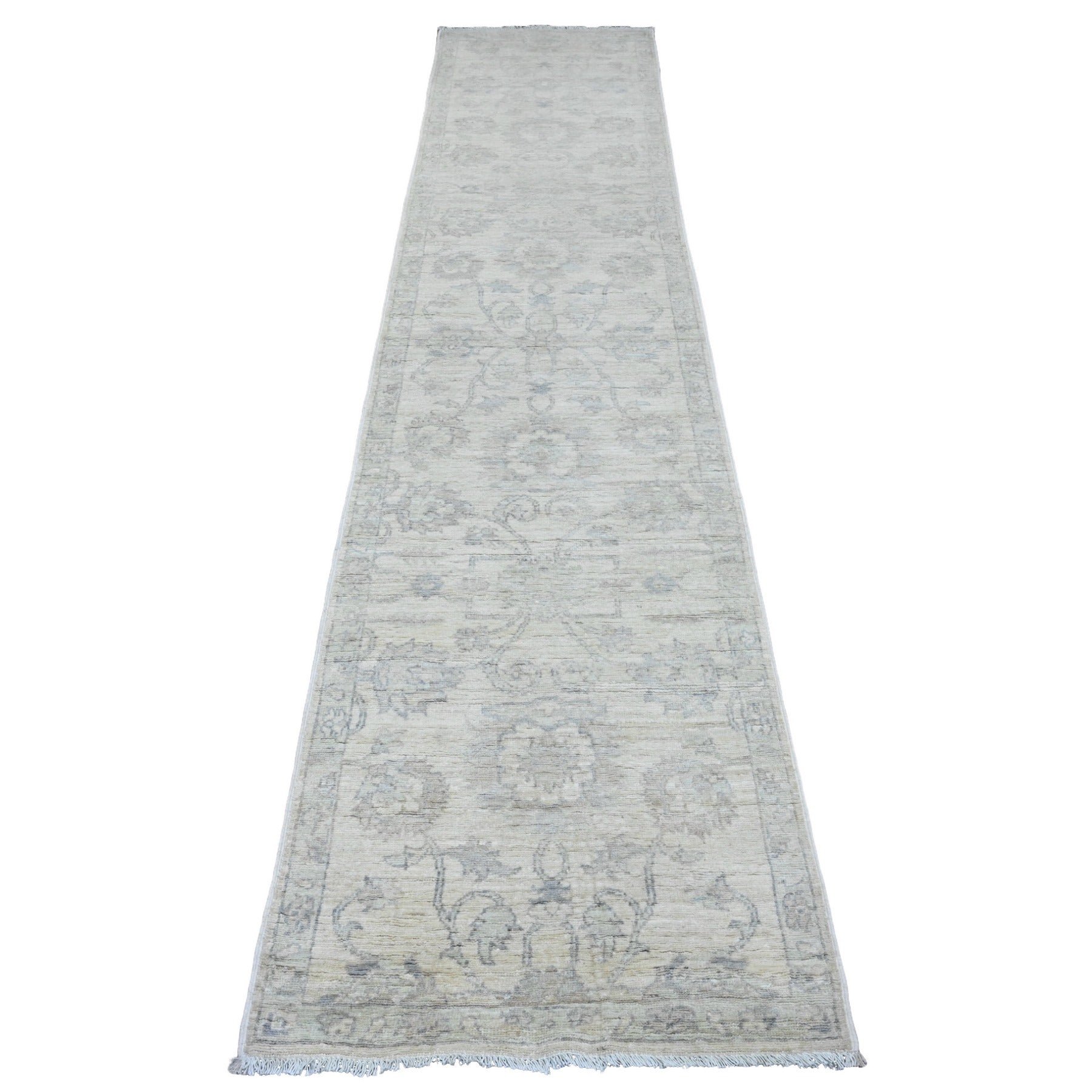 2'5"x11'7" Pearl White, Washed Out Peshawar With All Over Leaf Design, Hand Knotted, 100% Wool, Vegetable Dyes, Runner, Oriental Rug FWR123012