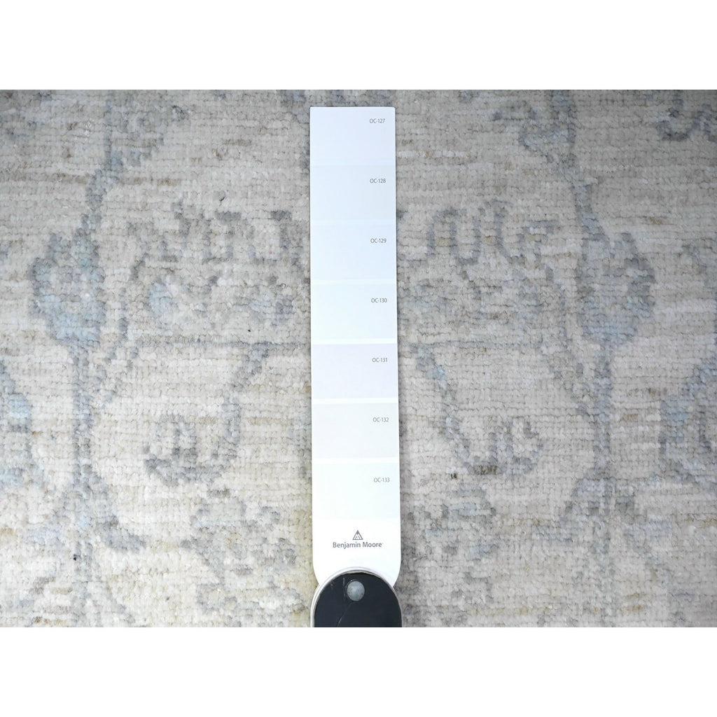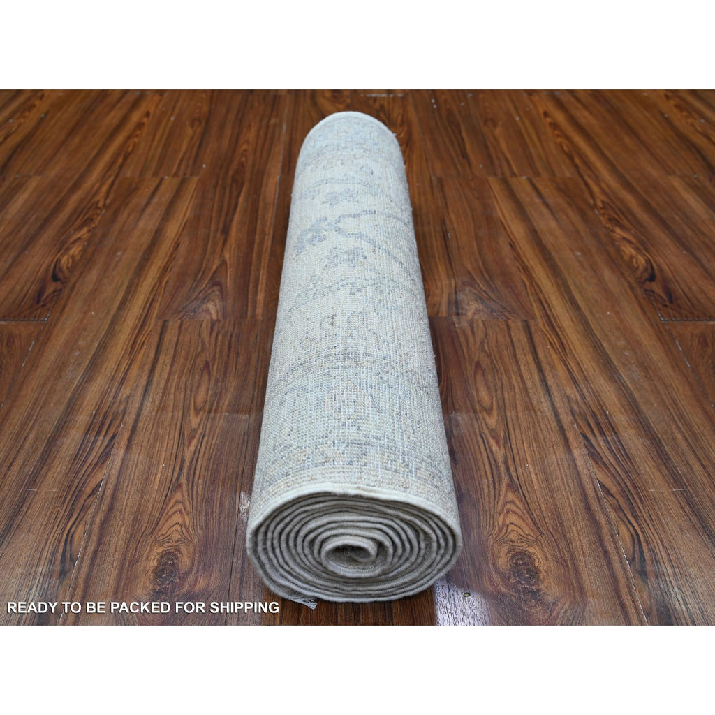 2'5"x11'8" Daisy White, Luxurious Wool, White Wash Peshawar, Hand Knotted, Runner, Oriental Rug FWR531804