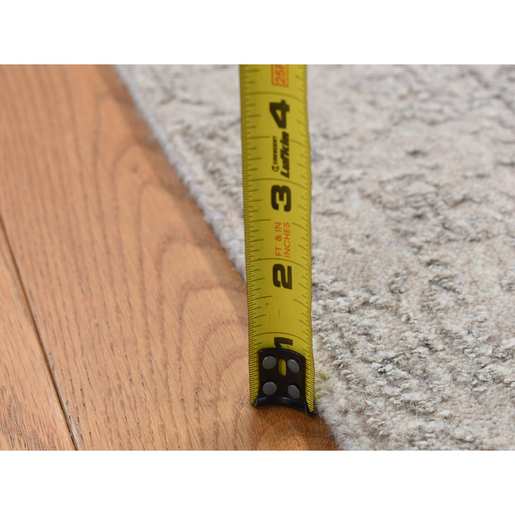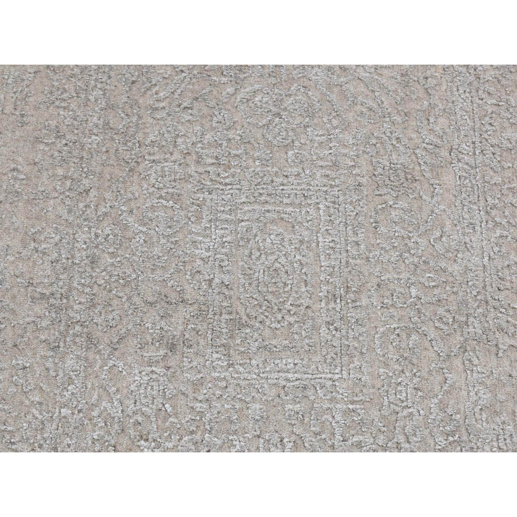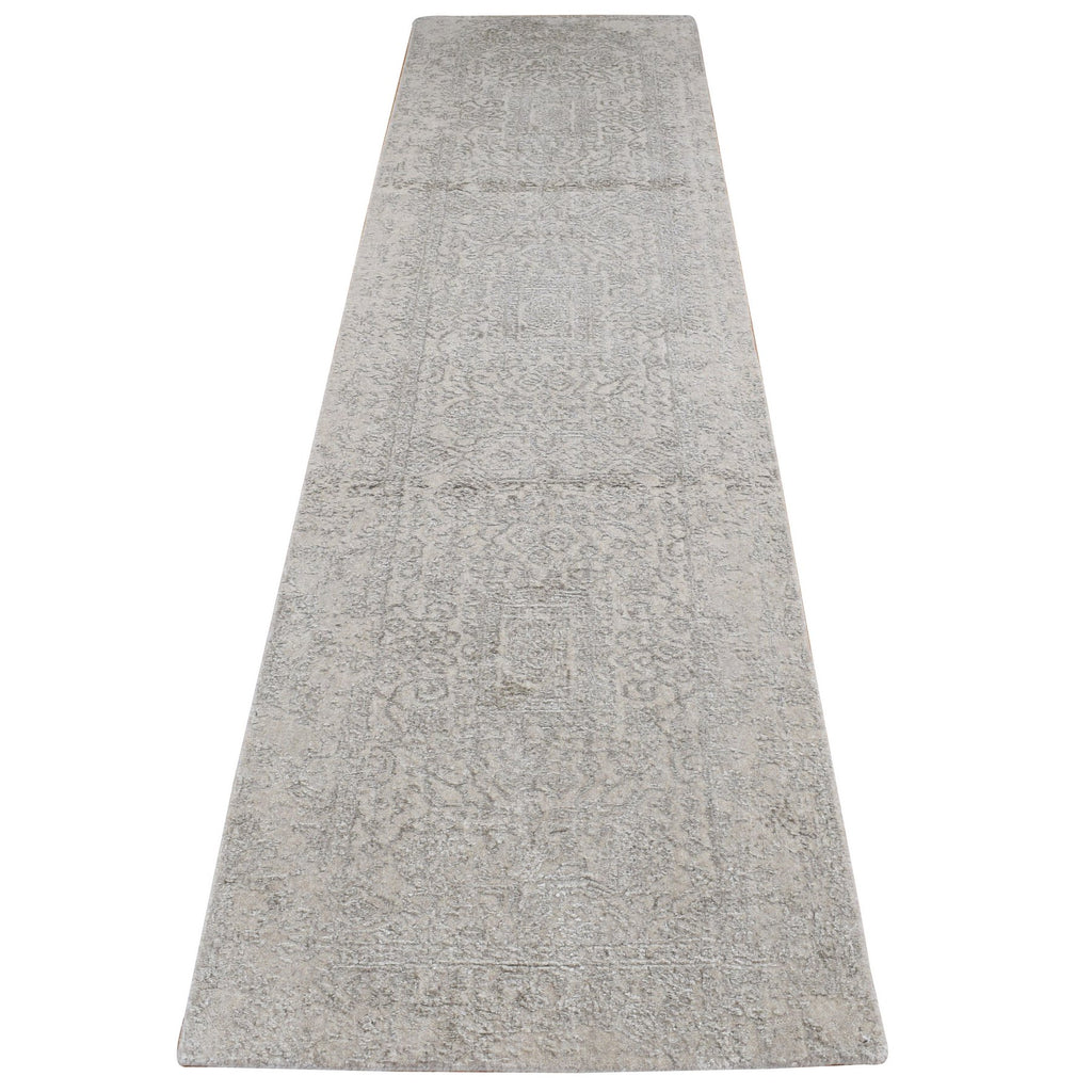 2'5"x12' Smoke Gray, Fine Jacquard With Erased Design, Hand Loomed, Tone On Tone Light Colours, Wool And Plant Based Silk, Oriental Runner Rug FWR523836