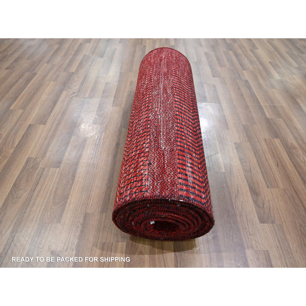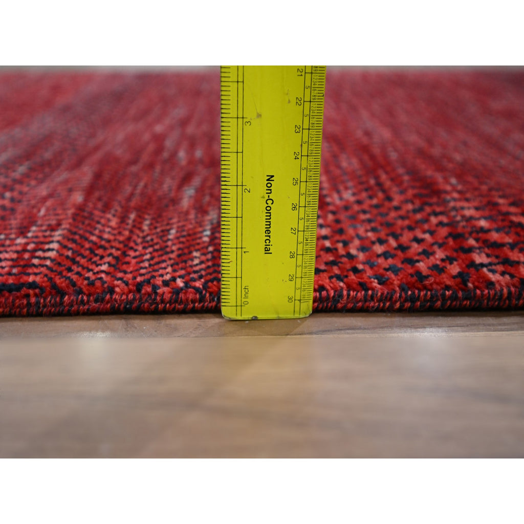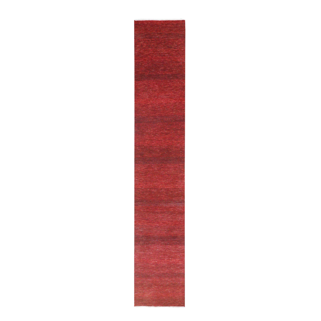 2'5"x14' Chili Red, Modern Grass Design, Hand Knotted, Denser Weave, Tone On Tone, Wool And Silk, Lush And Plush, Runner, Oriental Rug FWR457908