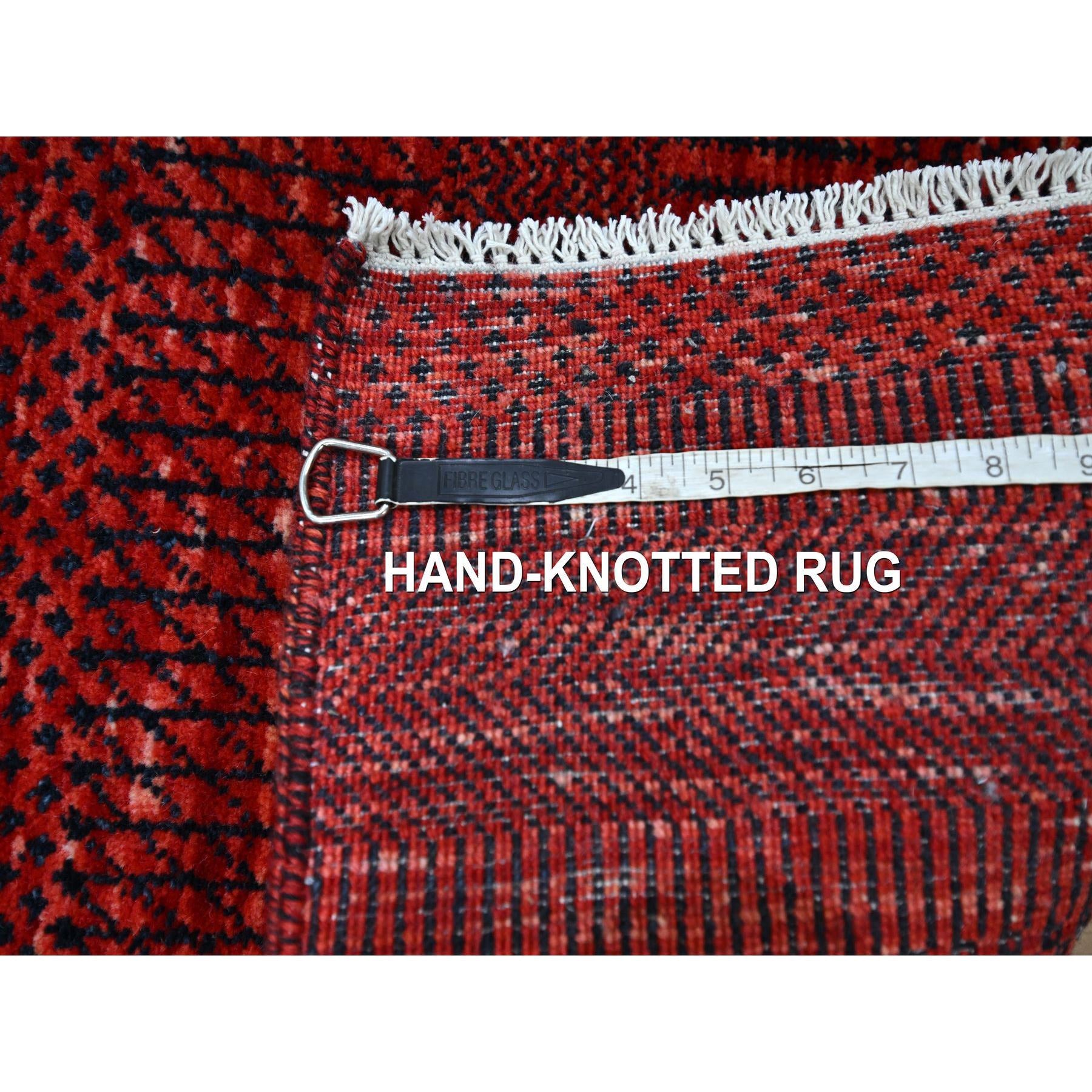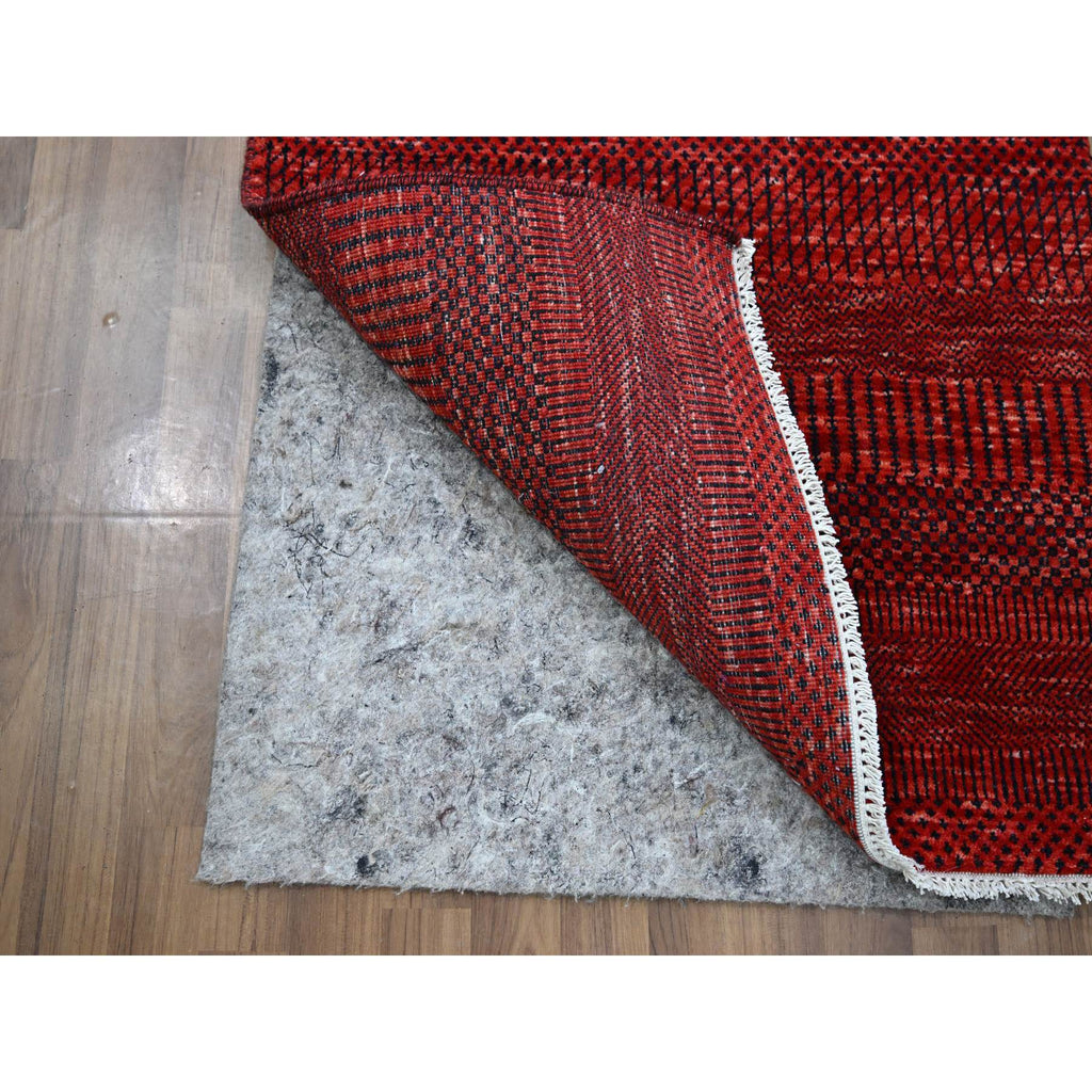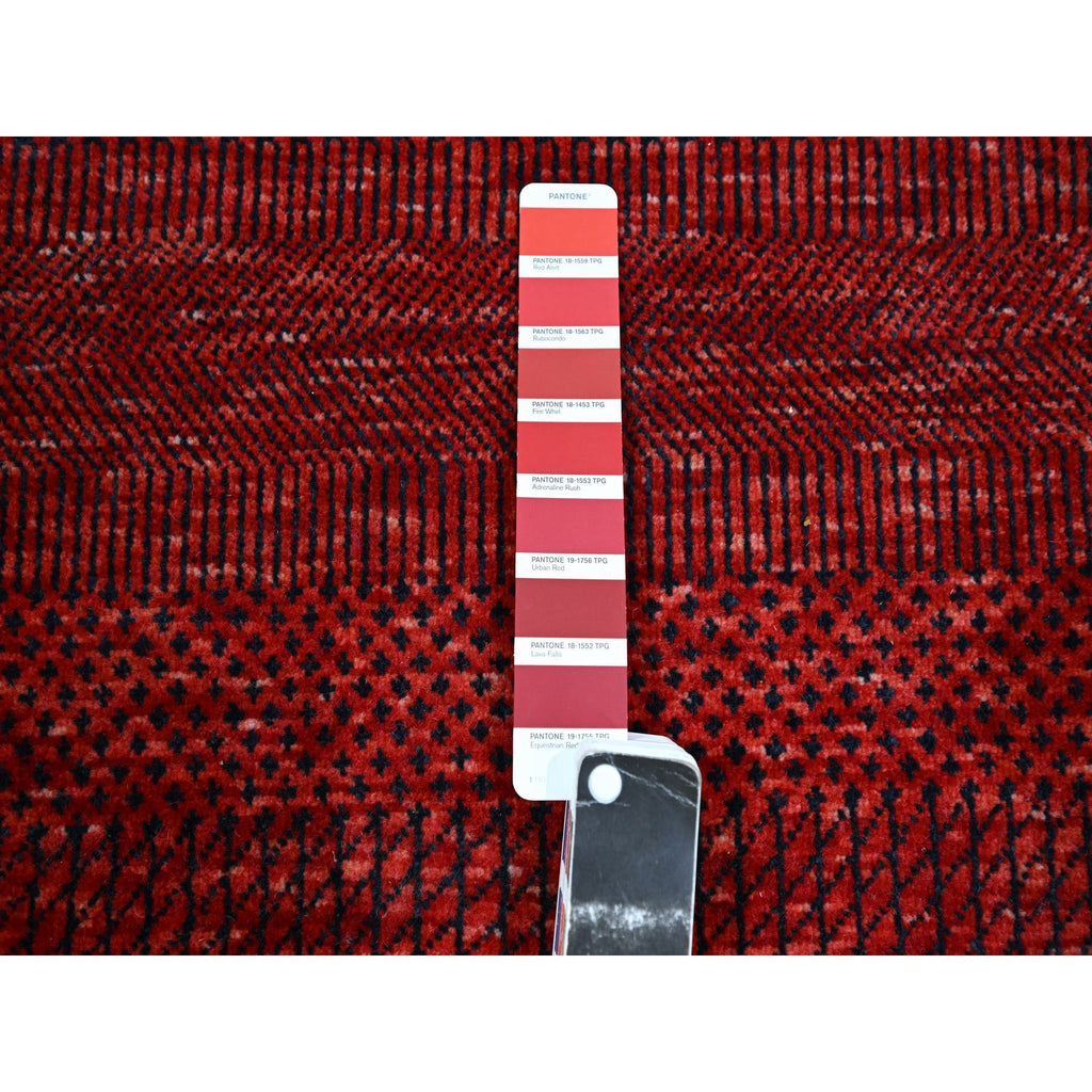 2'5"x14' Chili Red, Modern Grass Design, Hand Knotted, Denser Weave, Tone On Tone, Wool And Silk, Lush And Plush, Runner, Oriental Rug FWR457908