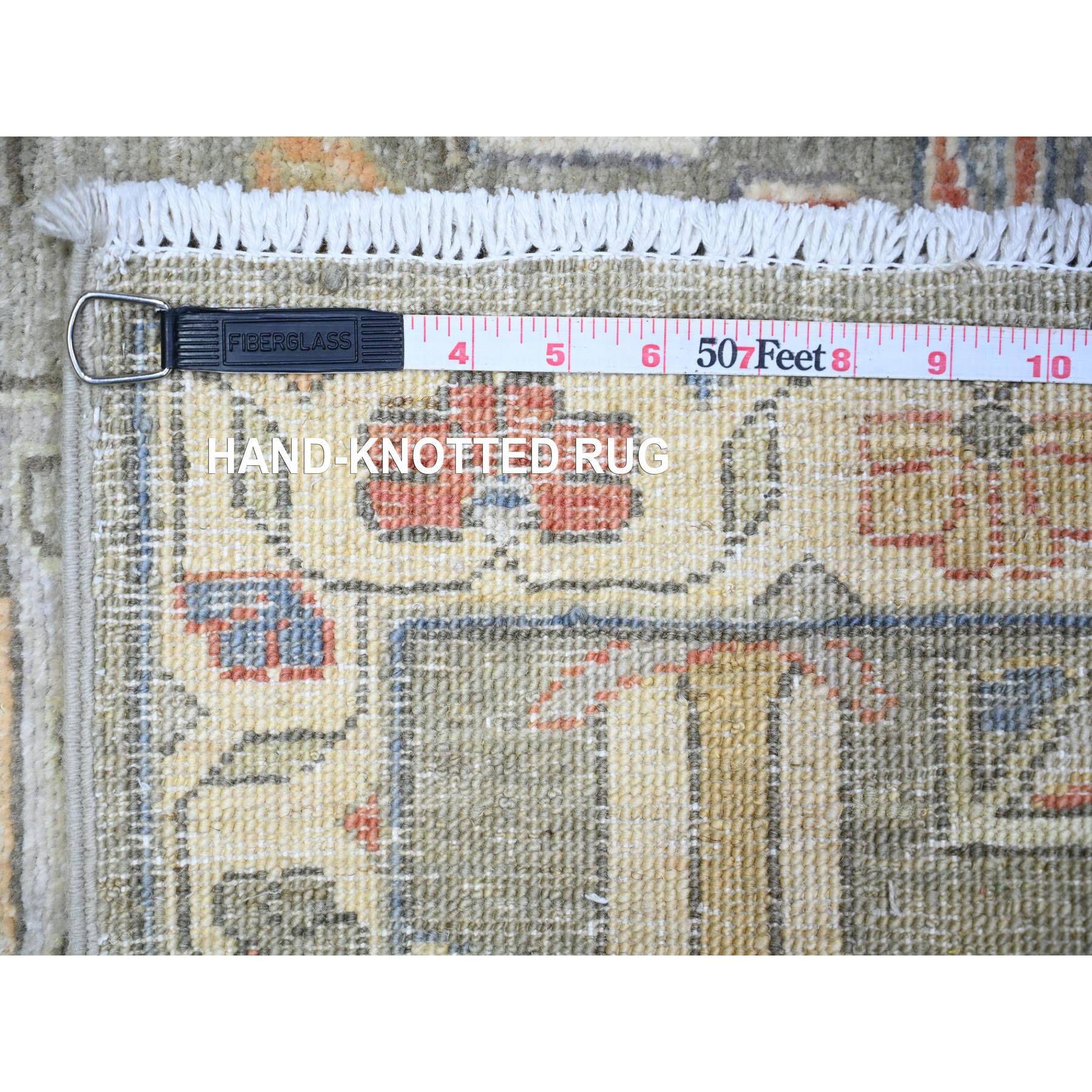 2'5"x16' Camouflage Green, Natural Wool Hand Knotted, Finer Peshawar With Karajeh Design, Densely Woven, Xl Runner Oriental Rug FWR449334