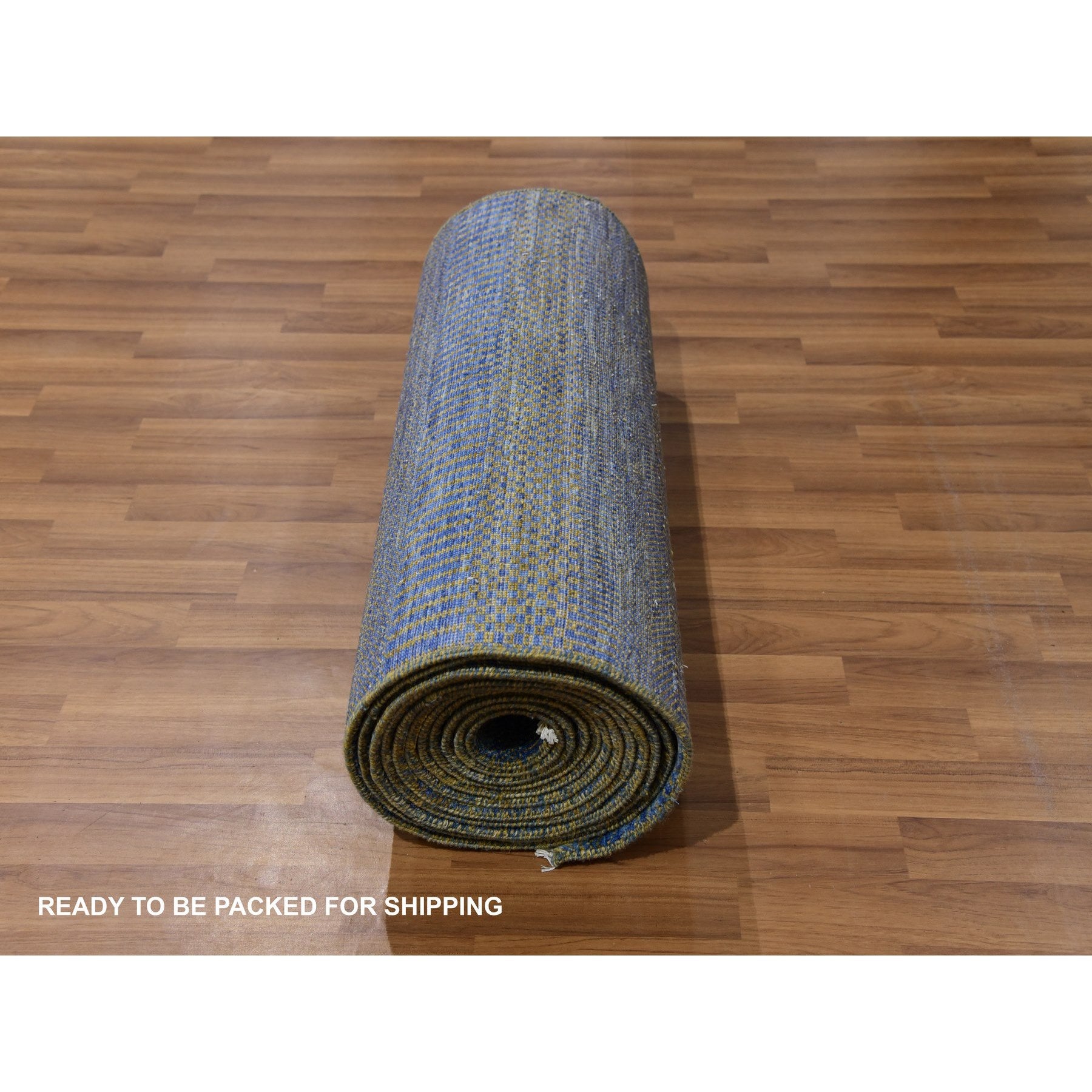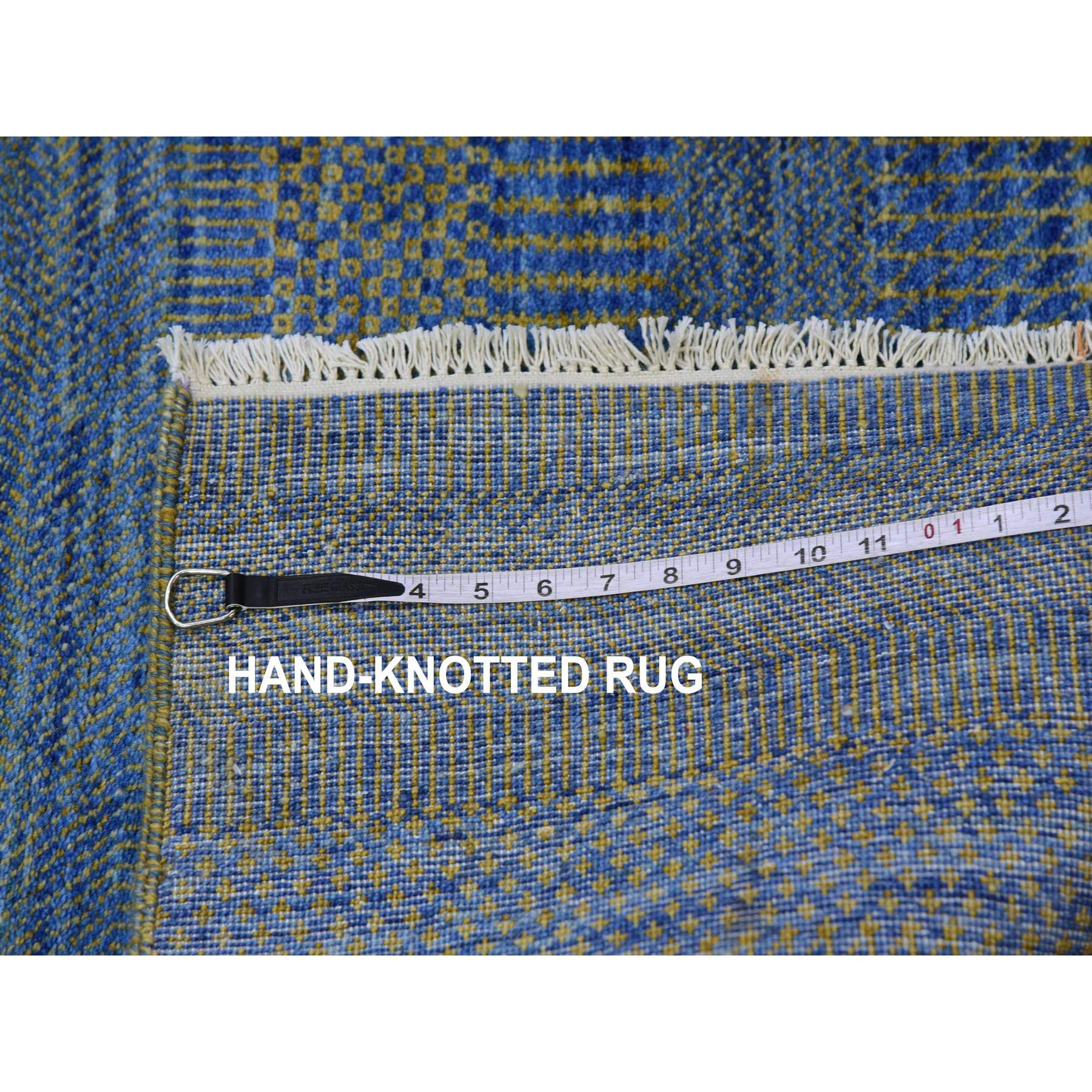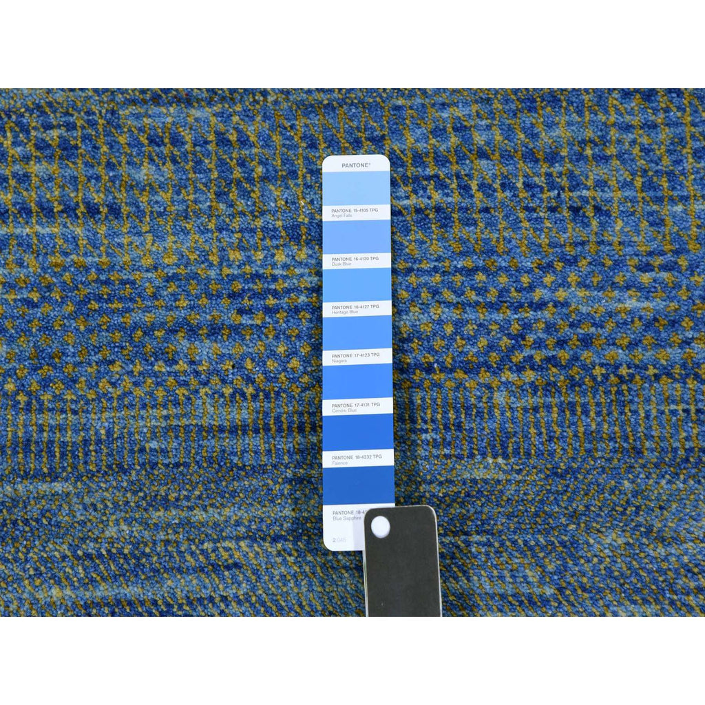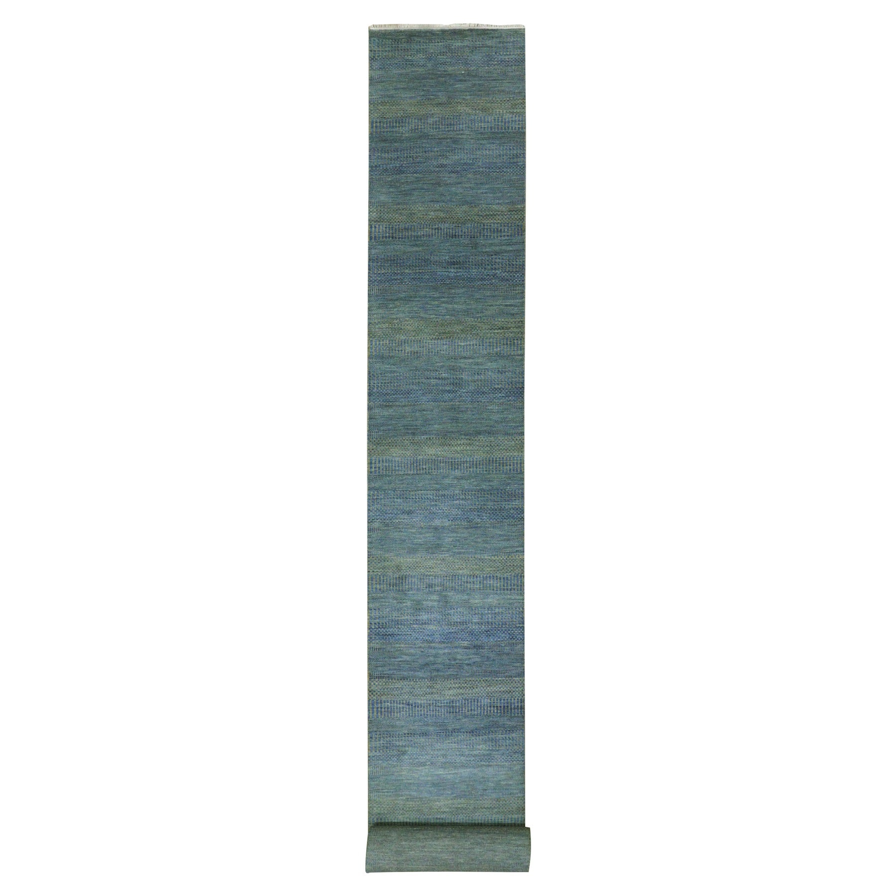 2'5"x20' Aegean Blue, Modern Tone On Tone Grass Design, Hand Knotted, Dyed Organic Wool, Xl Runner Oriental Rug FWR477708
