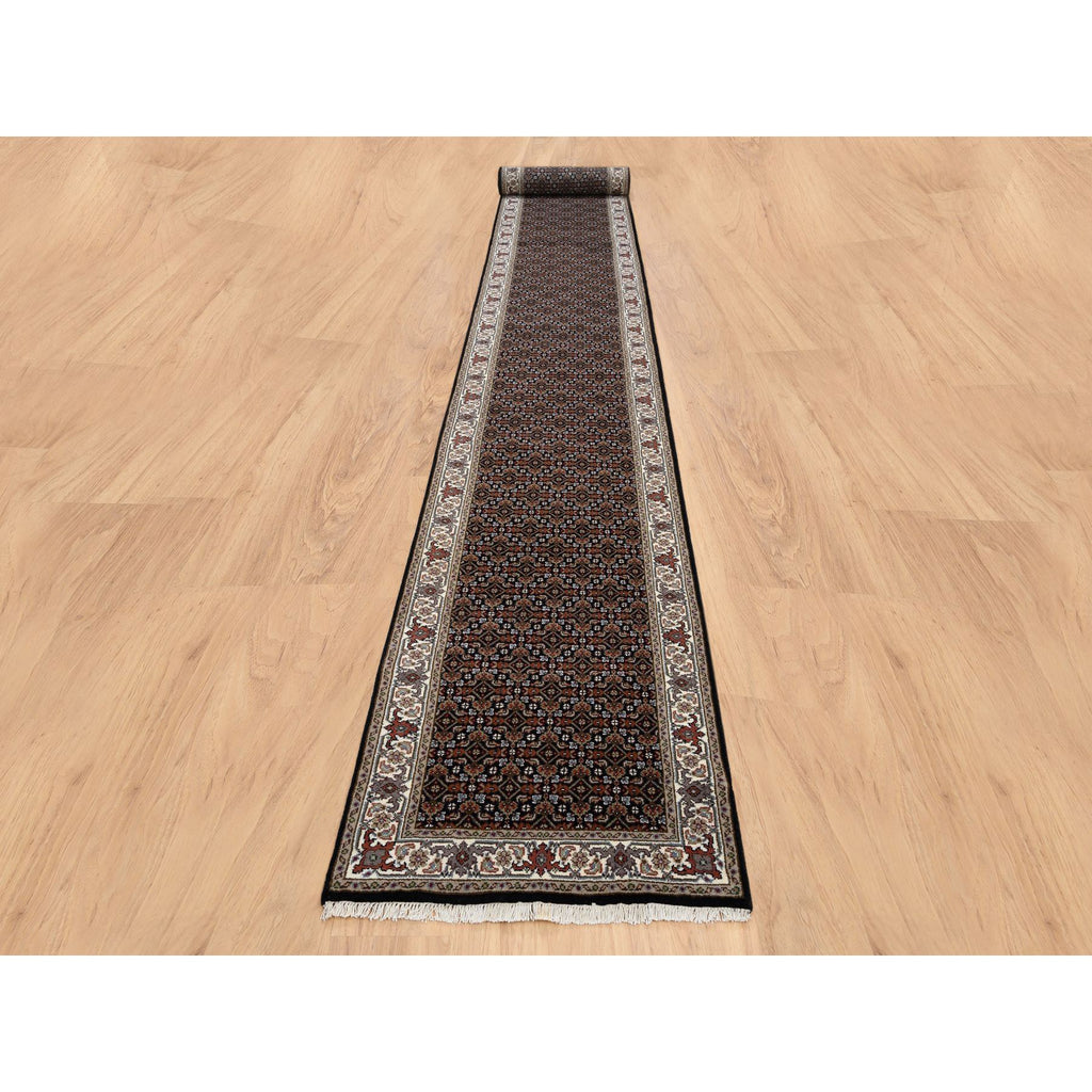 2'5"x20' Rich Black Hand Knotted 175 Kpsi Wool And Silk Herati With All Over Design Xl Runner Oriental Rug FWR384684