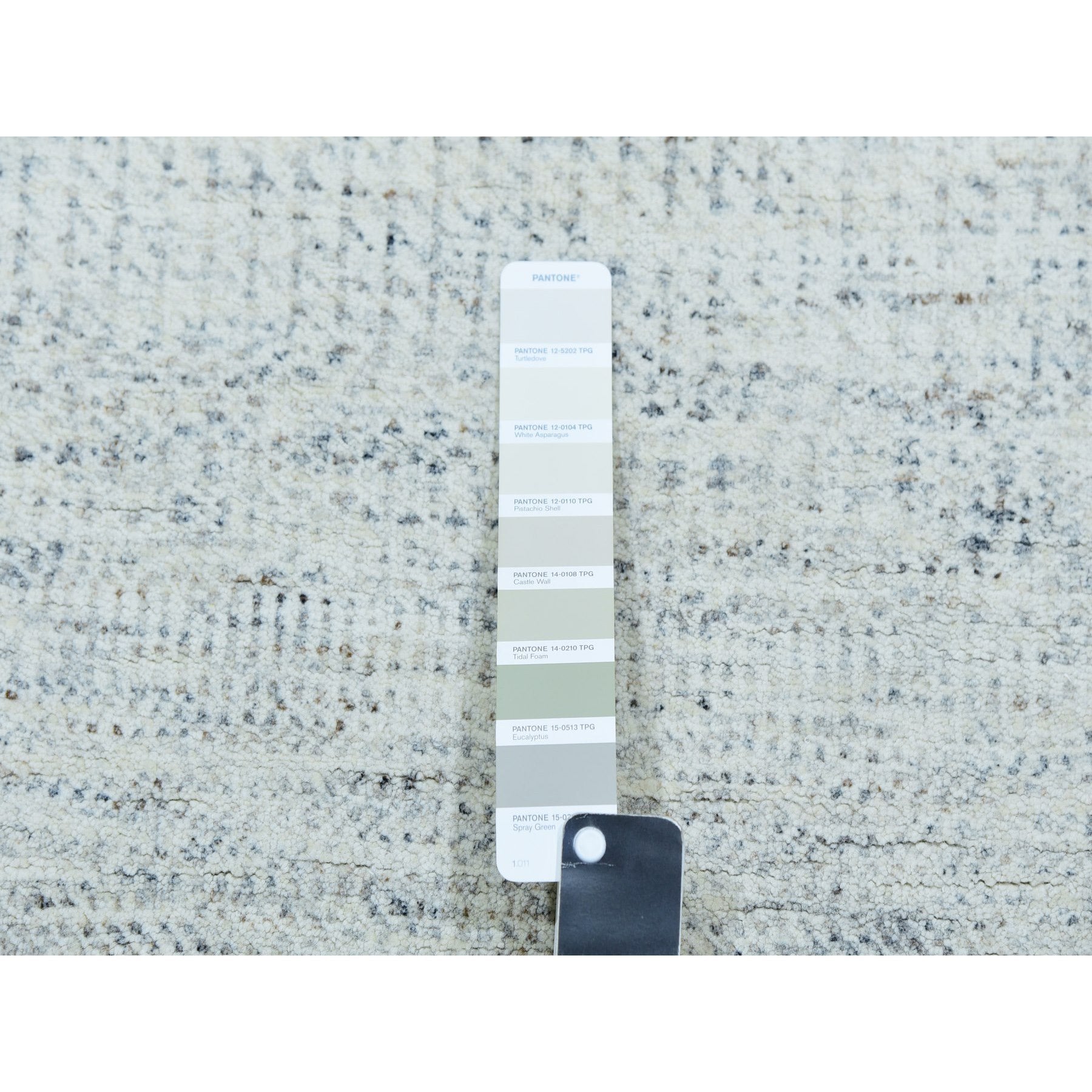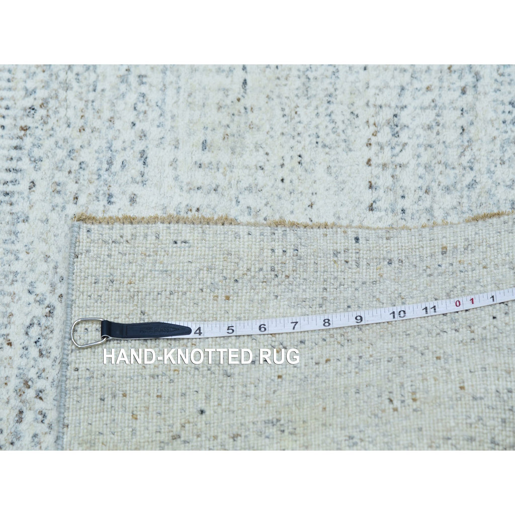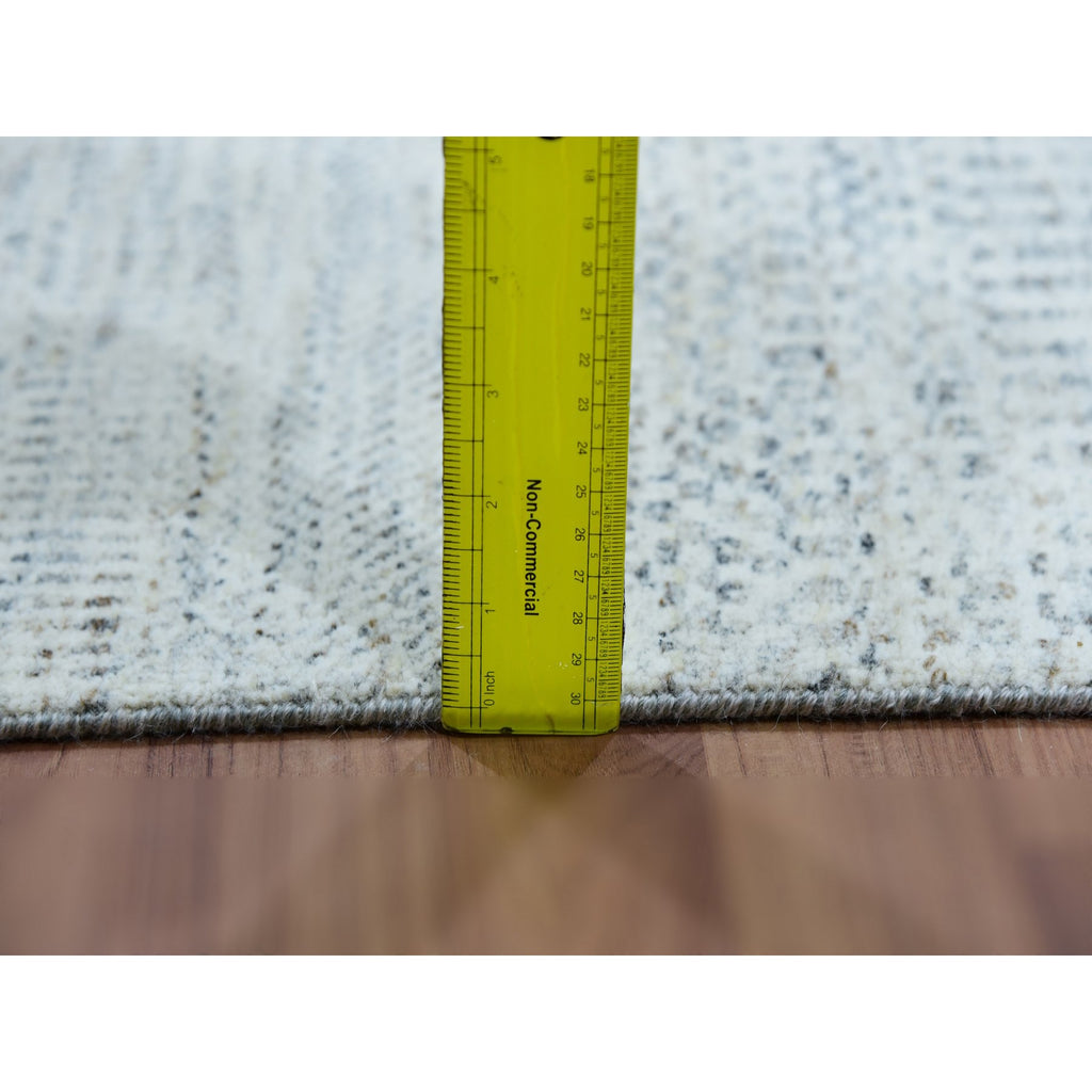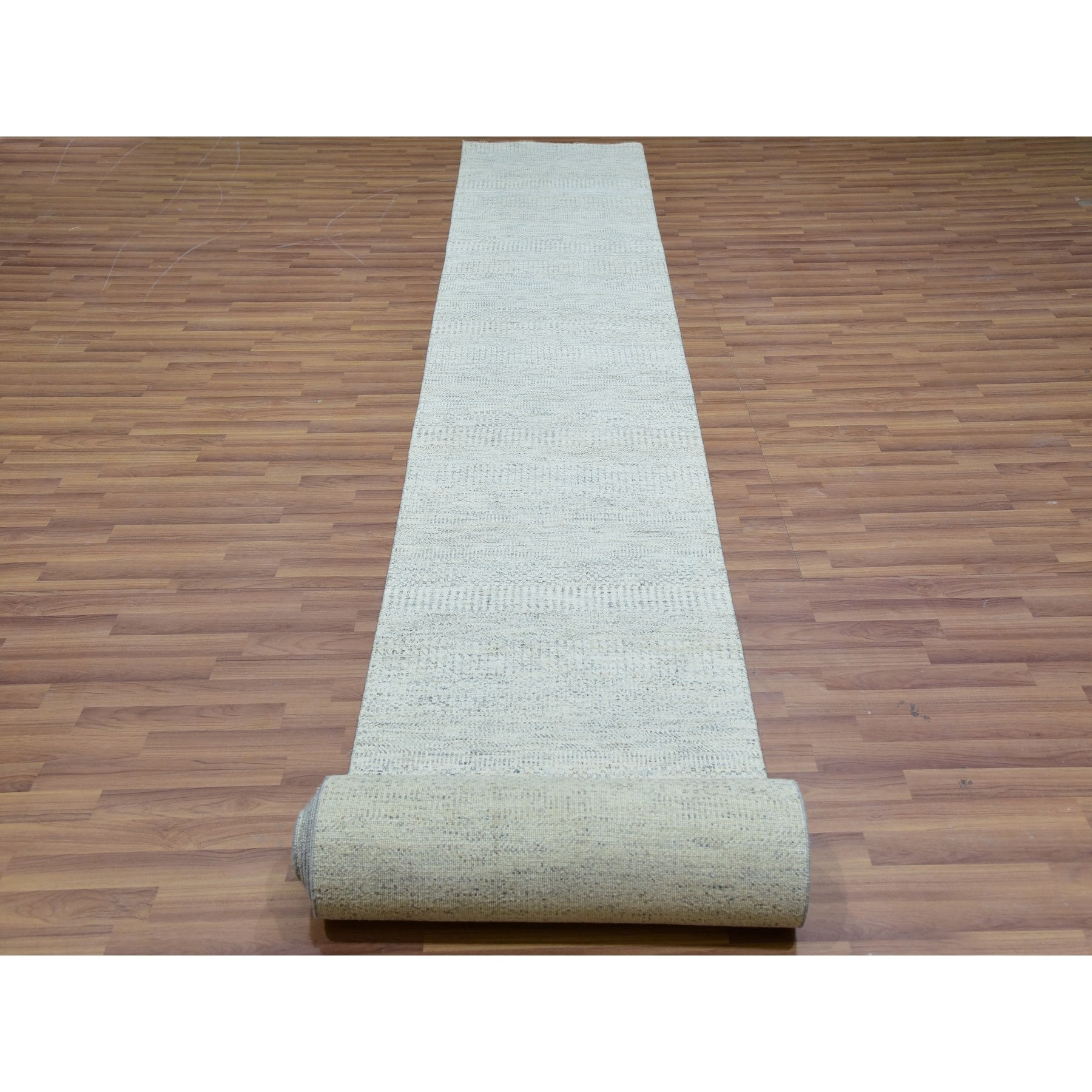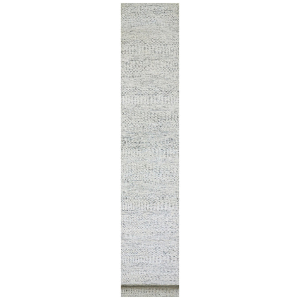 2'5"x21'9" Moonshine Gray, Borderless Modern Grass Design, Undyed, Tone On Tone, Hand Knotted Organic Wool, Xl Runner Oriental Rug FWR478992