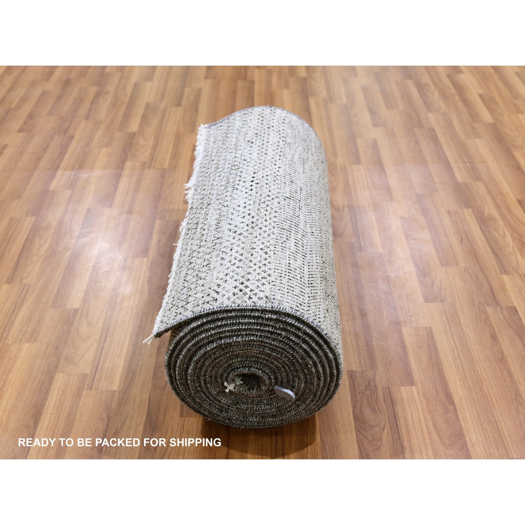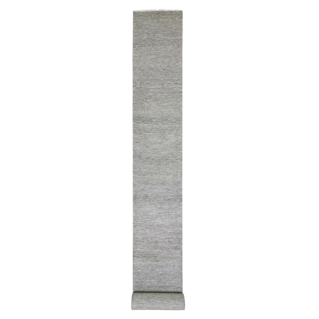 2'5"x24'3" Light Gray, Modern Grass Design, Tone On Tone, Undyed 100% Wool, Hand Knotted, Xl Runner Oriental Rug FWR477420