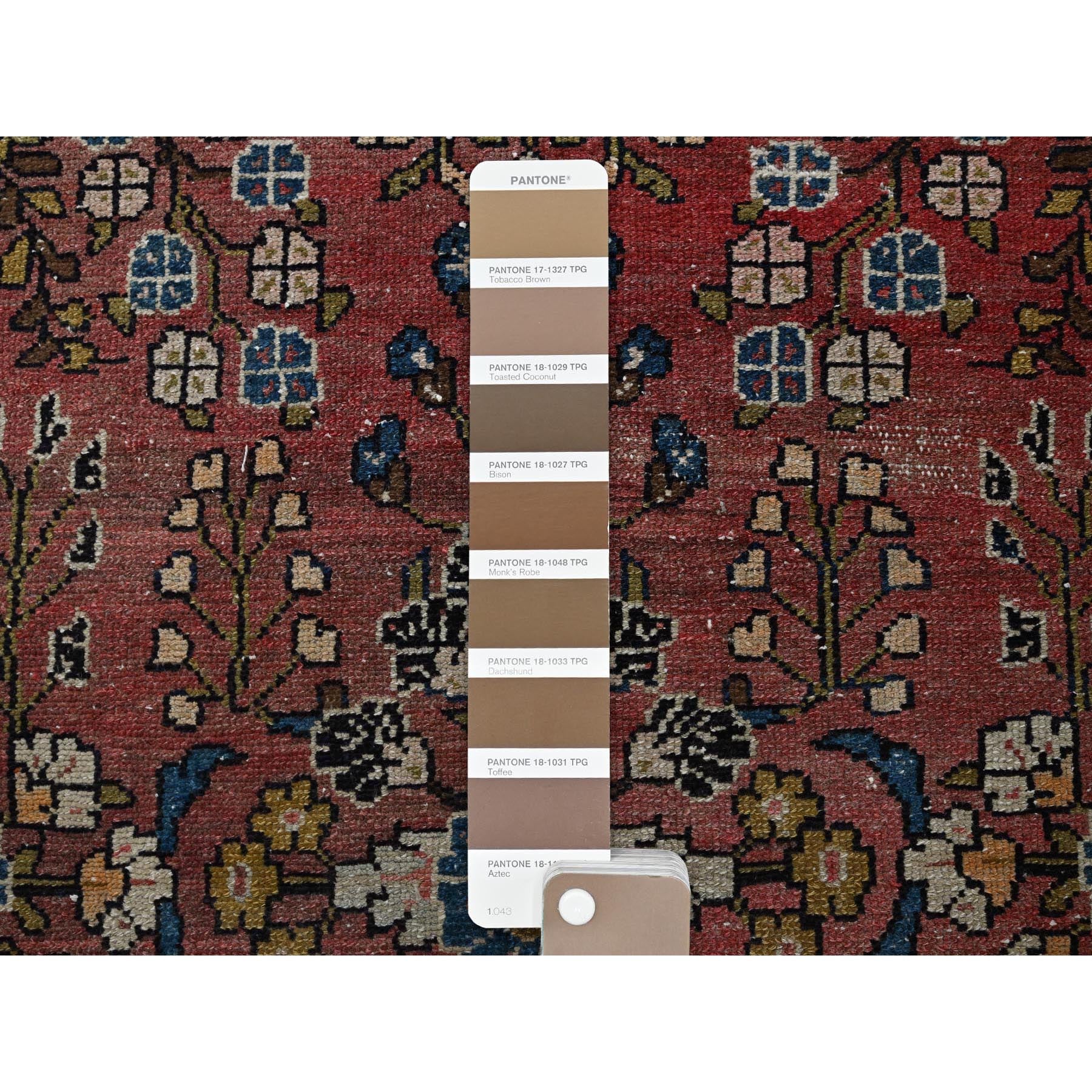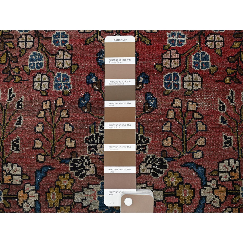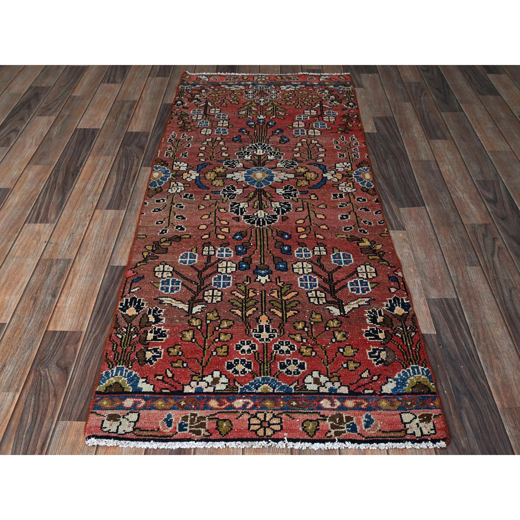 2'5"x5'10" Blush Red, Vintage Persian Lilahan With All Over Design, Distinct Abrash, Shaved Low, Zero Pile, Sides And Ends Professionally Secured, Hand Knotted, Pure Wool, Fragment, Runner, Oriental Rug FWR5082