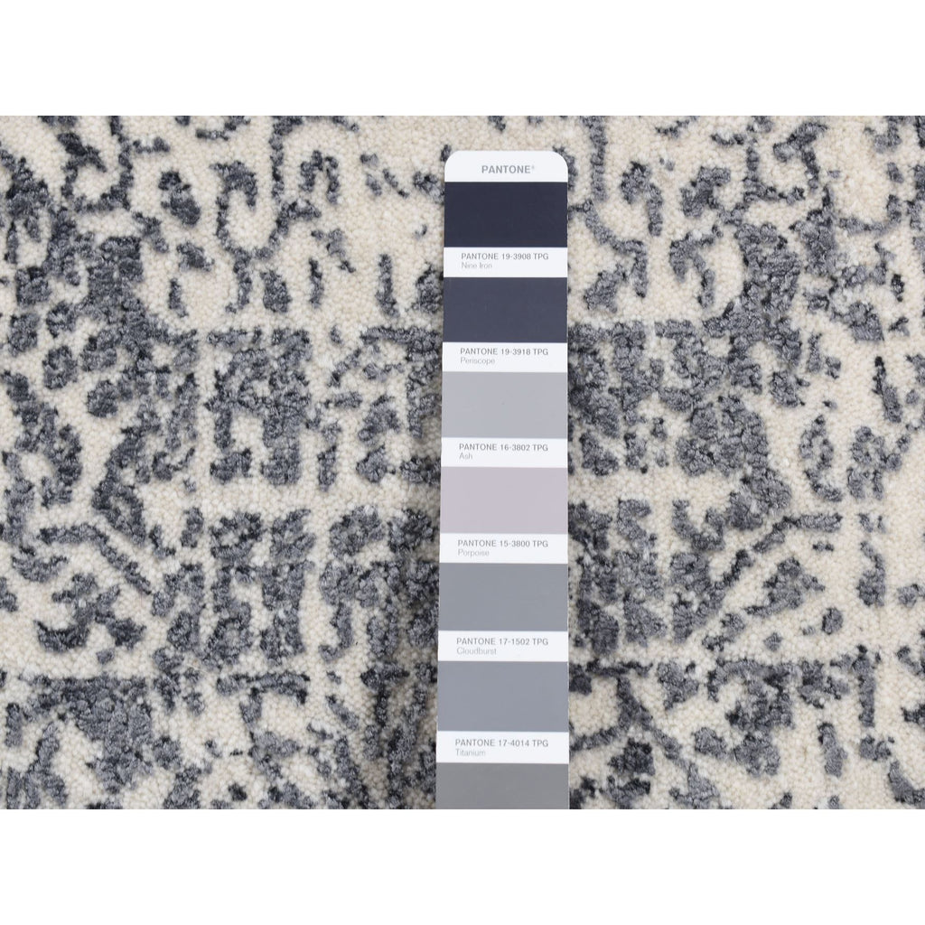 2'5"x5'10" Granite Black, Hand Loomed, Broken And Erased Mamluk Design, Wool And Art Silk, Runner Oriental Rug FWR524046