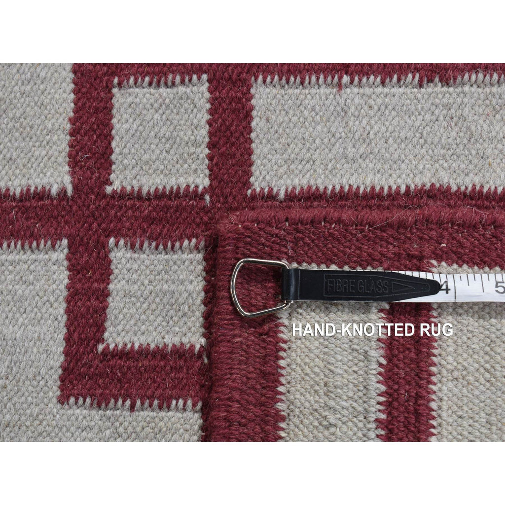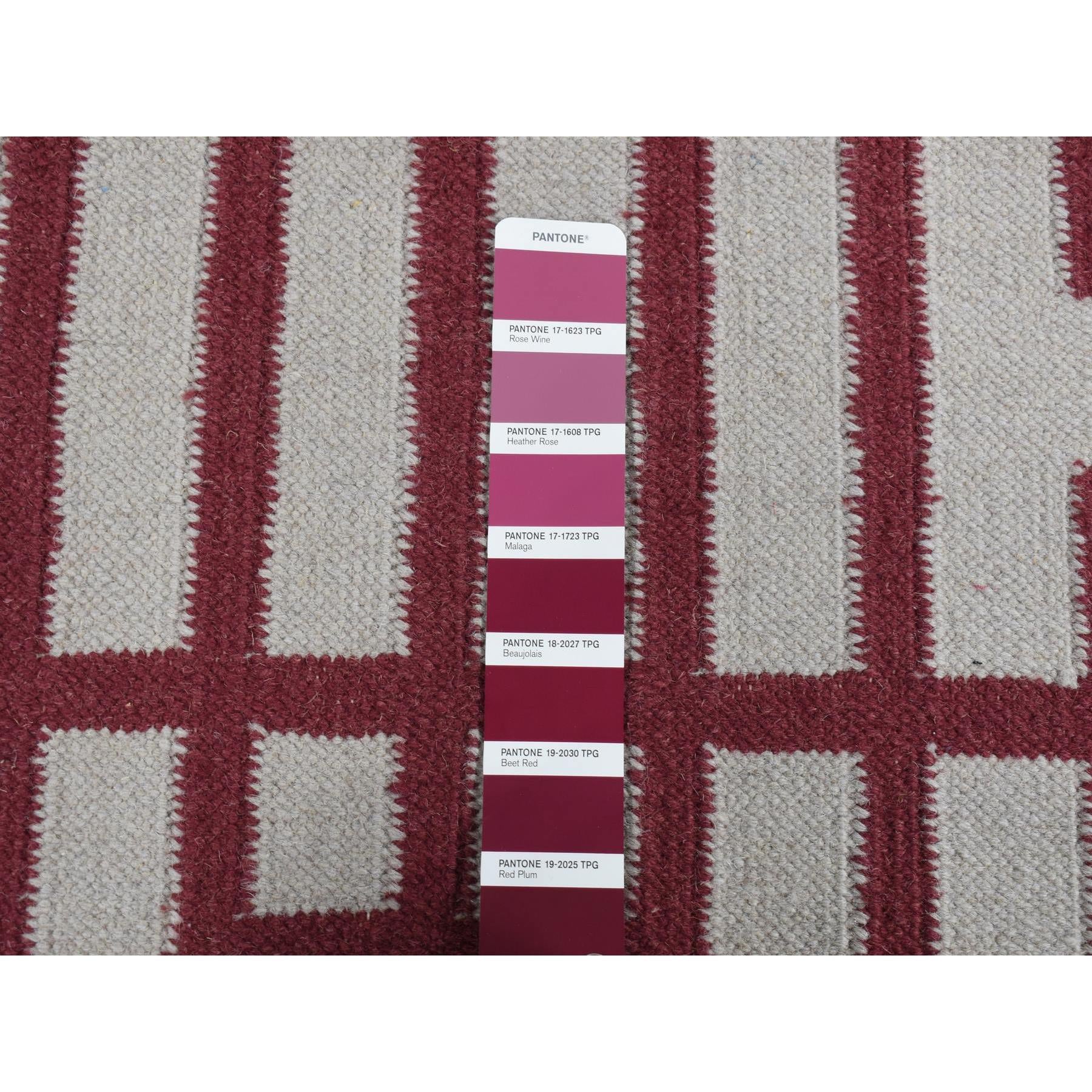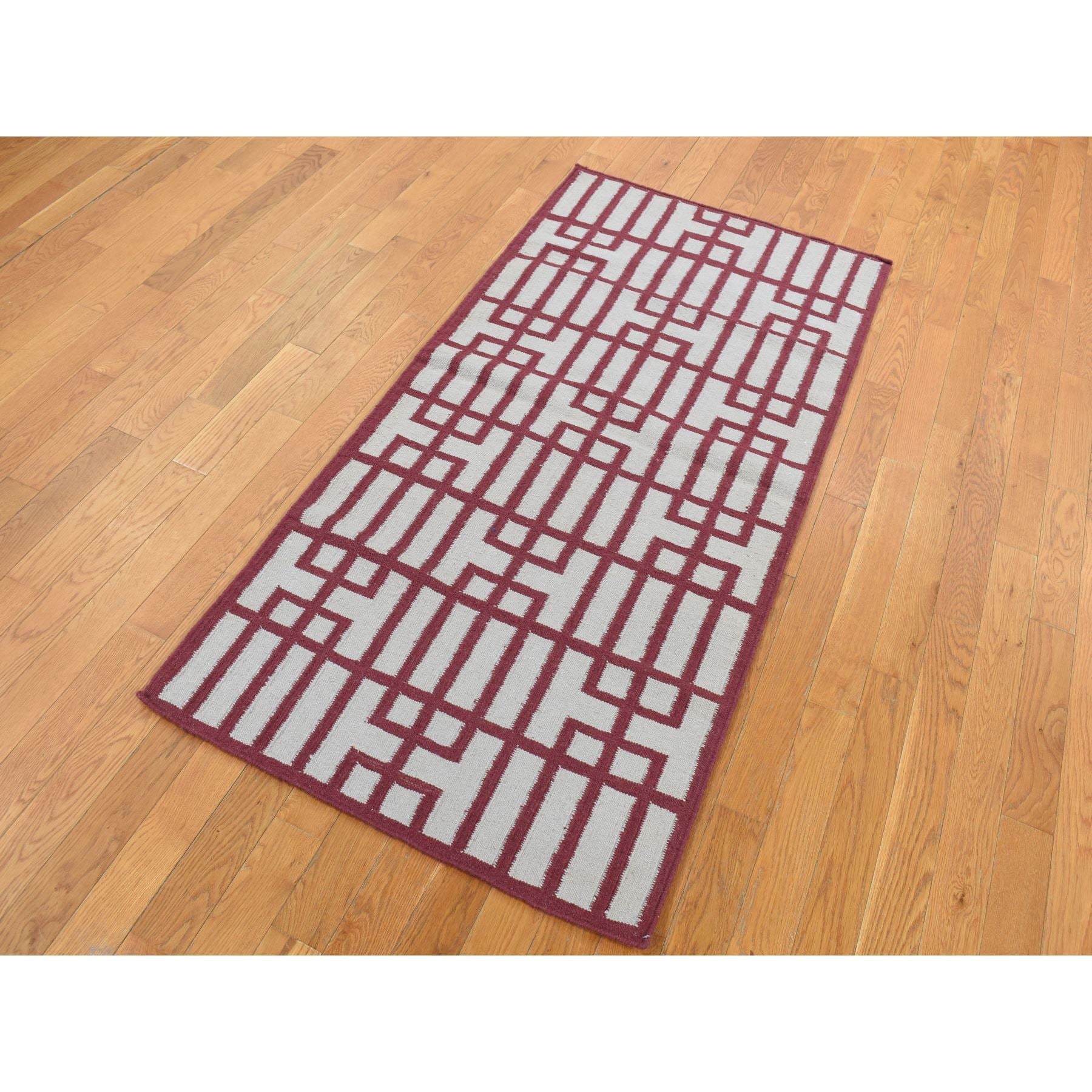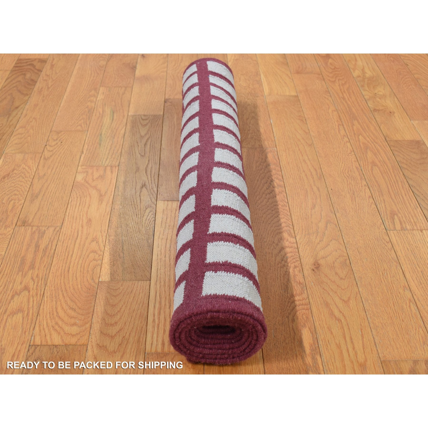 2'5"x6'1" Alabama Crimson Red, Flat Weave Reversible Kilim, Geometrical Line Design, 100% Wool, Hand Woven, Runner Oriental Rug FWR527082