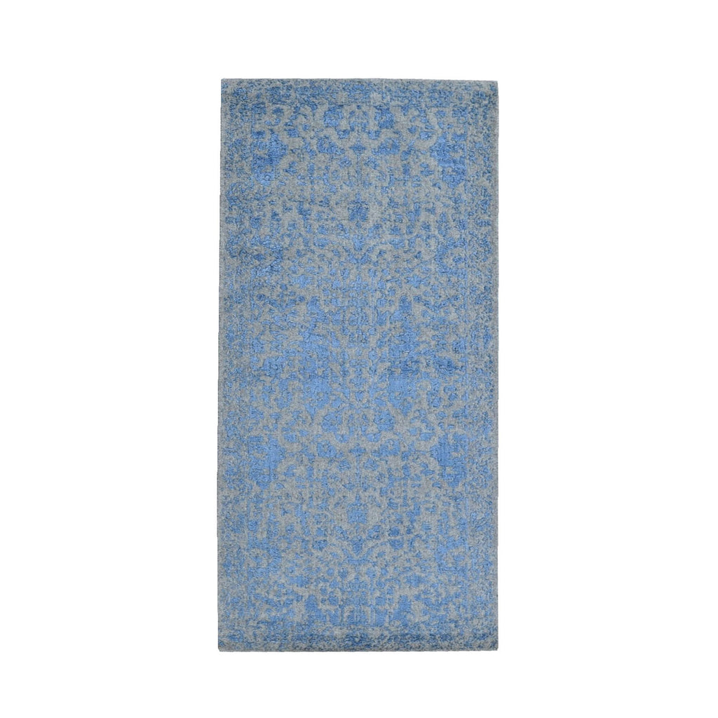 2'5"x6'1" Blue Fine Broken Cypress Tree Design Wool And Art Silk Hand Loomed Runner Oriental Rug FWR357708
