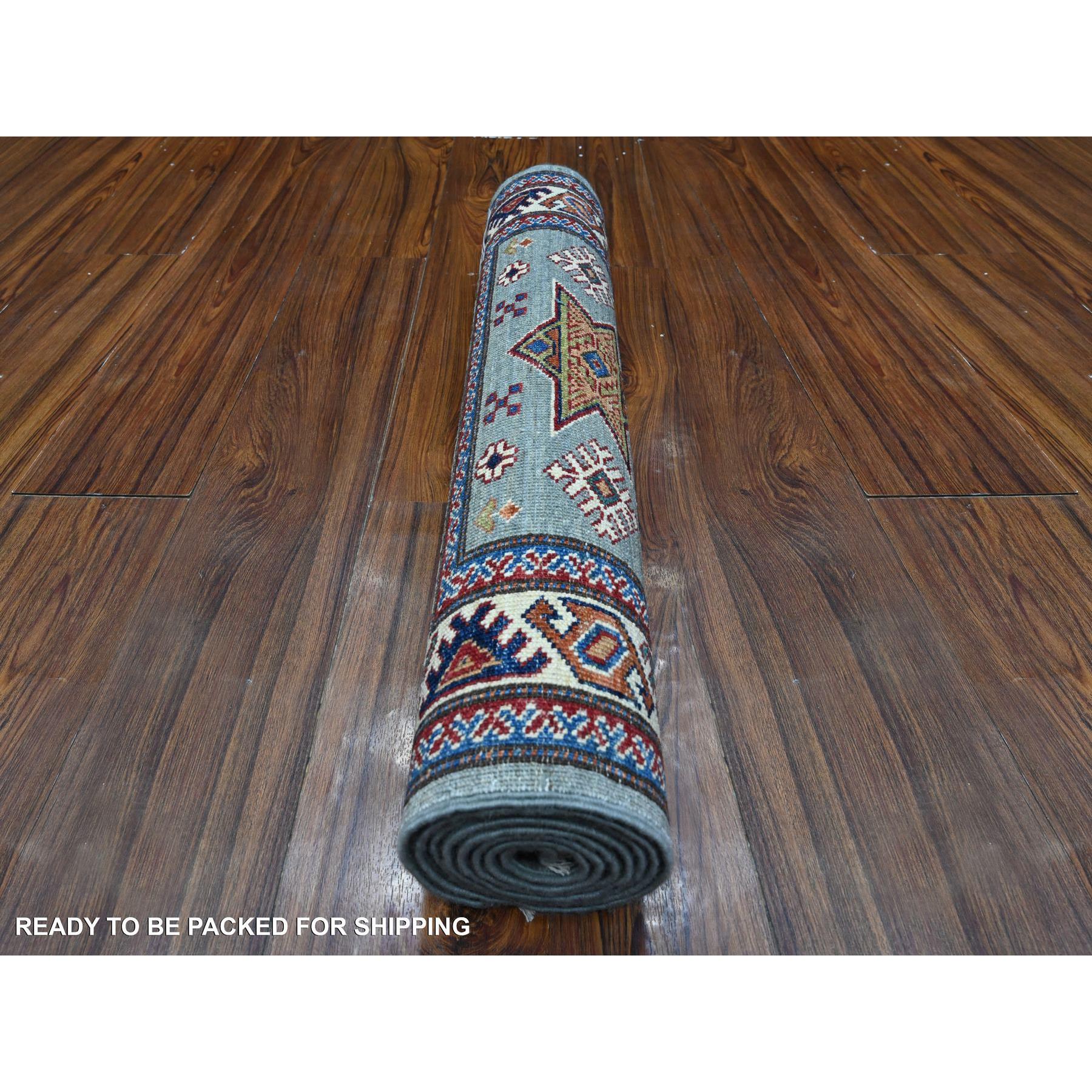 2'5"x6'10" Manatee Gray, Hand Knotted All Over Tribal Medallions, Vegetable Dyes, Afghan Super Kazak Pure Wool, Oriental Rug FWR535314