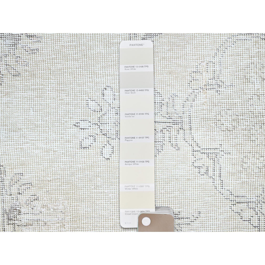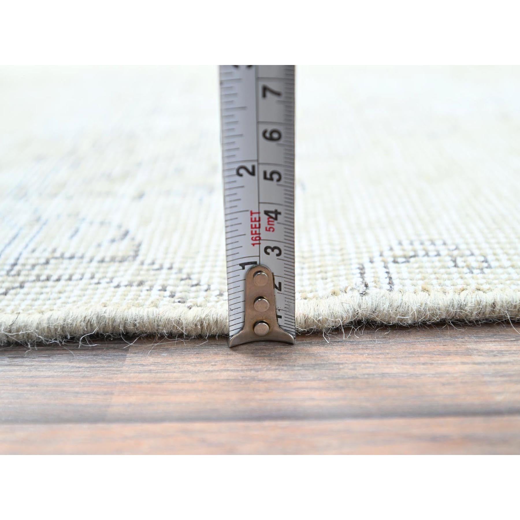 2'5"x7'6" Alabaster White, Pure Wool With Worn Out And Distressed Look, Hand Knotted Vintage Persian Tabriz, Cropped Thin, No Holes, White Wash, Runner Oriental Rug FWR1380
