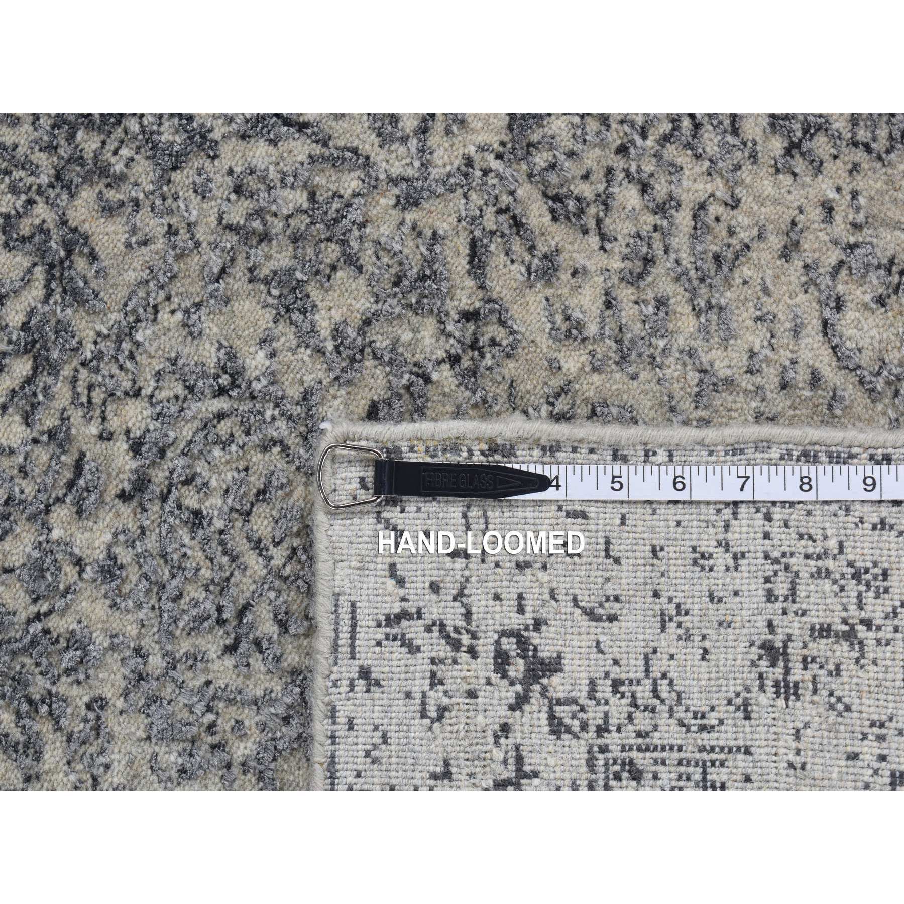 2'5"x8'2" Thunder Gray, Erased Design, Fine Jacquard, Hand Loomed, Wool And Silk, Runner Oriental Rug FWR523368