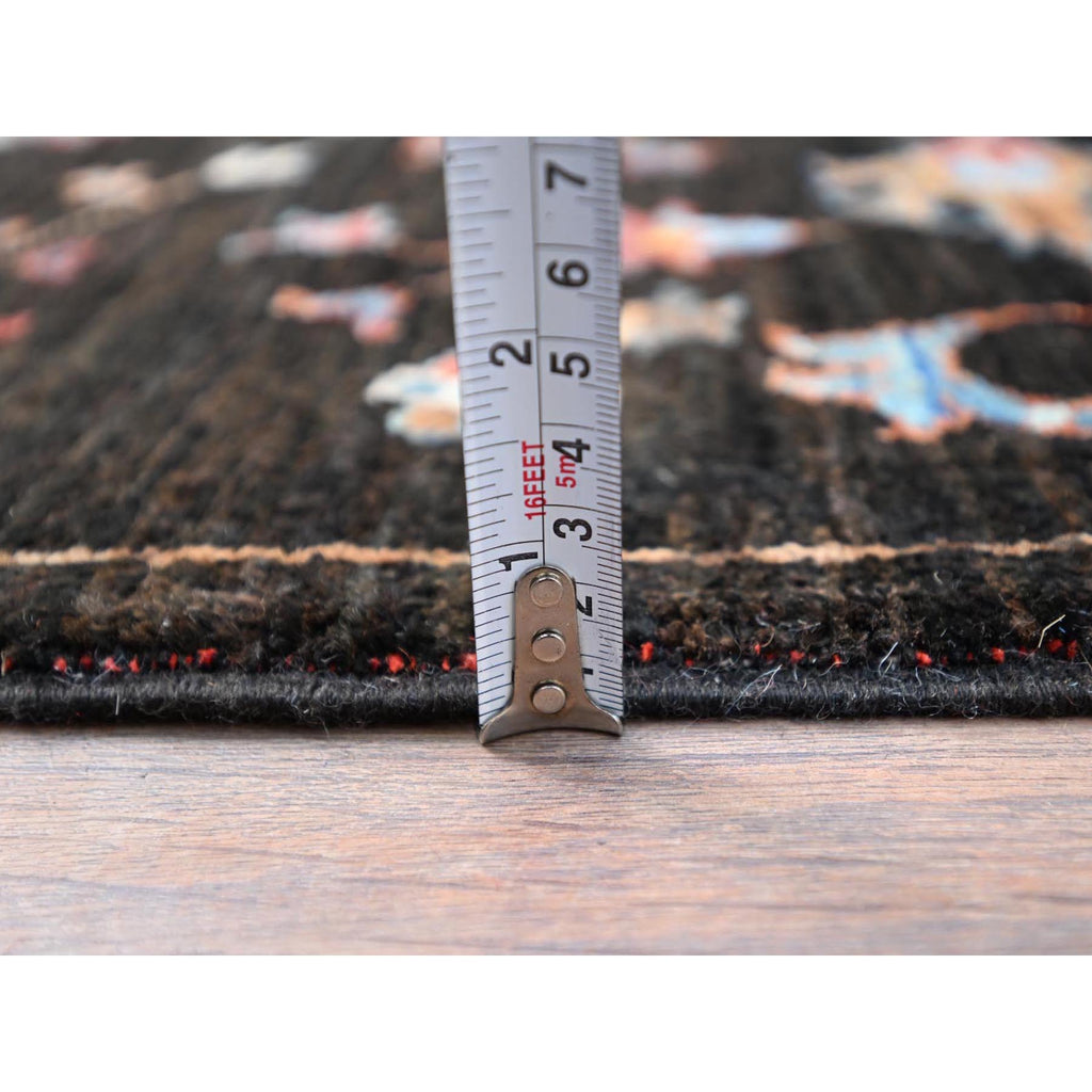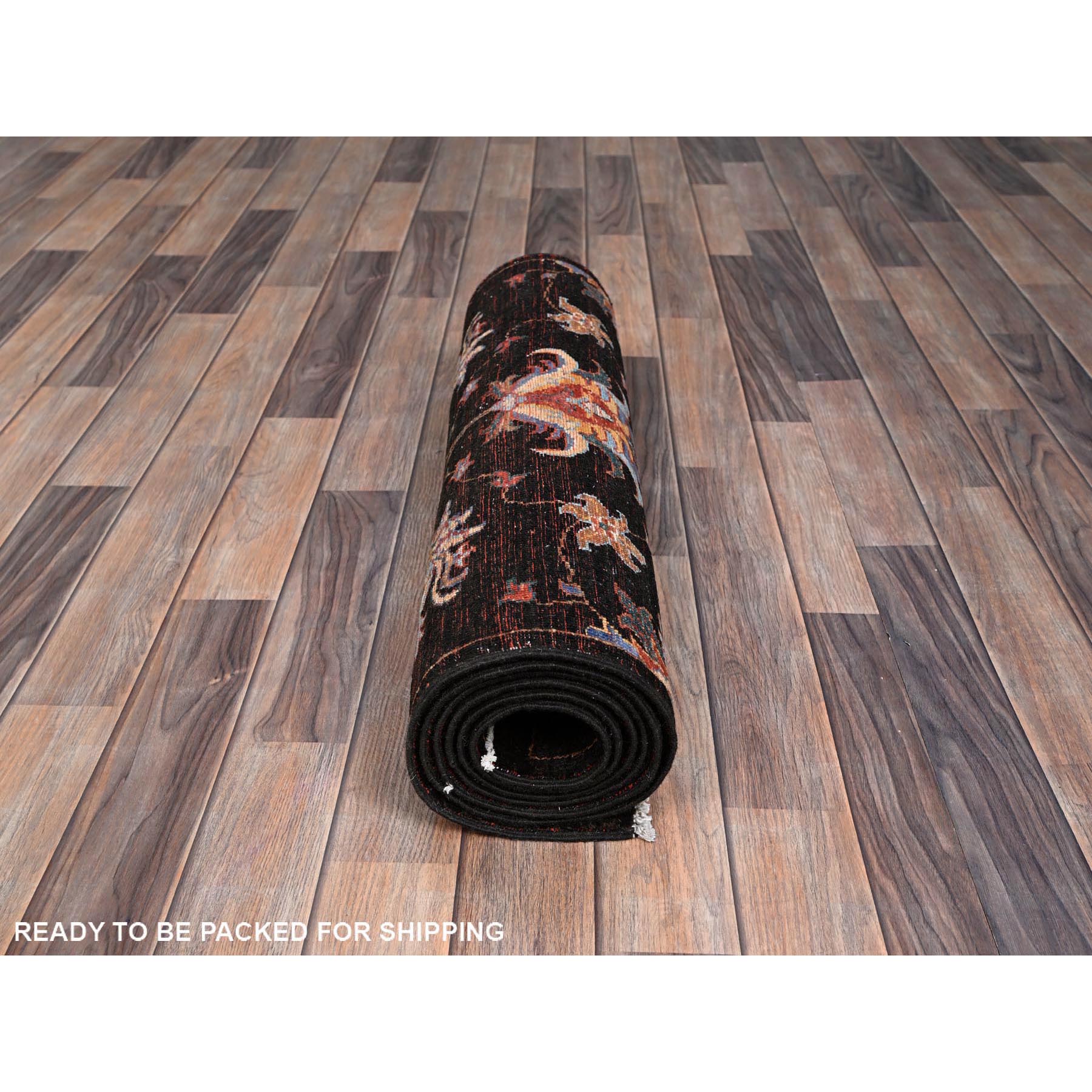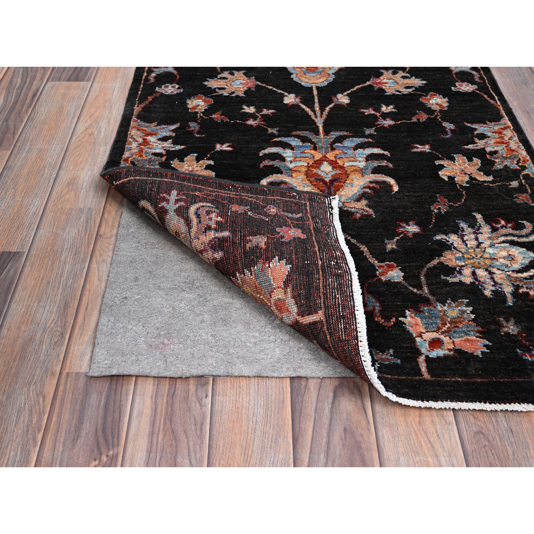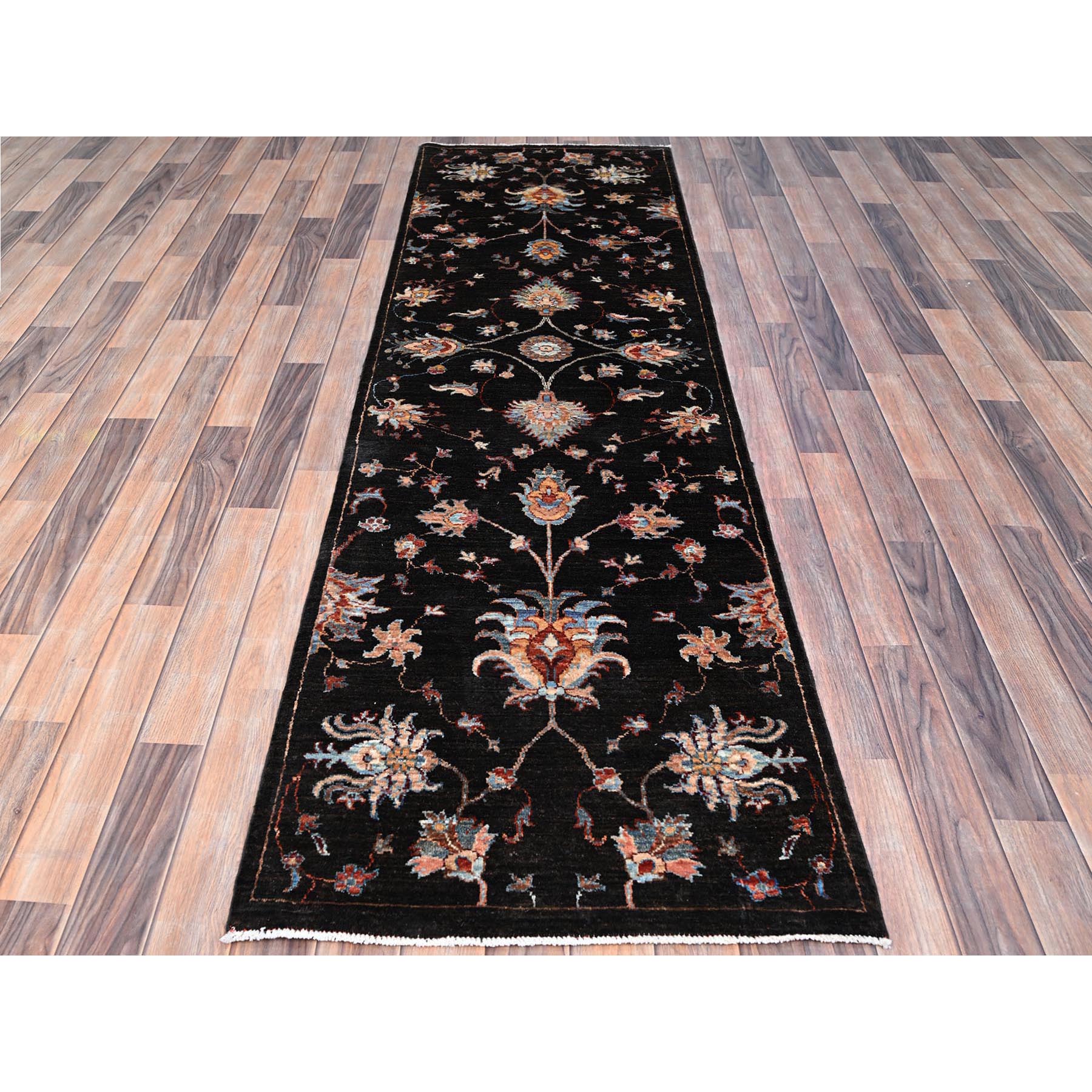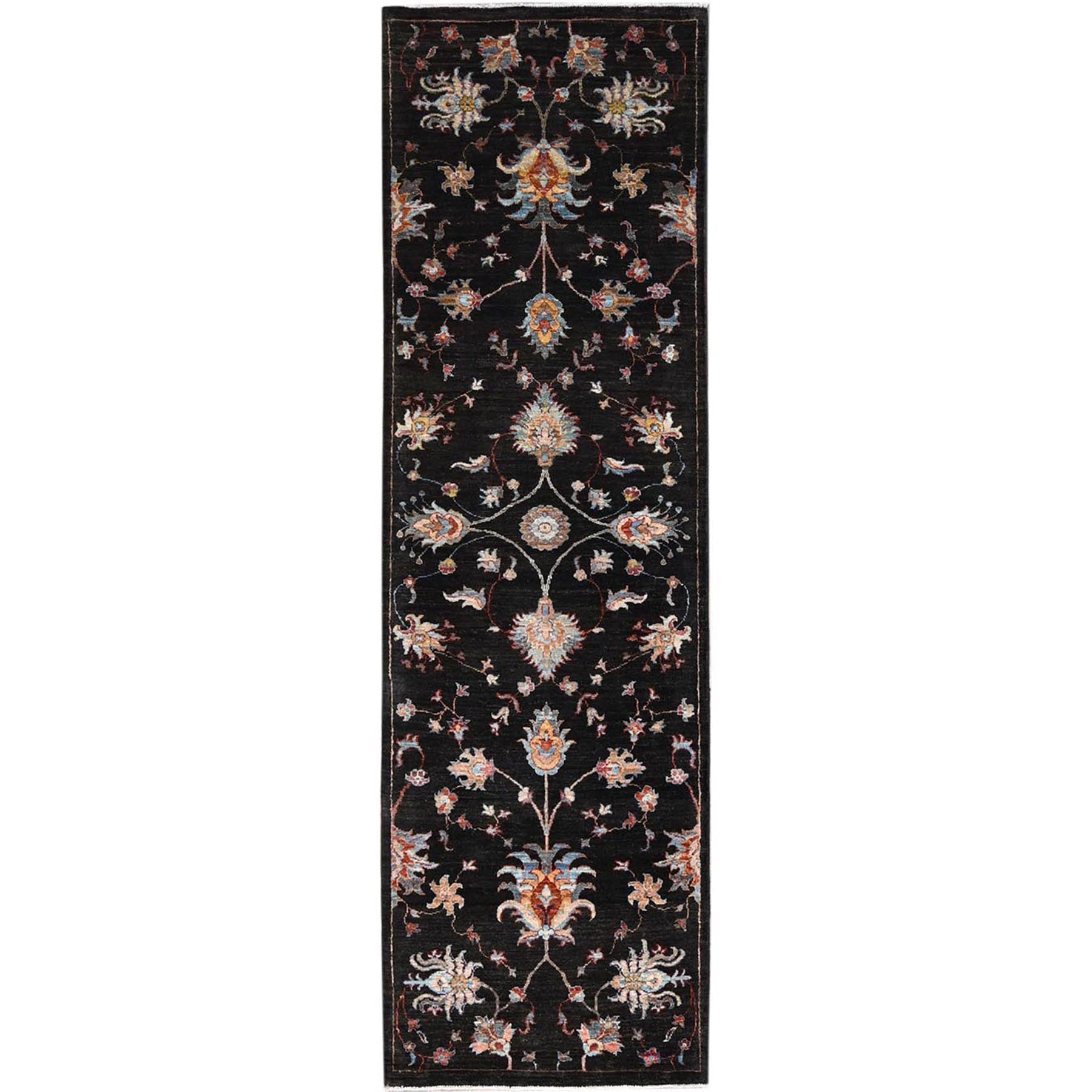 2'5"x8'3" Crow Black, Vegetable Dyes, Hand Knotted And Densely Woven Soft Wool, Afghan Sultani All Over Floral Design, Oriental Rug FWR521406