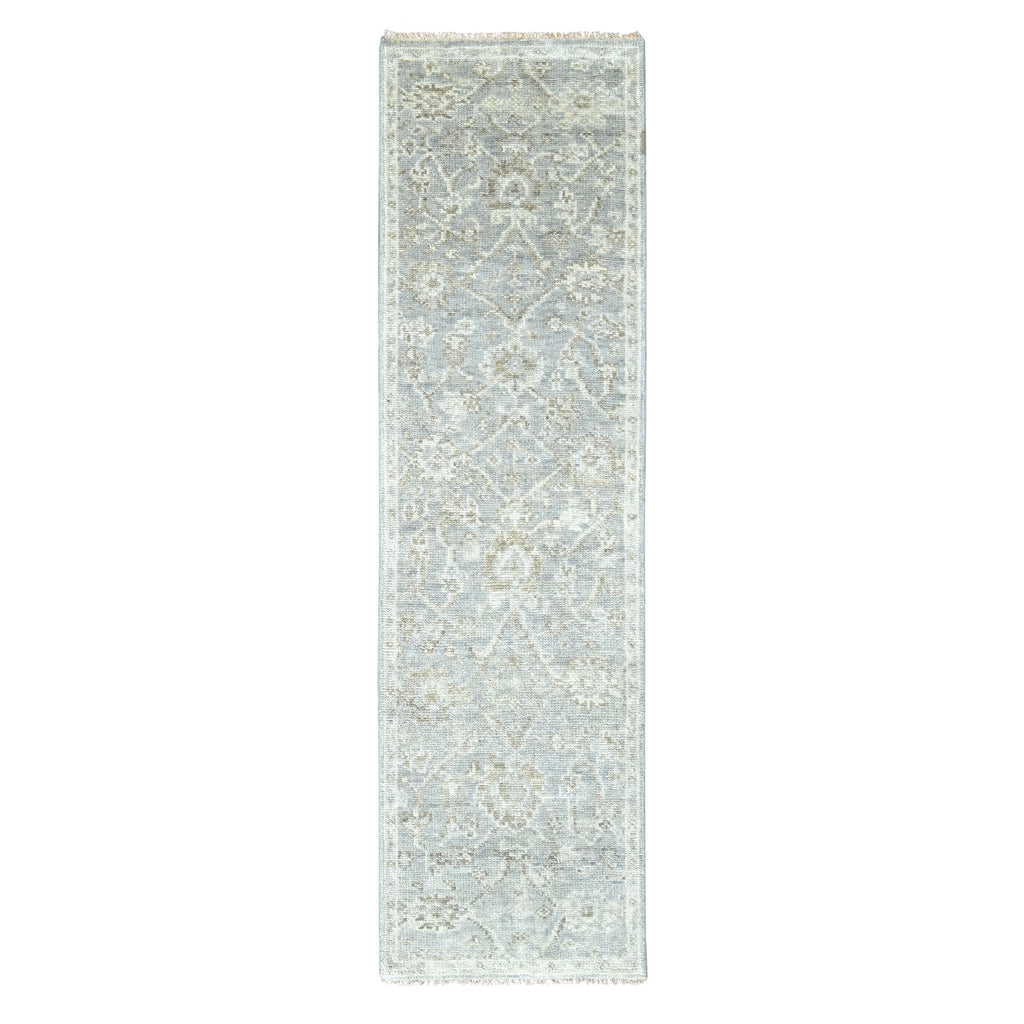 2'5"x8'7" Misty Gray, Oushak Design, Supple Collection, Tone On Tone, Hand Knotted, Soft Vibrant Wool Pile, Plush And Lush, Runner, Oriental Rug FWR61512