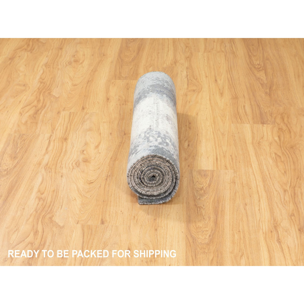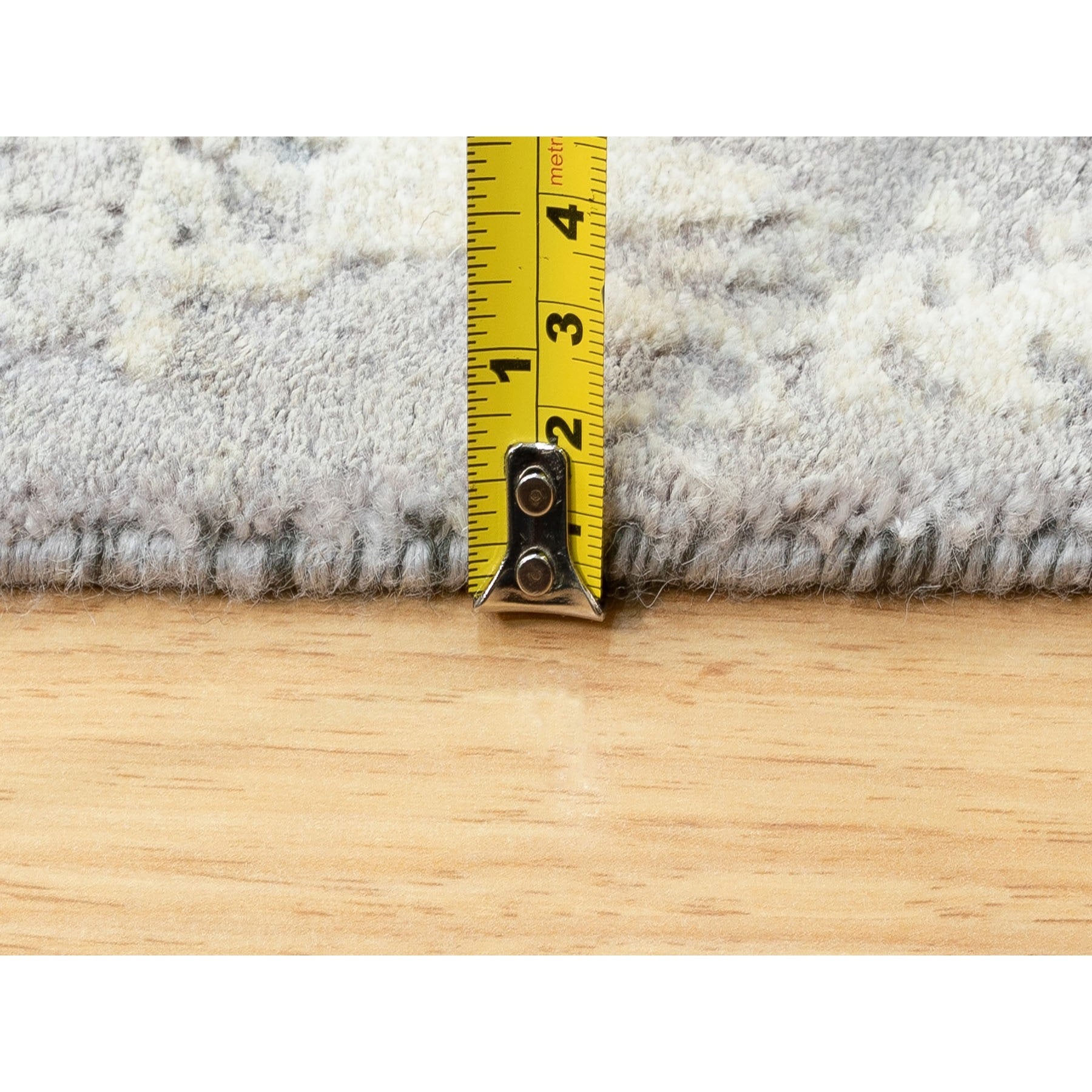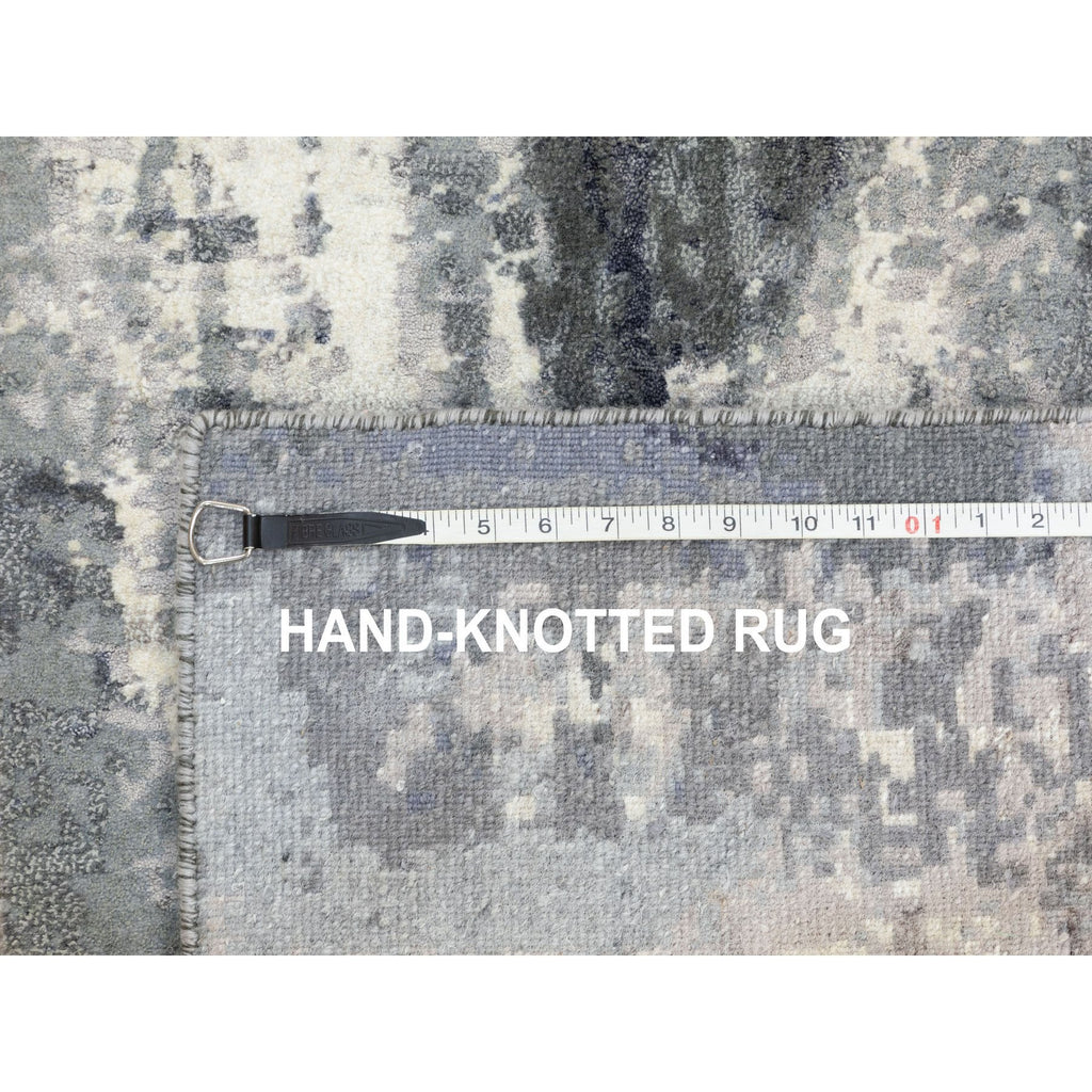 2'5"x8' Charcoal Black Abstract Design Wool And Silk Hand Knotted Oriental Runner Rug FWR372420