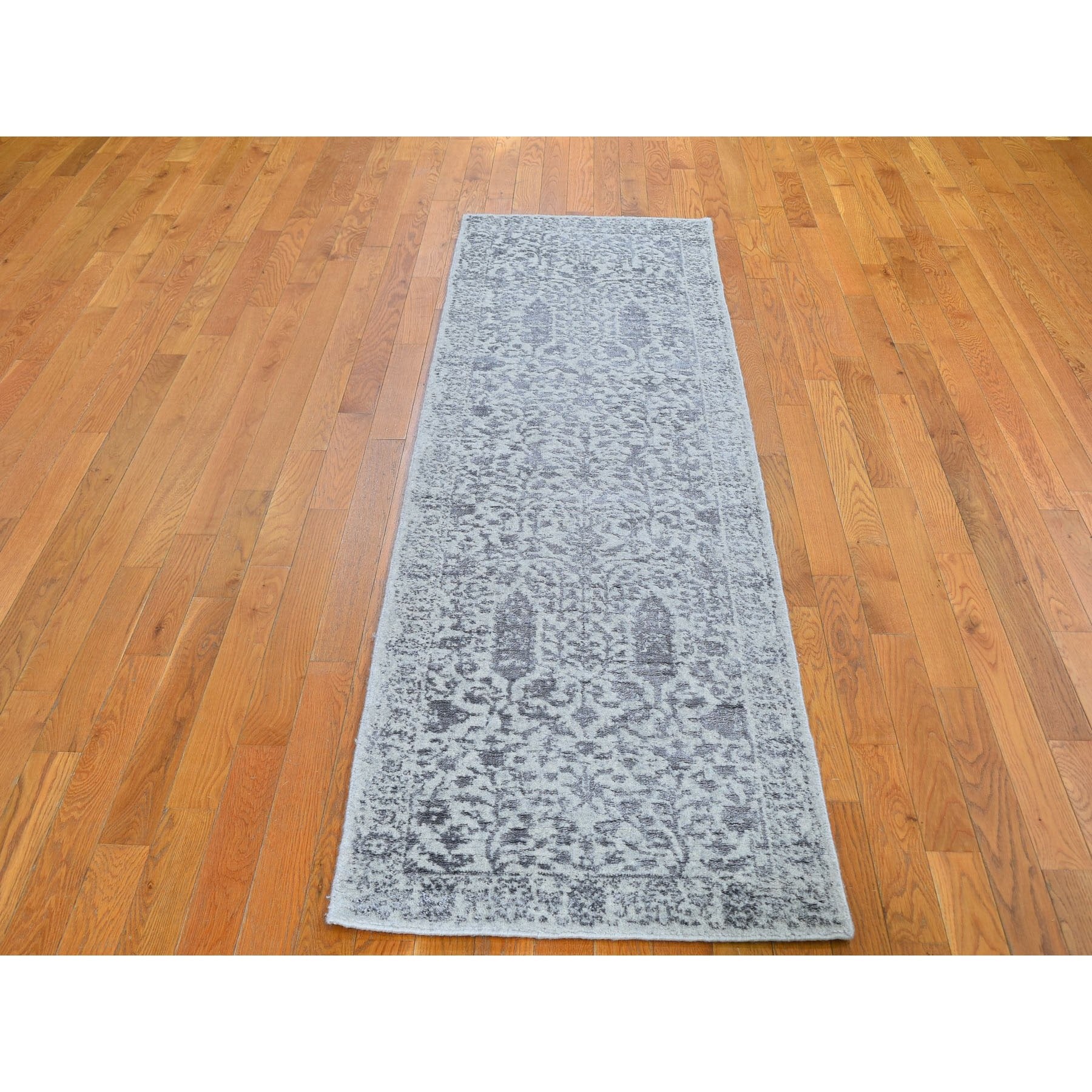 2'5"x8' Gray Jacquard Hand Loomed Broken Cypress Tree Design Wool And Silk Thick And Plush Runner Oriental Rug FWR357720