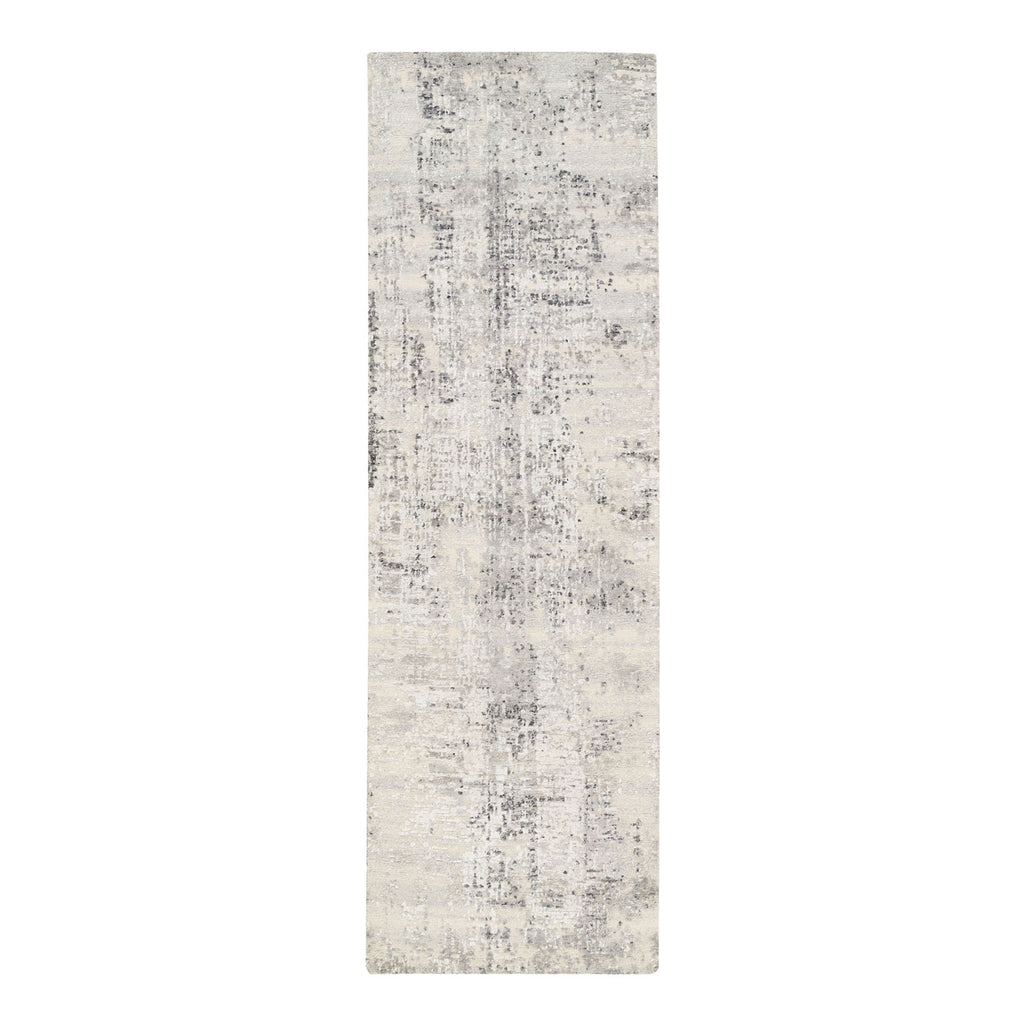 2'5"x8' Hand Knotted Hand Spun Undyed Natural Wool Modern Beige Oriental Runner Rug FWR377490