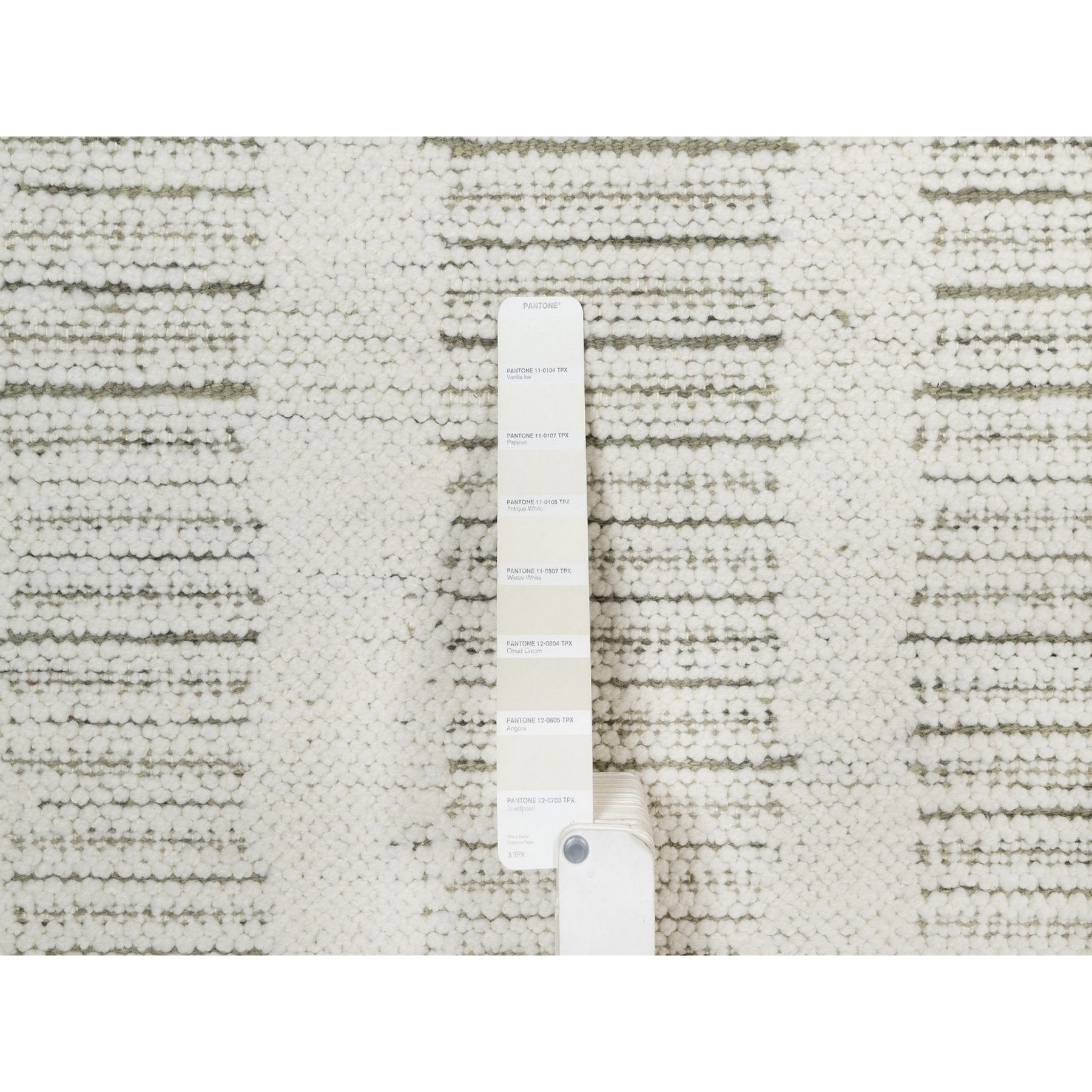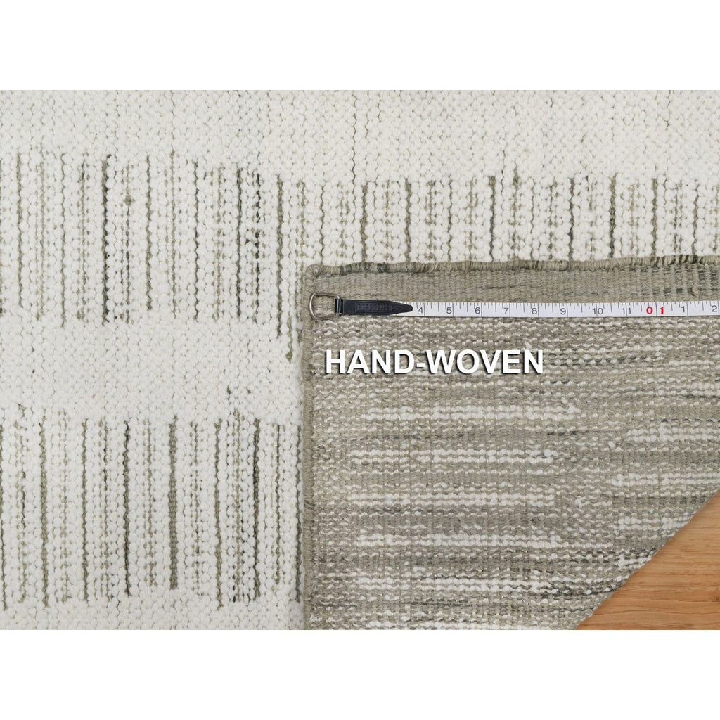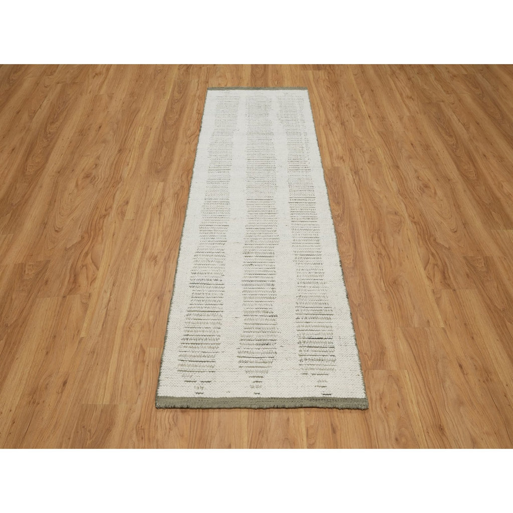 2'5"x8' Papyrus White, Hand Woven, Flat Weave With Textured Pile, Undyed Natural Wool, Runner, Oriental Rug FWR550338