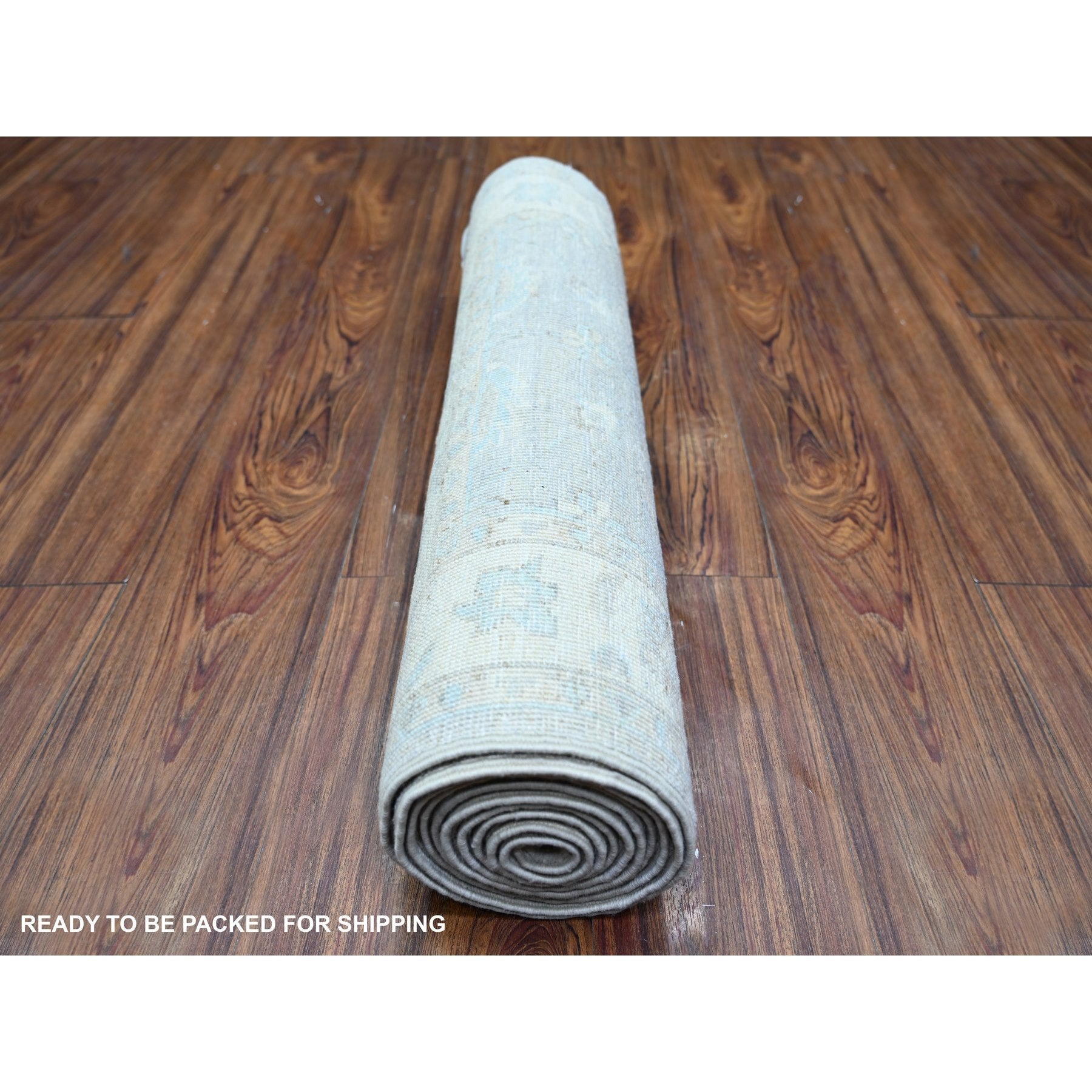 2'5"x9'6" Delicate White, Vegetable Dyes, Washed Out Peshawar, Pure Wool, Hand Knotted, Runner Oriental Rug FWR447054