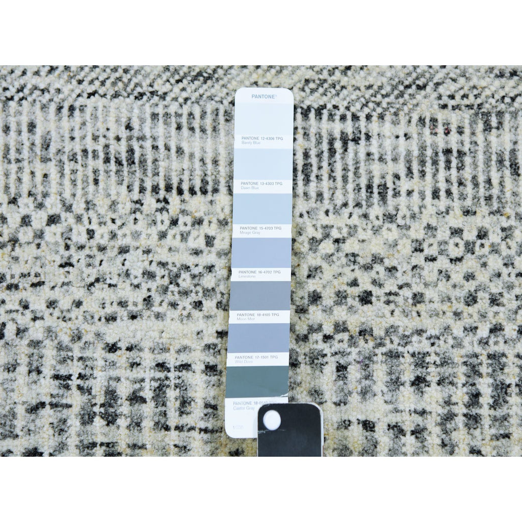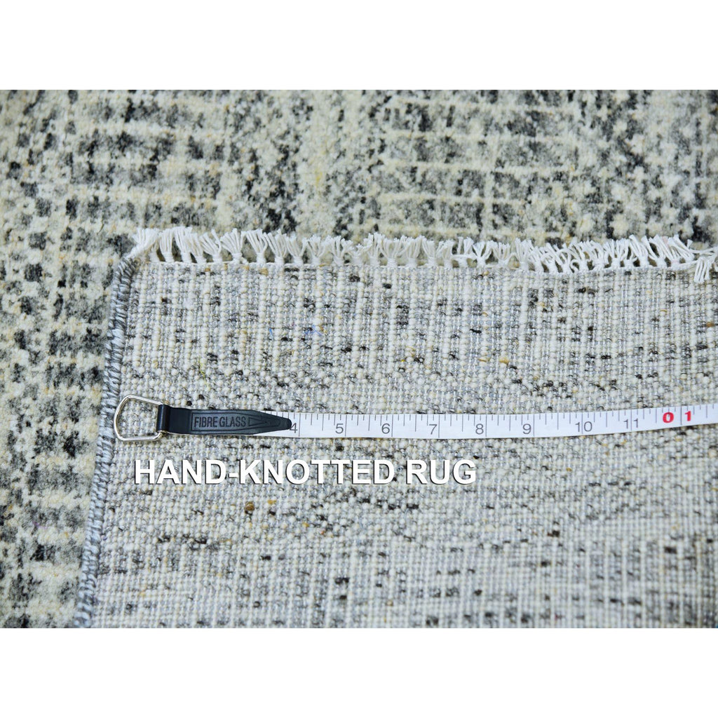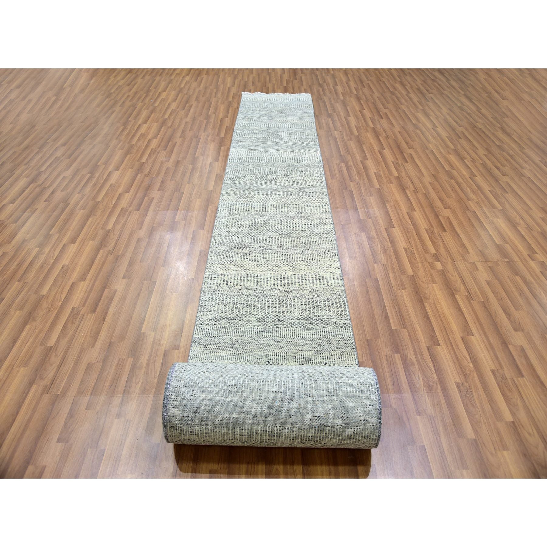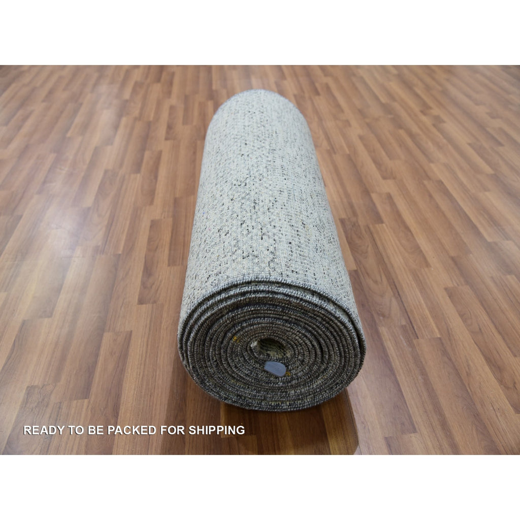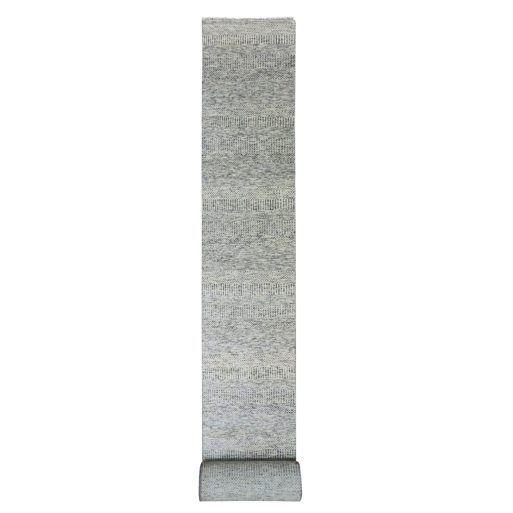 2'5x28'4" Secret Gray, Undyed Extra Soft Wool, Modern Xl Runner With Hand-knotted Grass Design, Oriental Rug FWR479292