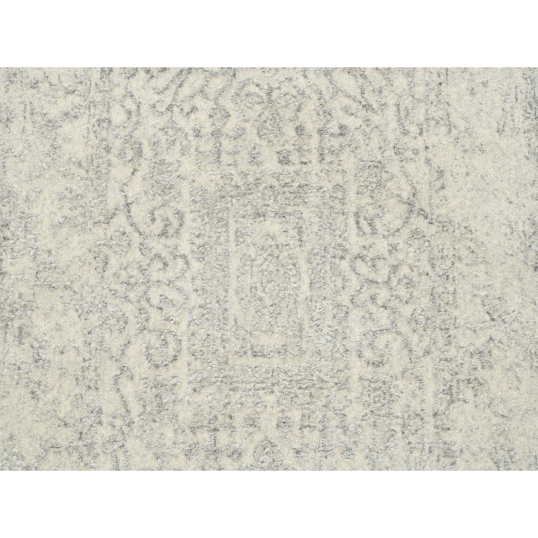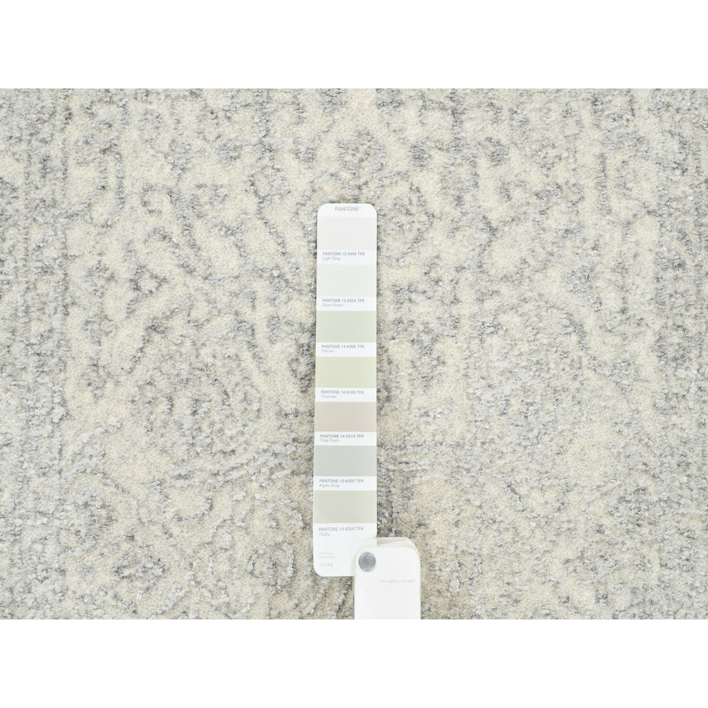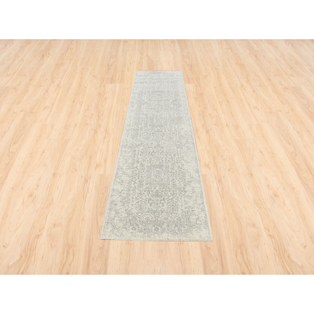2'6"x10'1" Beige Hand Loomed With Transitional Design Fine Jacquard Wool And Plant Based Silk Oriental Runner Rug FWR377136