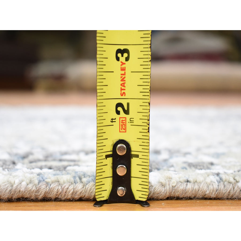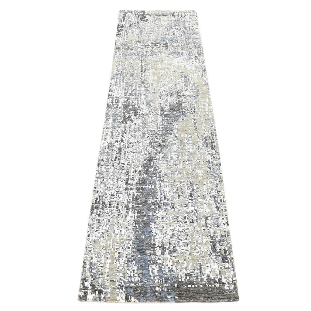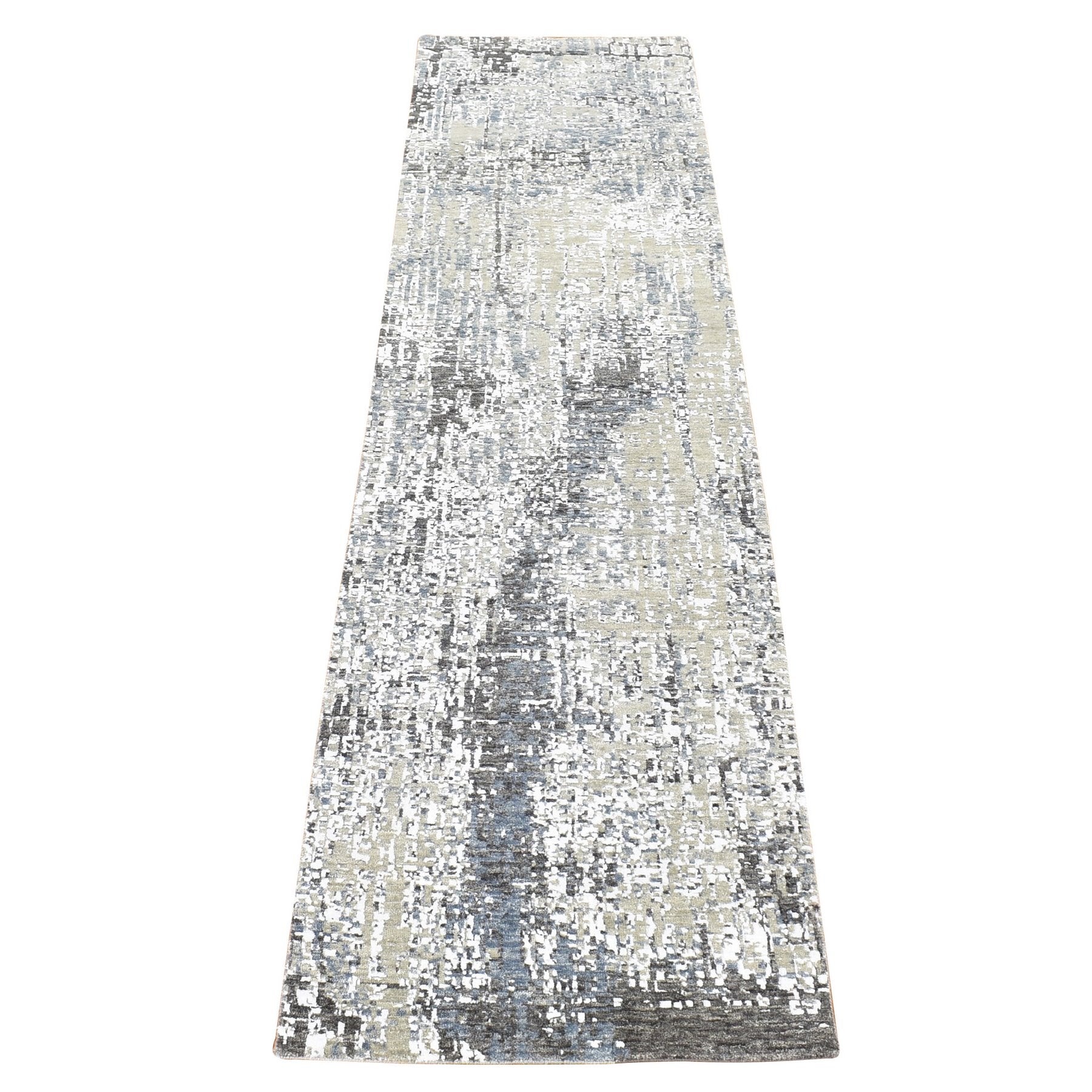 2'6"x10'1" Beige, Modern Abstract Design, Denser Weave Hand Knotted Pure Wool, Runner Oriental Rug FWR481110