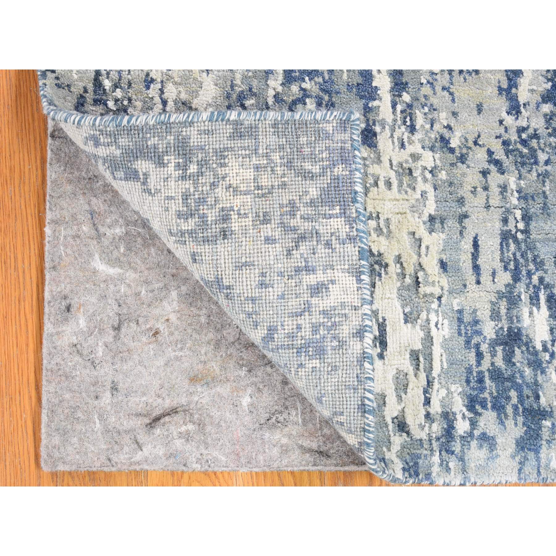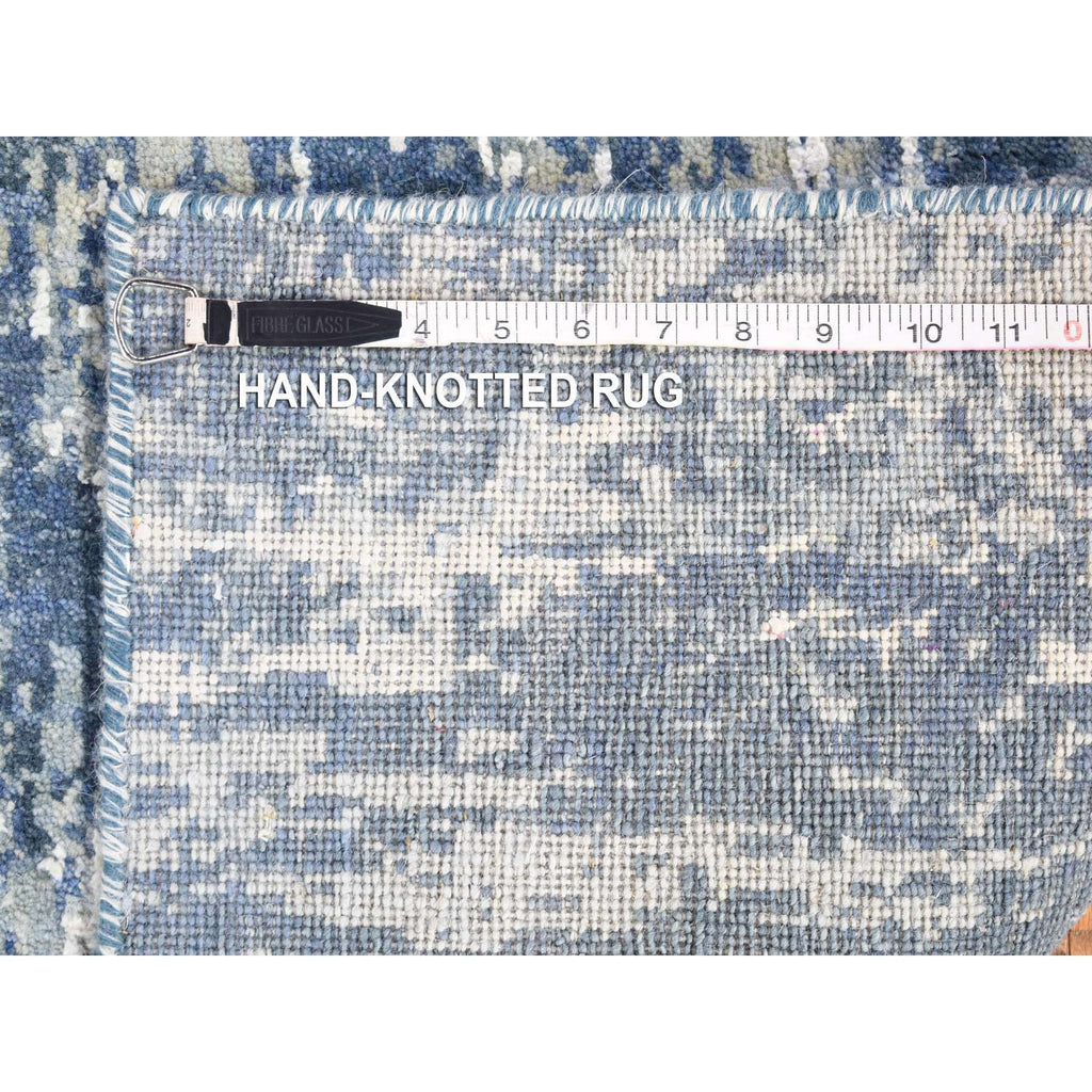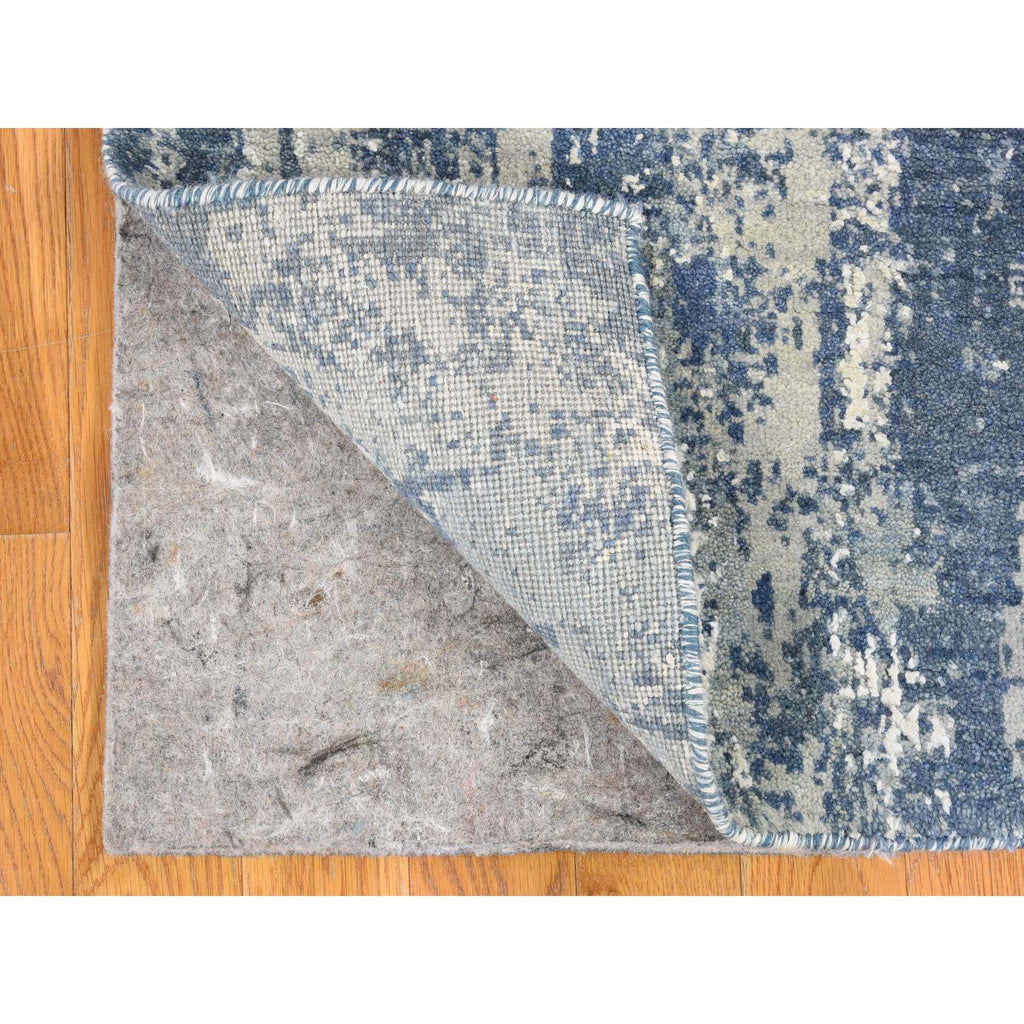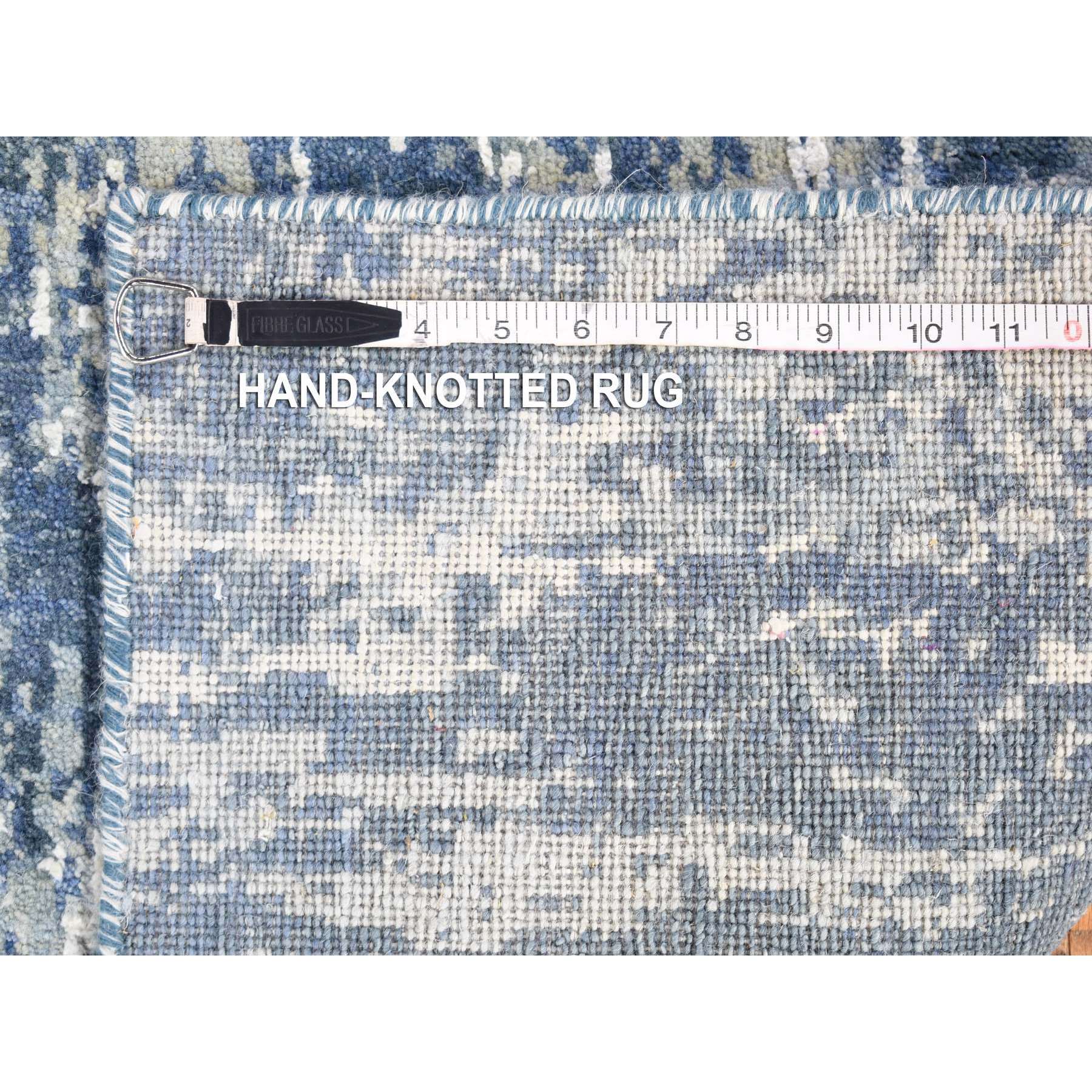 2'6"x10'1" Hand Knotted Denim Blue Abstract Design Wool And Real Silk Runner Oriental Rug FWR401880