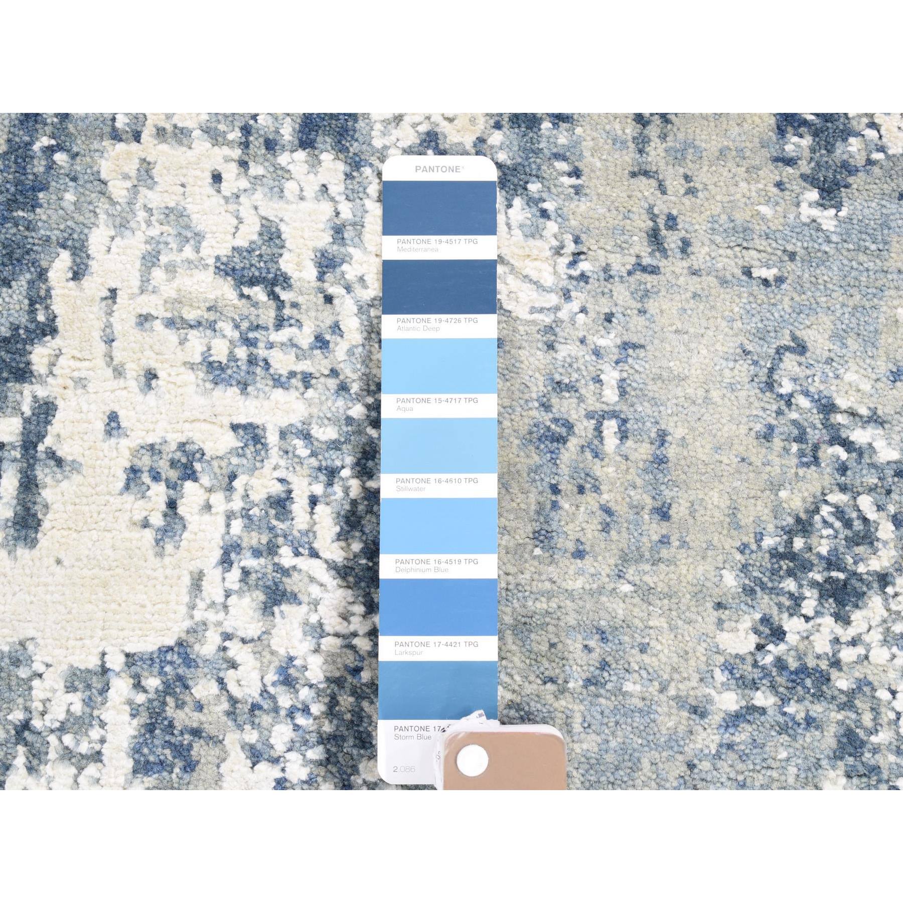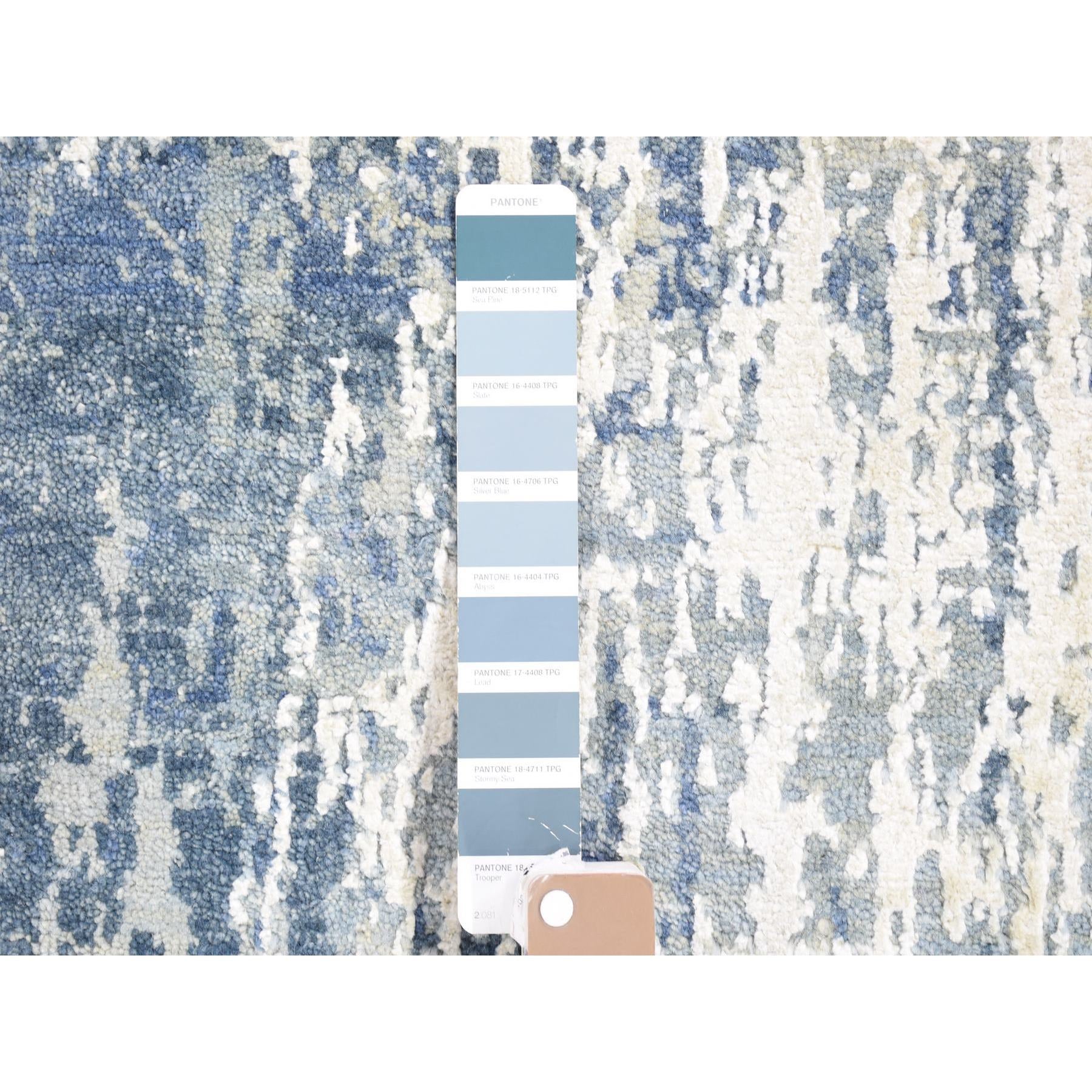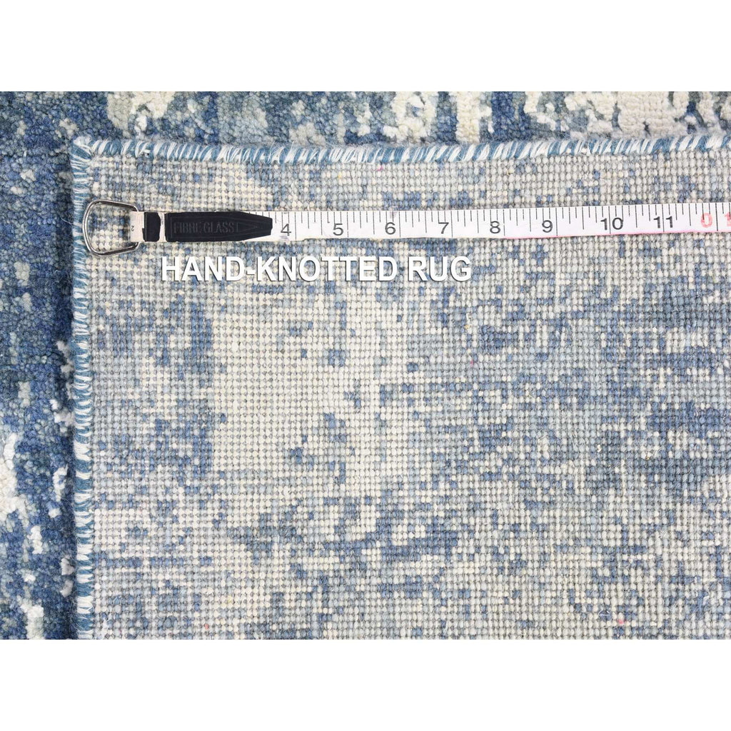 2'6"x10'1" Hand Knotted Denim Blue Abstract Design Wool And Real Silk Runner Oriental Rug FWR401880