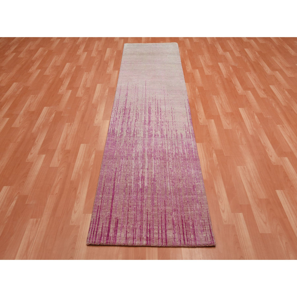 2'6"x10'1" Pink Vertical Ombre Design Natural Wool Hand Knotted Runner Oriental Rug FWR450660
