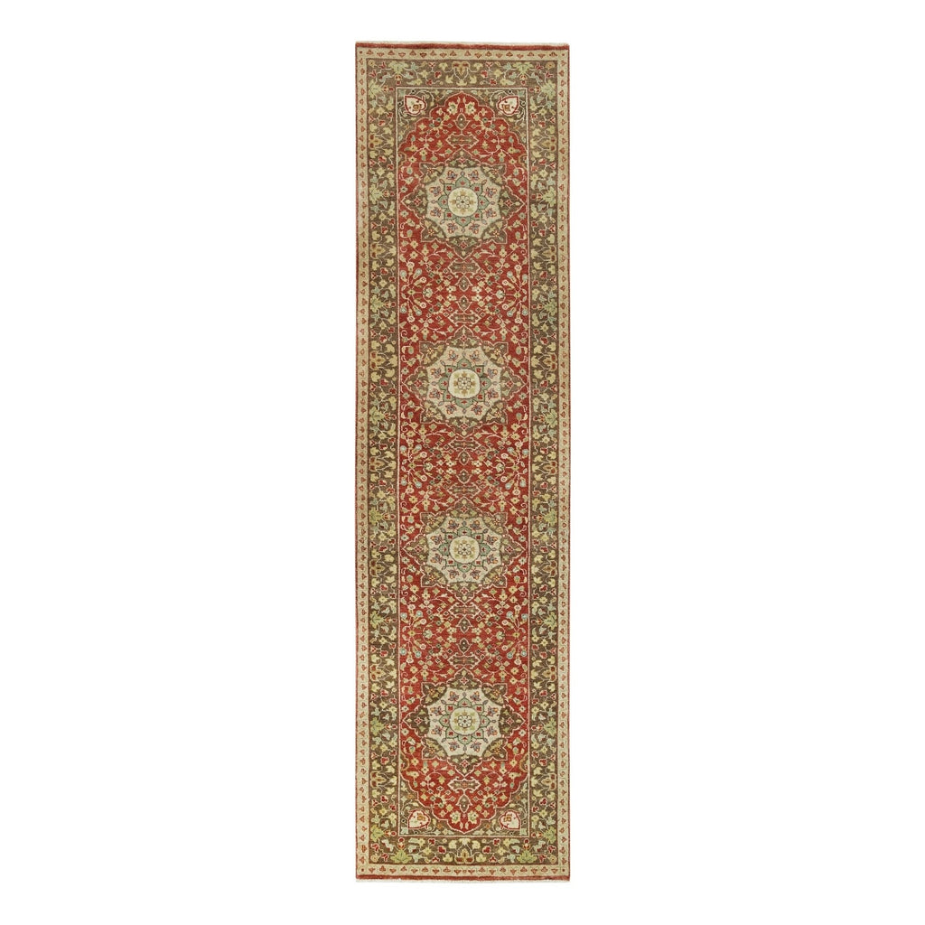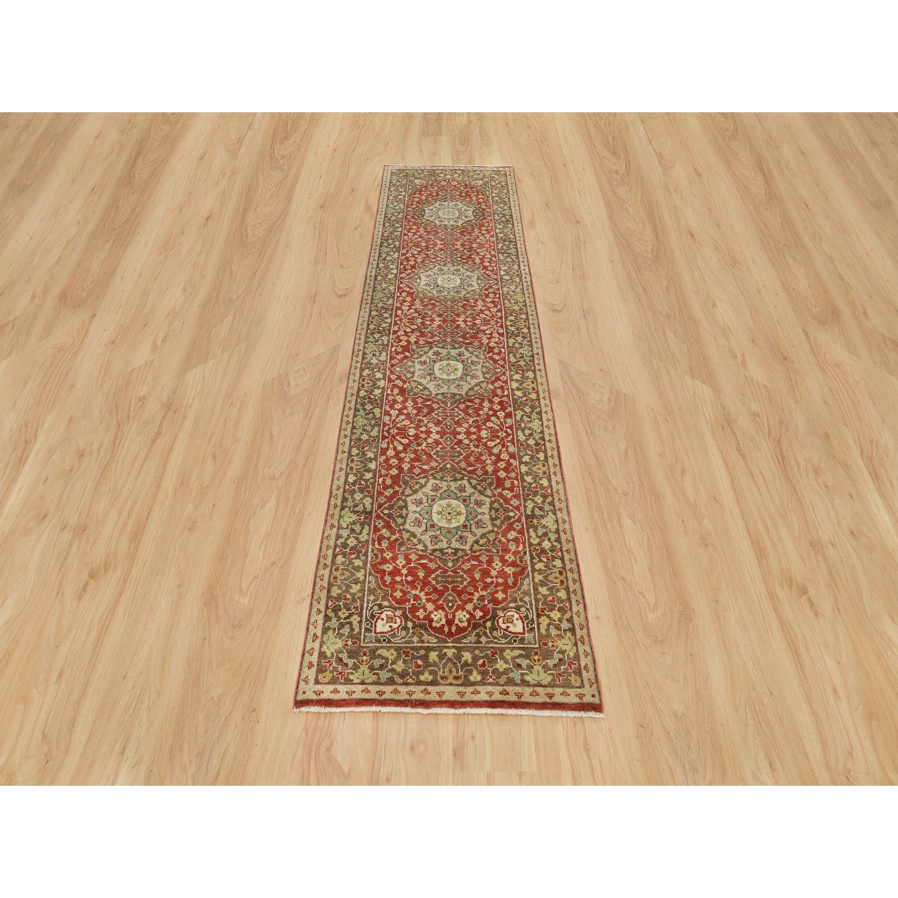 2'6"x10'1" Upsdell Red, Natural Dyes, Dense Weave, Hand Knotted, Antiqued Tabriz Haji Jalili Design, Organic Wool, Soft And Lush Pile, Runner Oriental Rug FWR540678