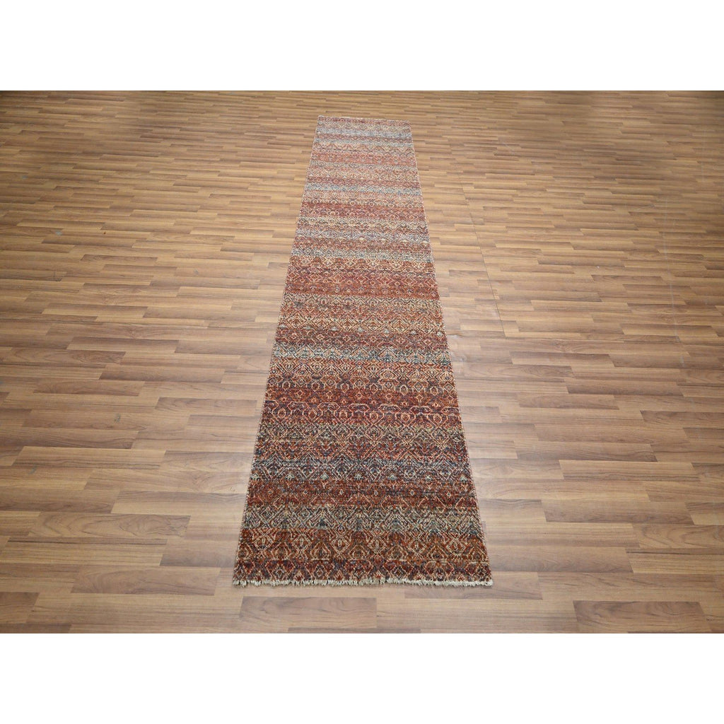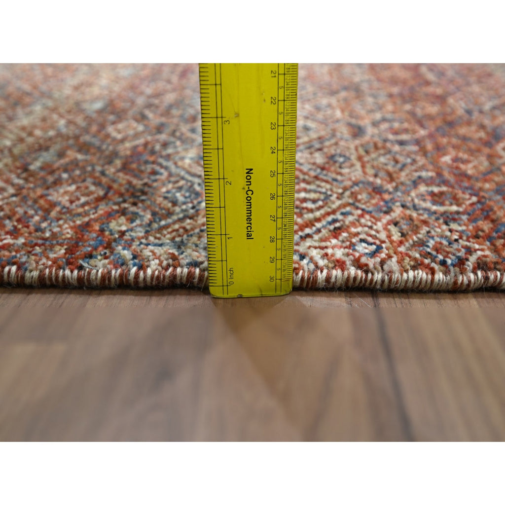 2'6"x10'2" Chili Red, Kohinoor Herat With Small Geometric Repetitive Diamond Pattern, Tone On Tone, Soft And Shiny Wool, Hand Knotted, Runner, Oriental Rug FWR458406