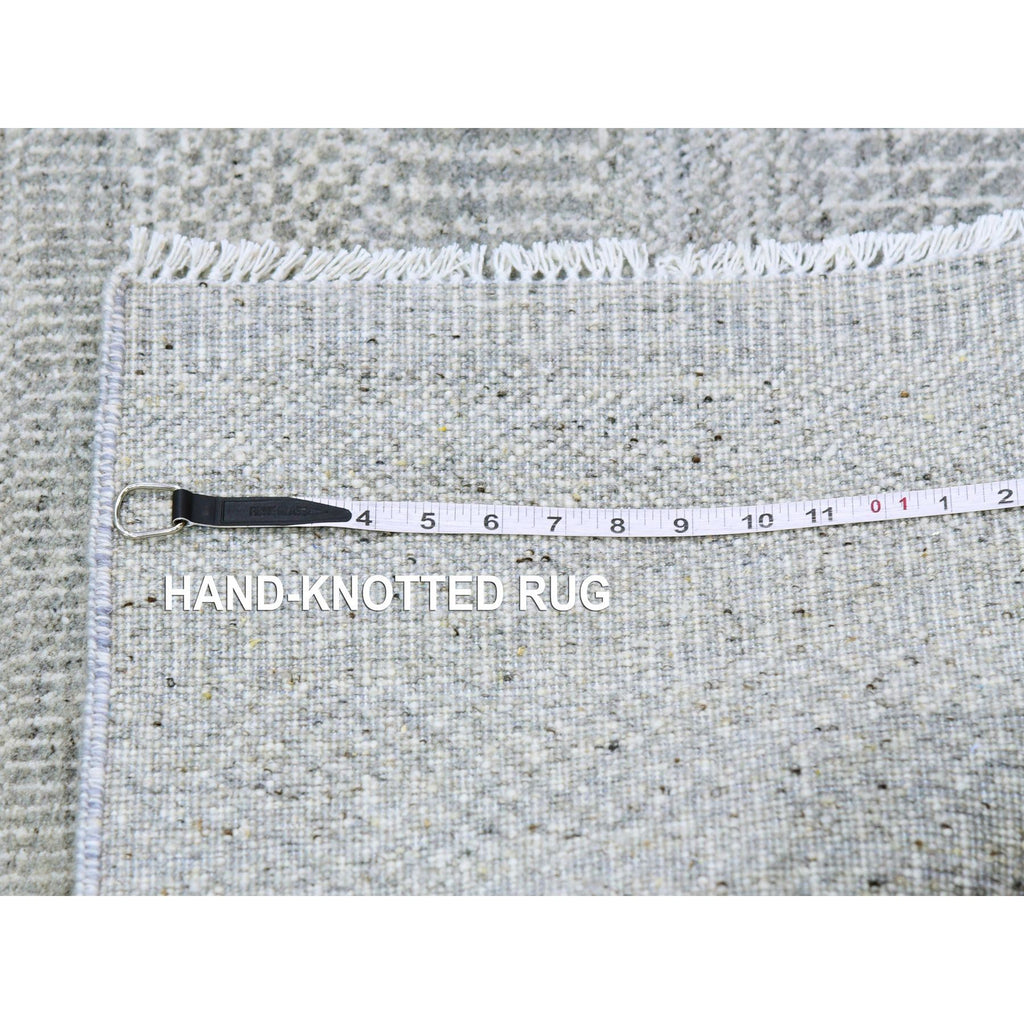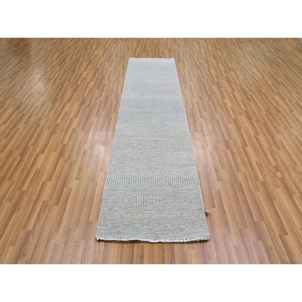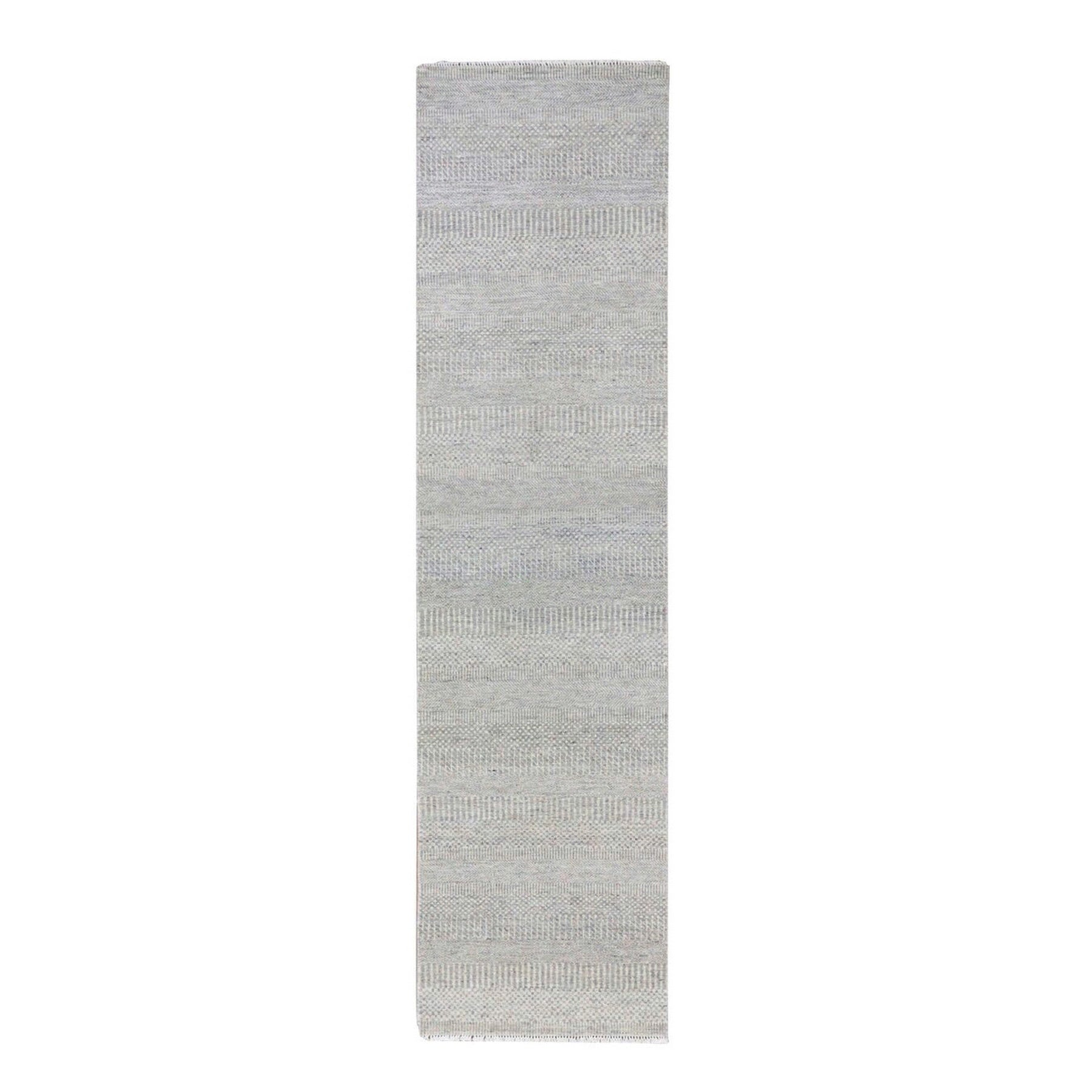 2'6"x10'2" Pastel Gray, Modern Hand Knotted Grass Design, Organic Undyed Wool, Tone On Tone, Runner Oriental Rug FWR477276