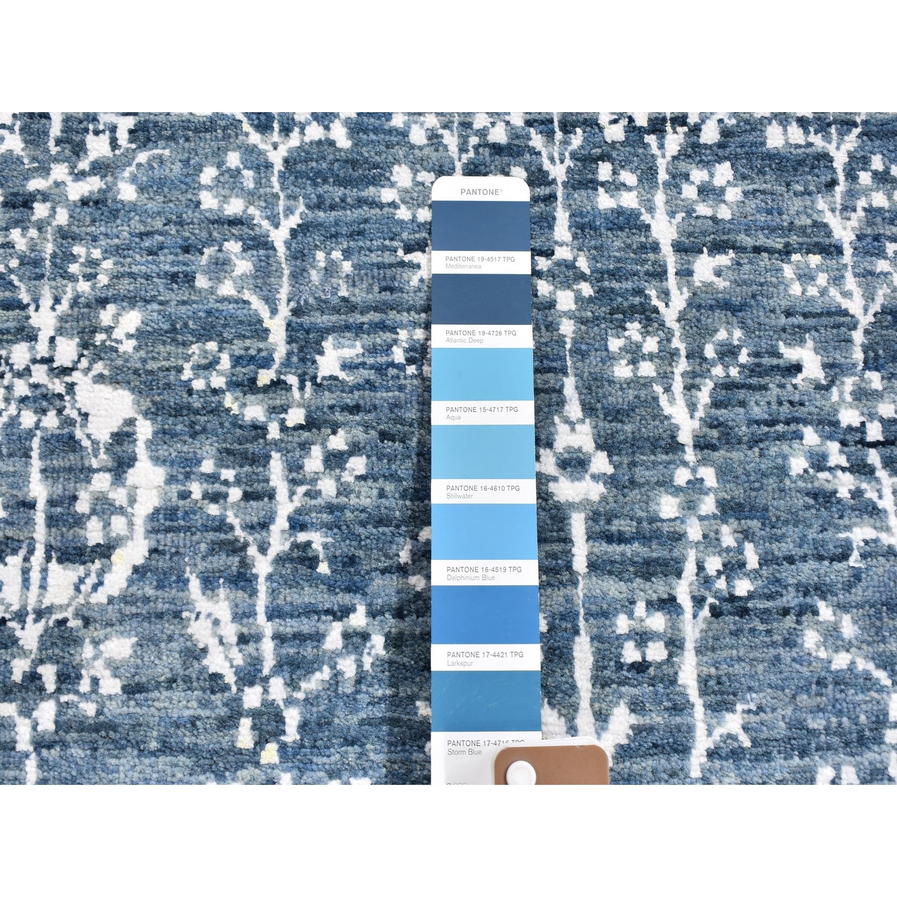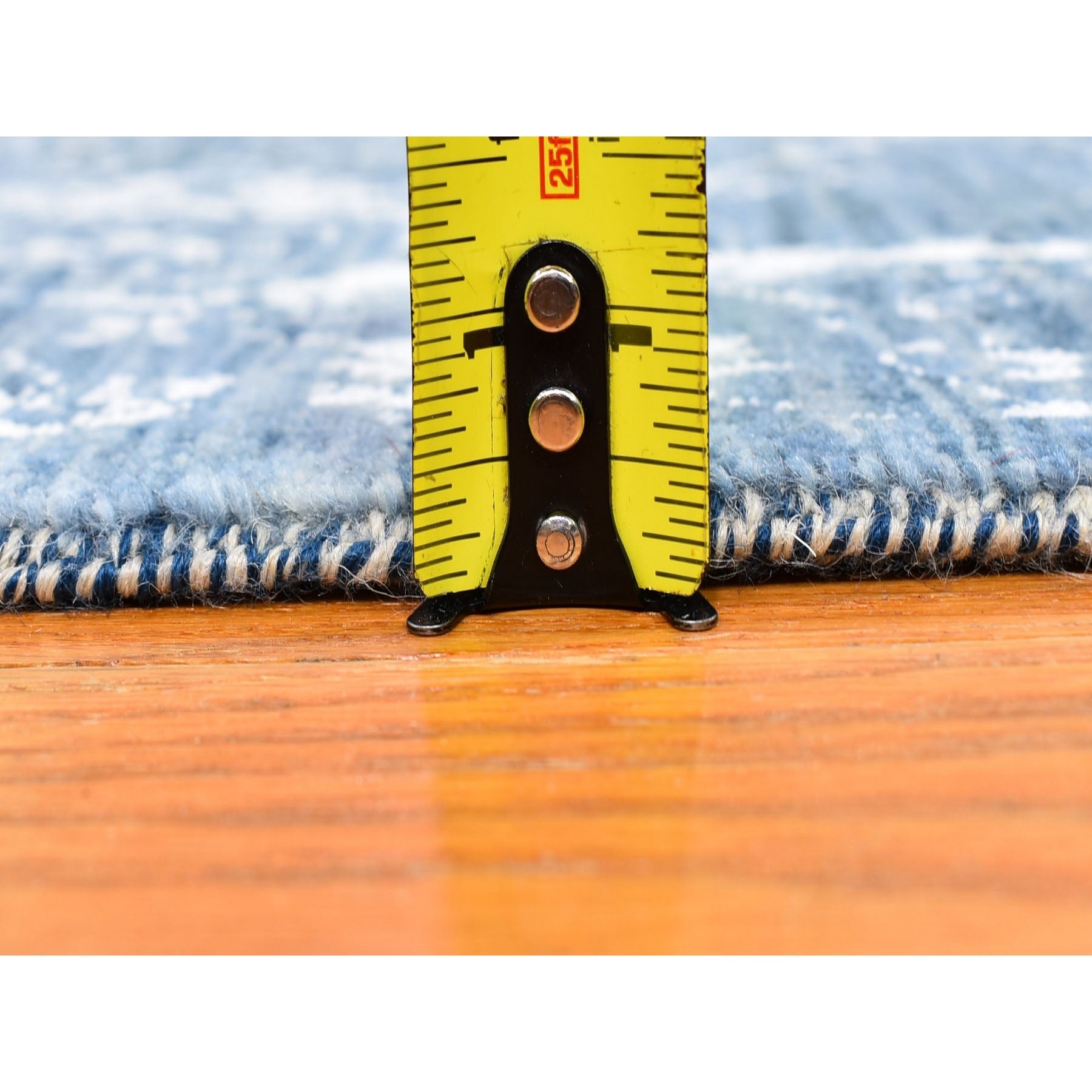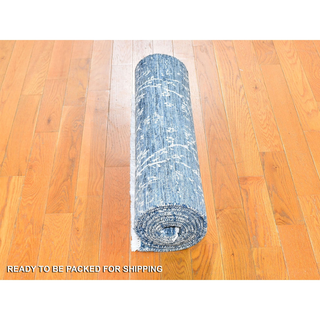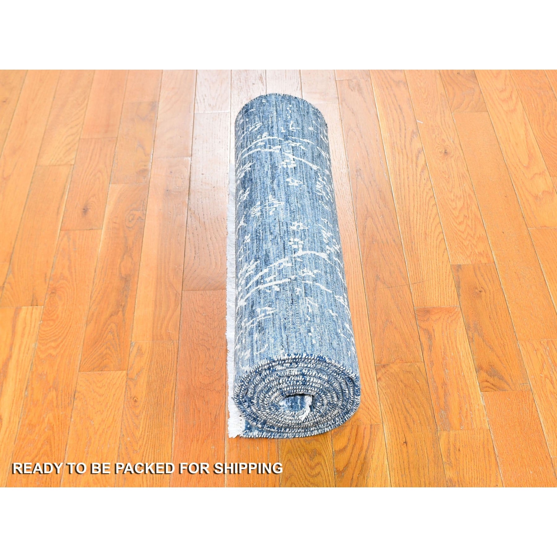 2'6"x10'2" Tone On Tone Oceanic Colors Runner Wool And Silk Hand Knotted Oriental Rug FWR357354