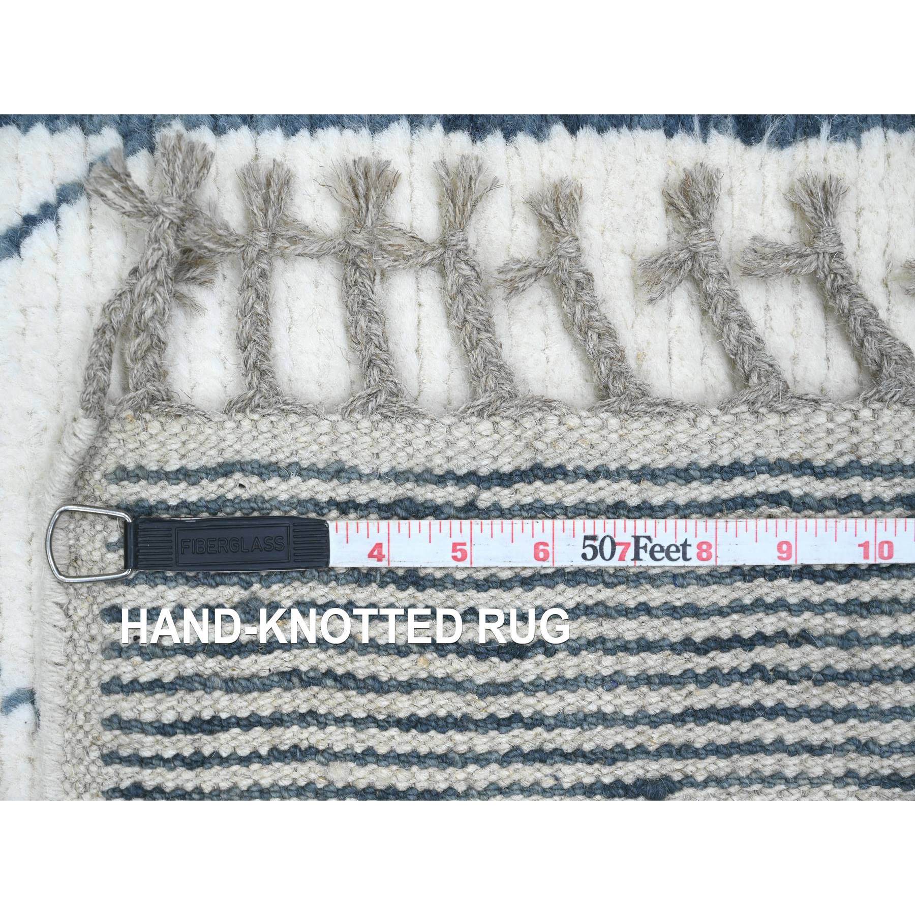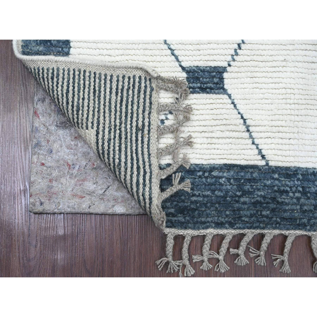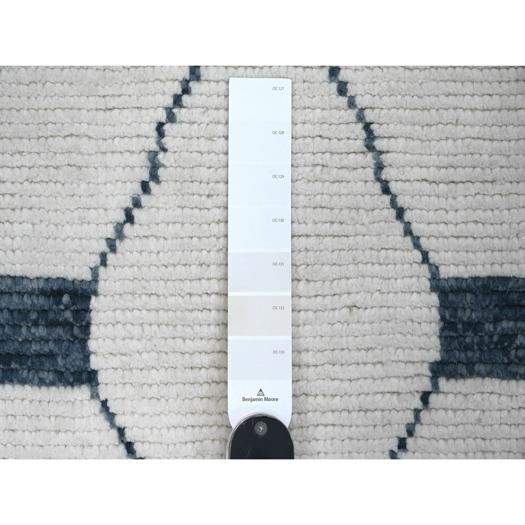 2'6"x10'4" Daisy White, Moroccan Weave With Geometric Pattern, Hand Knotted, Tone On Tone, Soft Wool, Textured Pile, Runner, Oriental Rug FWR123312