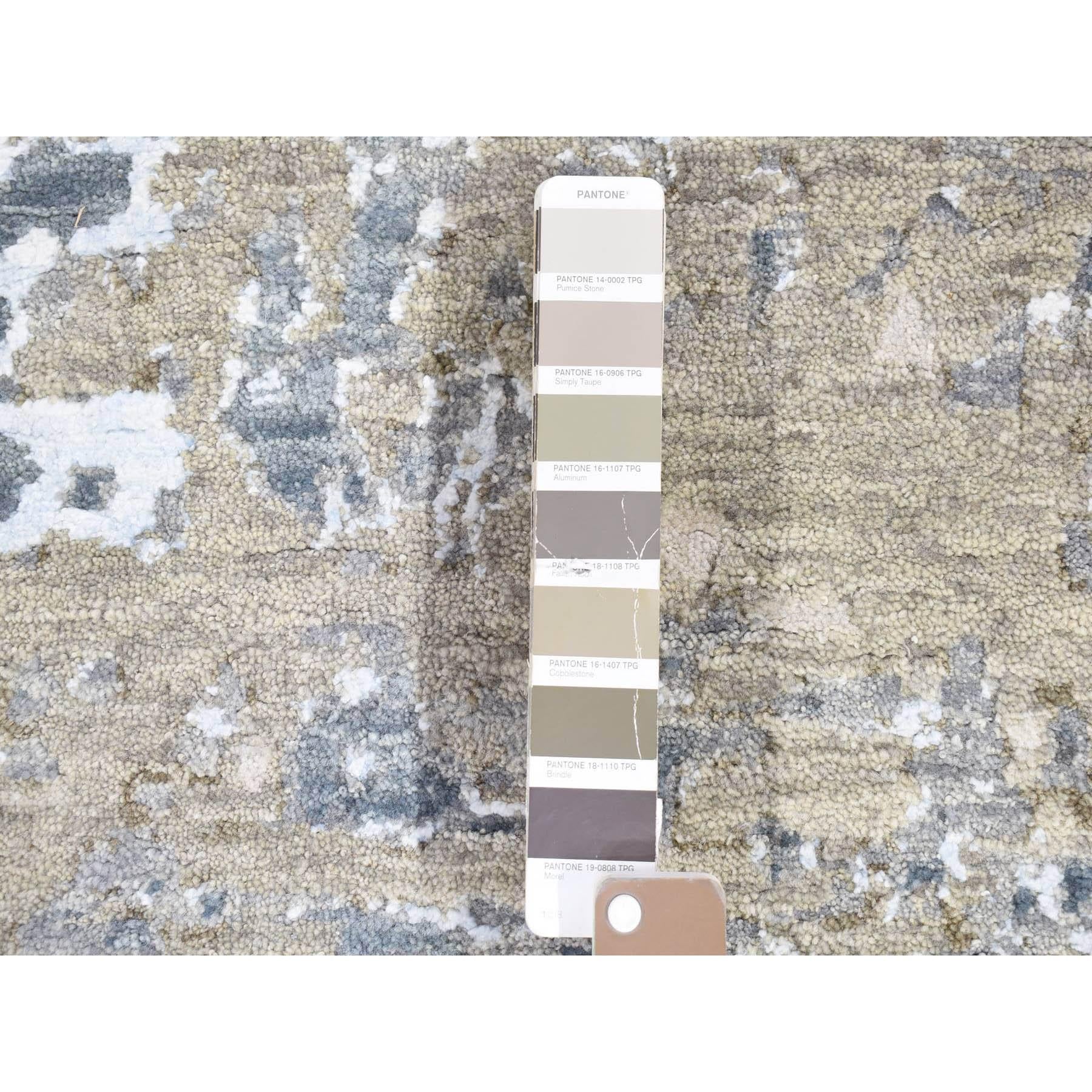 2'6"x10'6" Beige, Modern Abstract Design Denser Weave, Hand Knotted Pure Wool, Runner Oriental Rug FWR481212