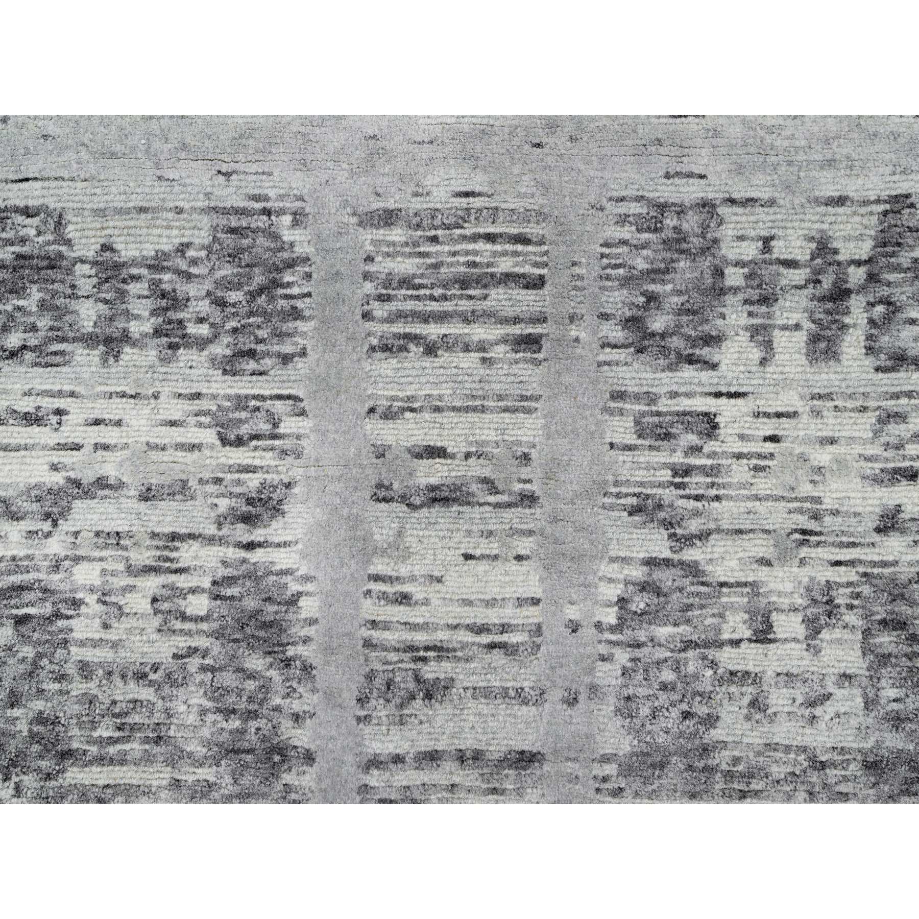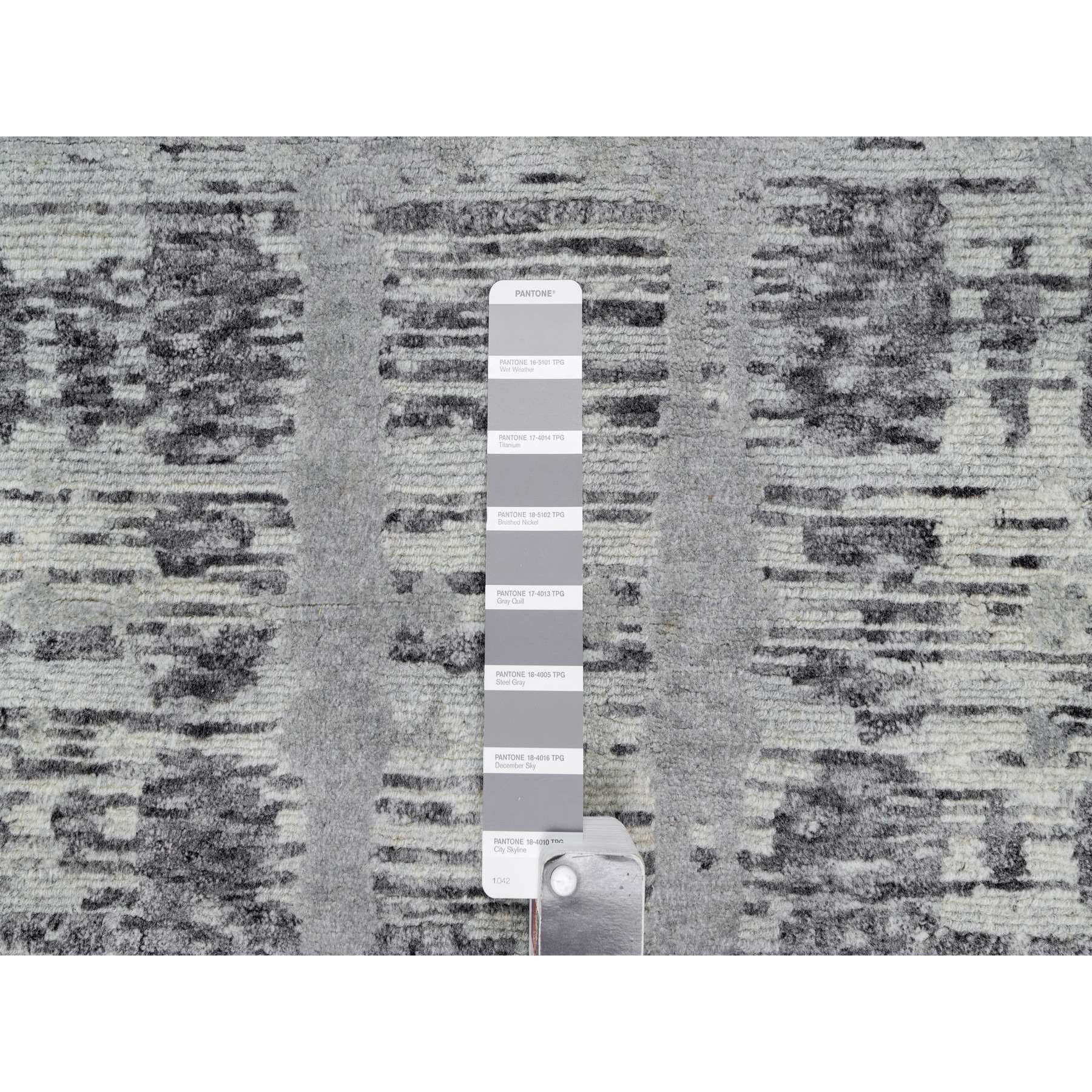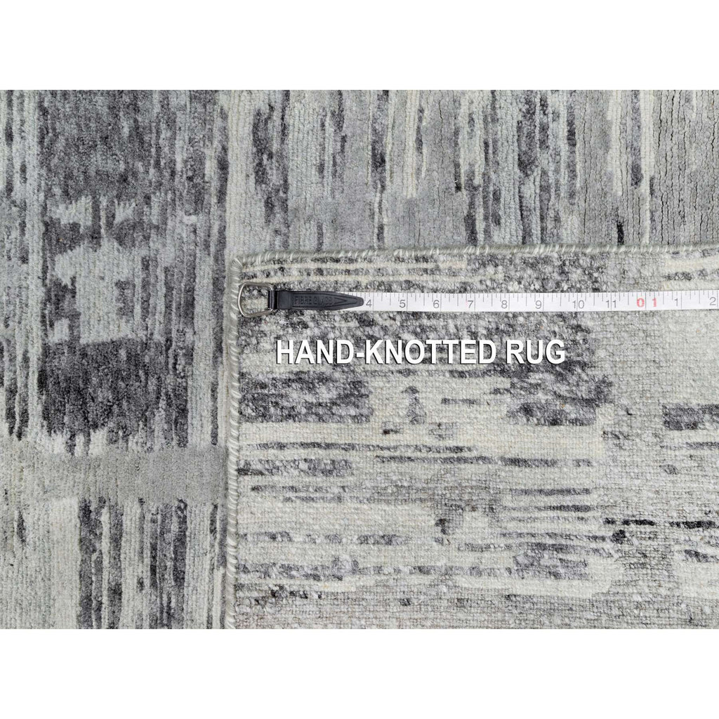 2'6"x10' Ash Gray, Hand Spun, Undyed Natural Wool, Modern Criss Cross Erased Design, Hand Knotted, Runner, Oriental Rug FWR545058
