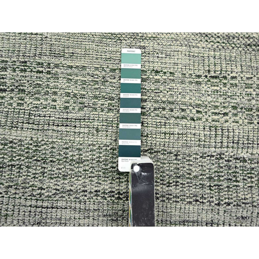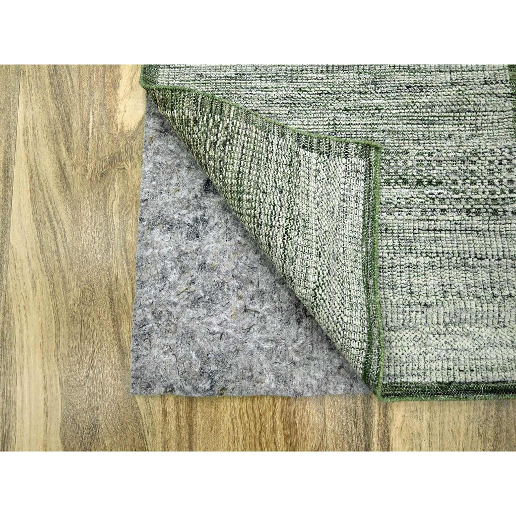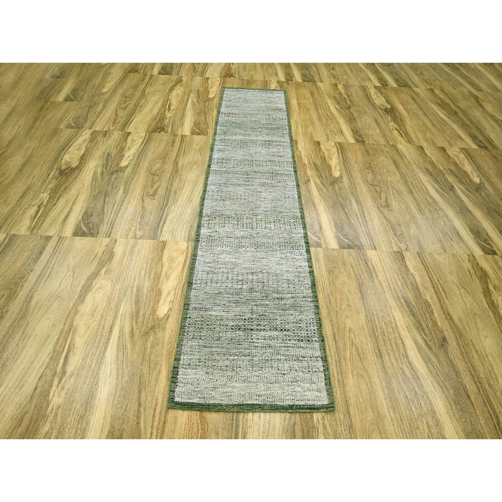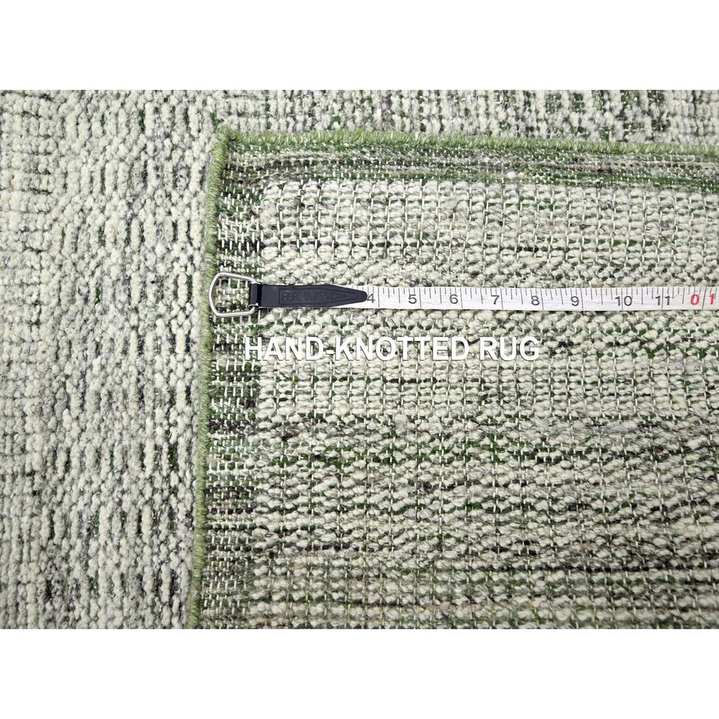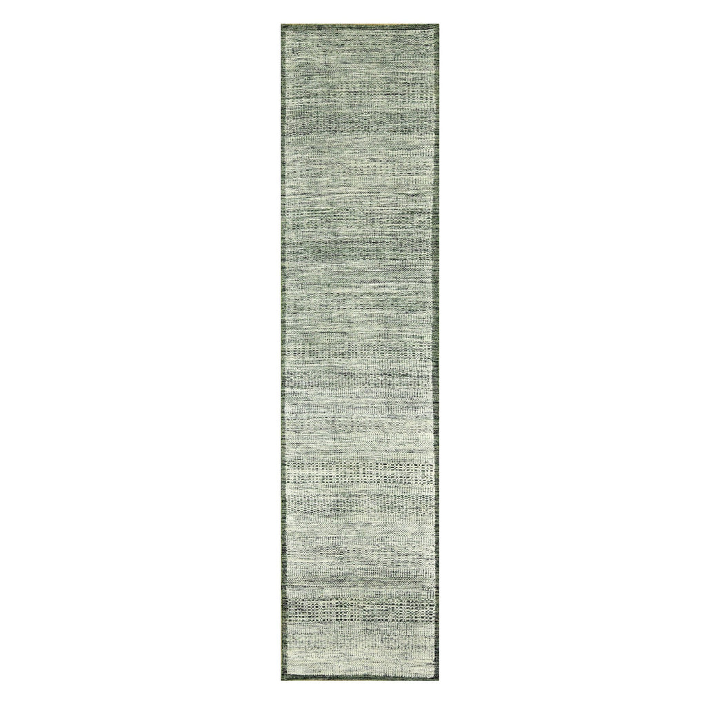 2'6"x10' Bottle Green, Distressed And Oxidized Grass Design With Exposed Warps, 100% Wool, Hand Knotted, Runner, Oriental Rug FWR460446