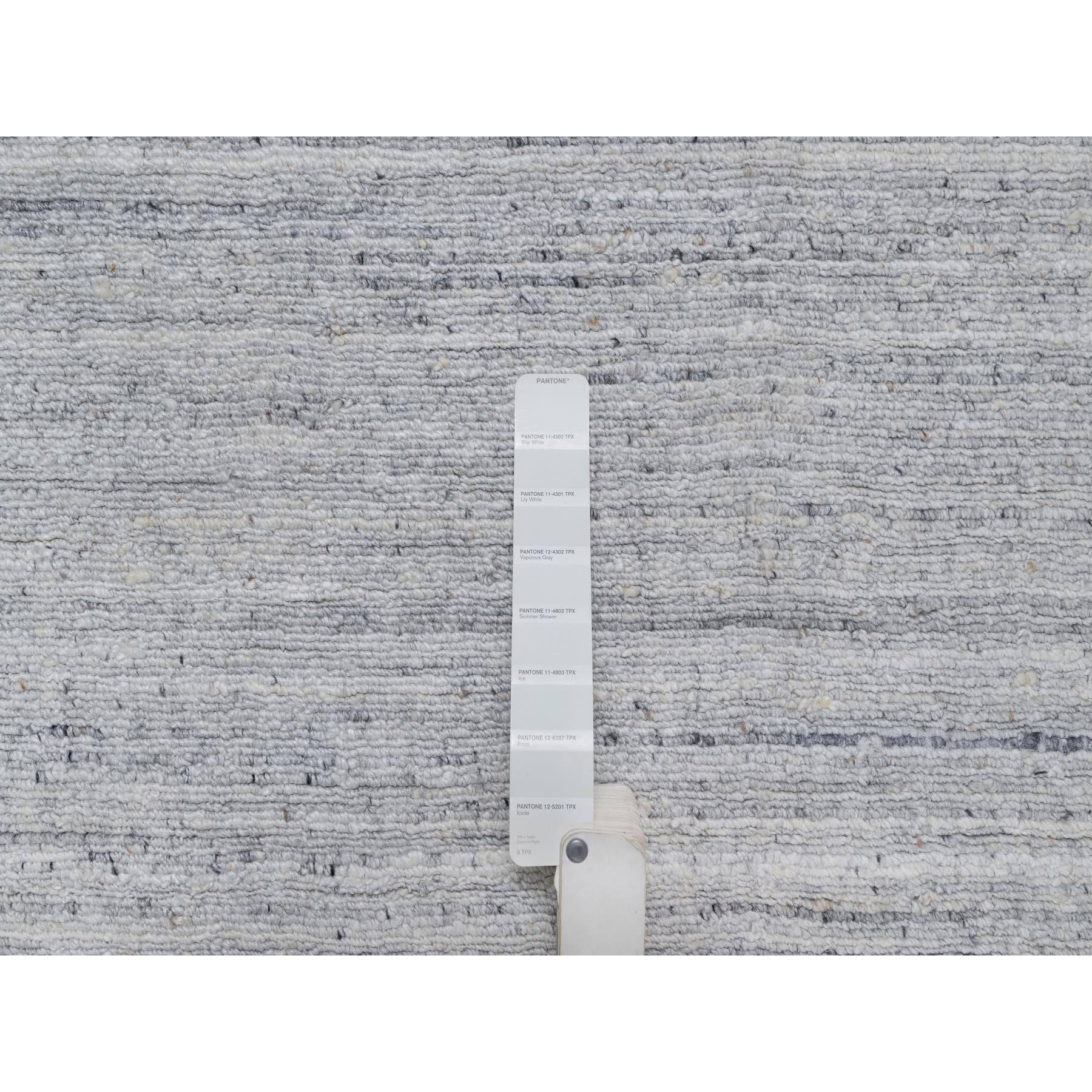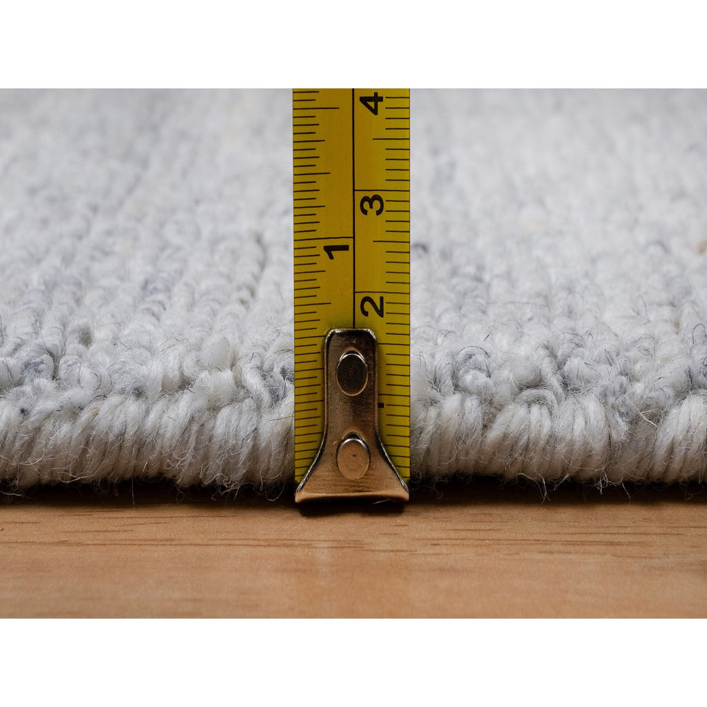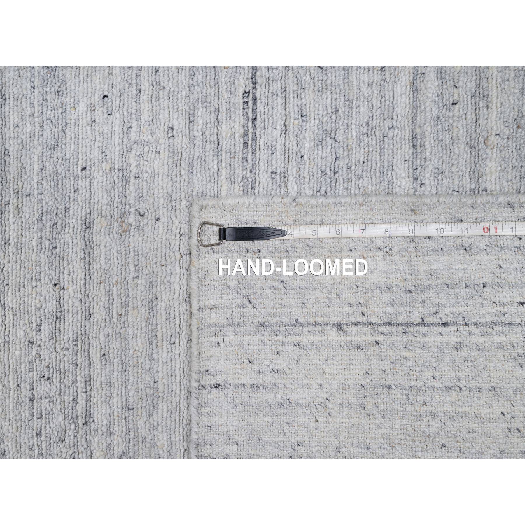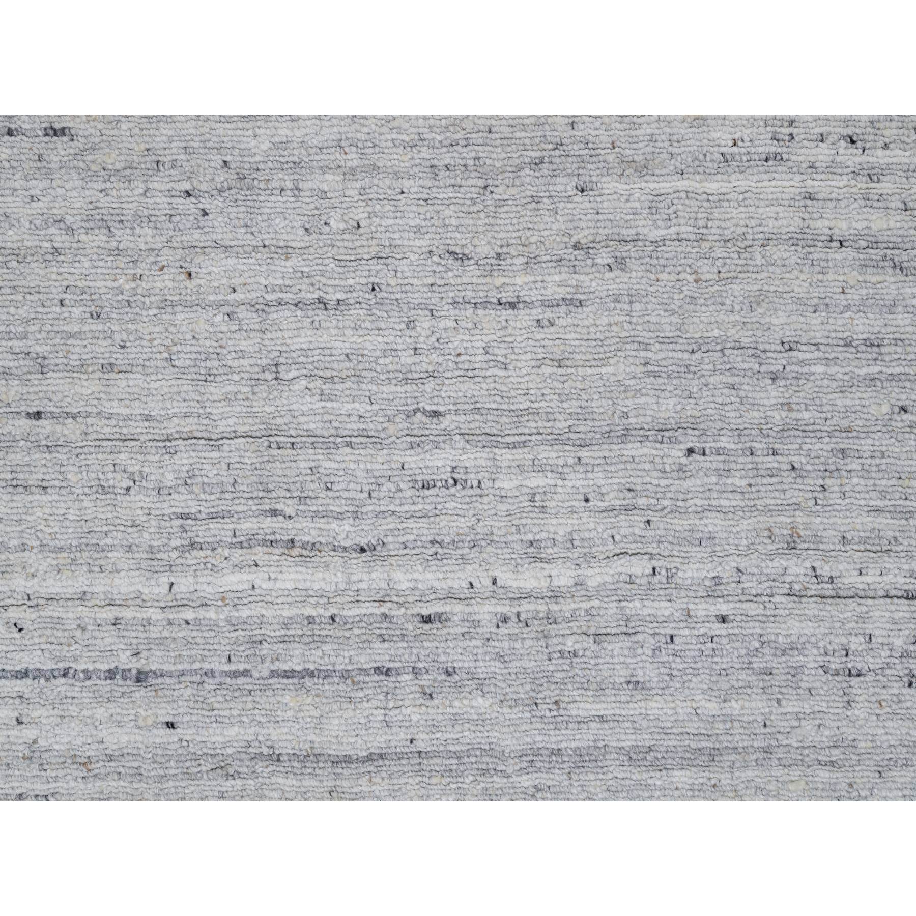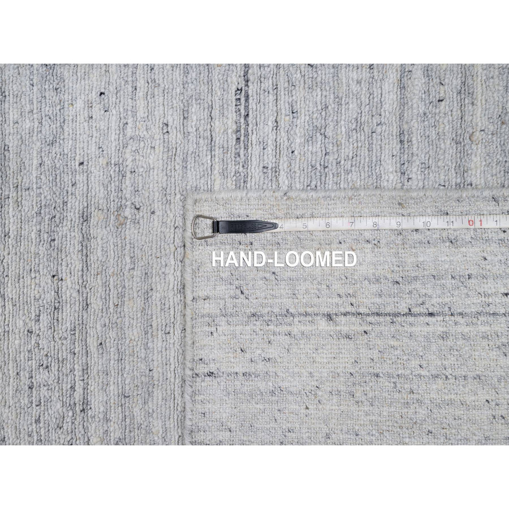 2'6"x10' Daisy White, Hand Loomed, Plain Modern Striae Design, Soft Pile, Natural Wool, Runner, Oriental Rug FWR547074