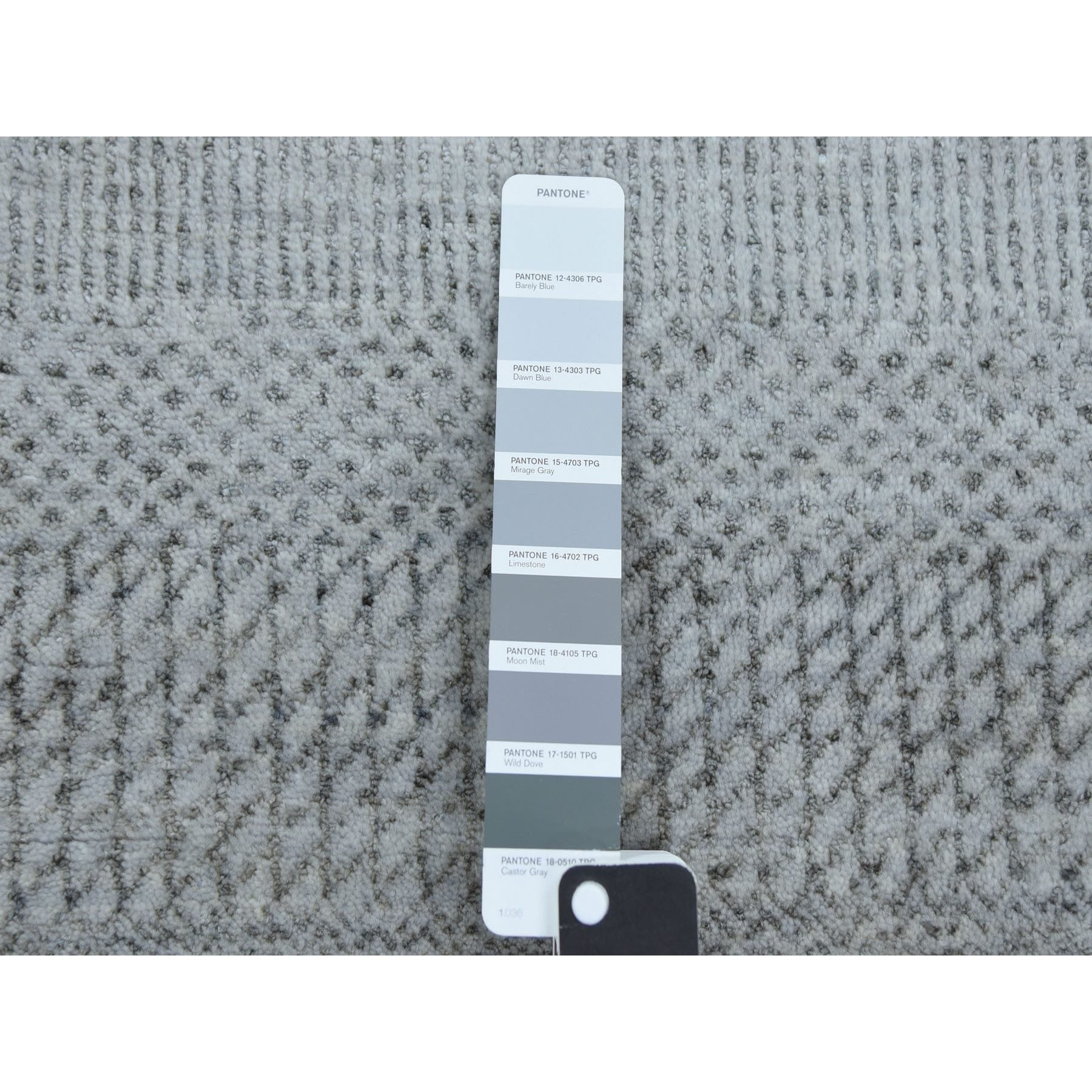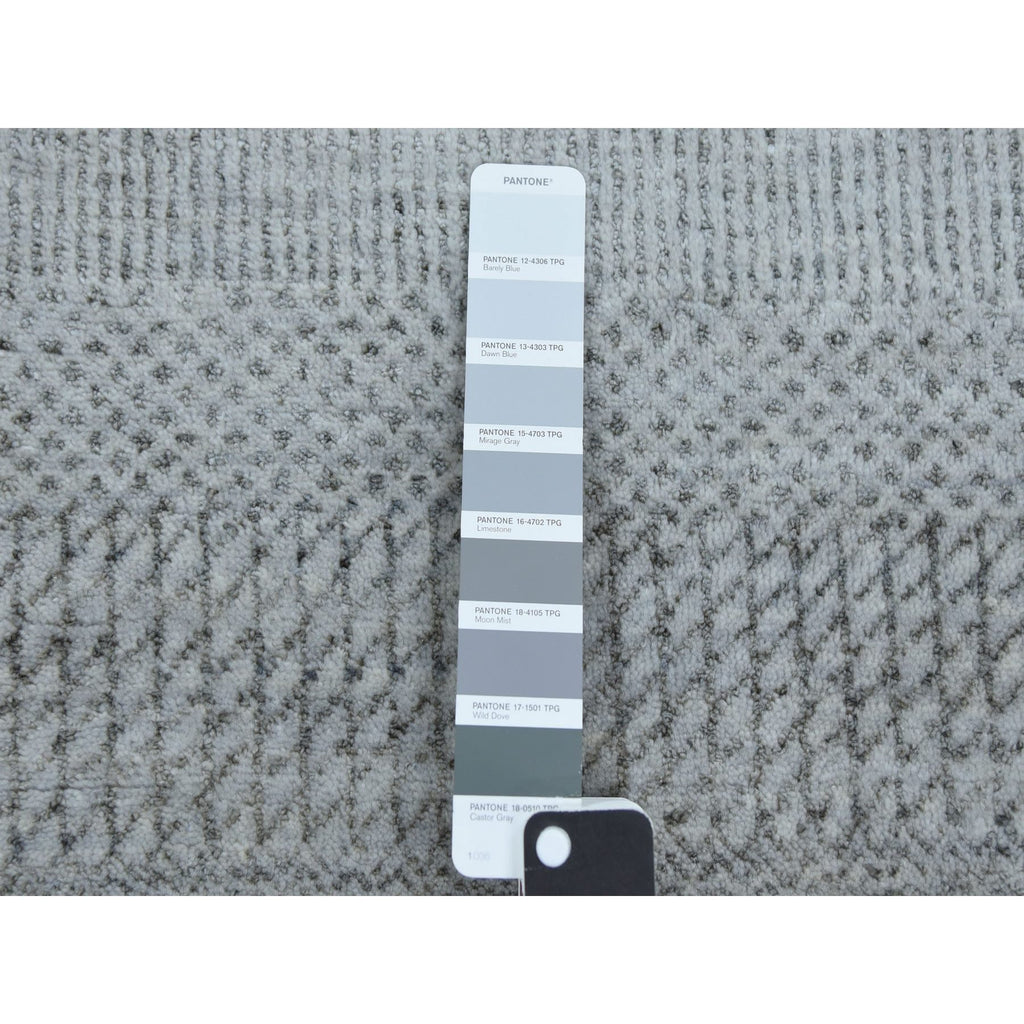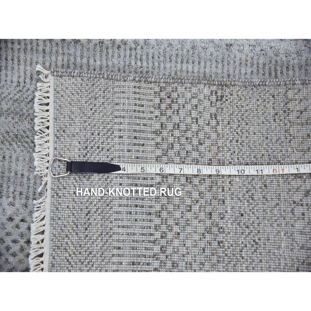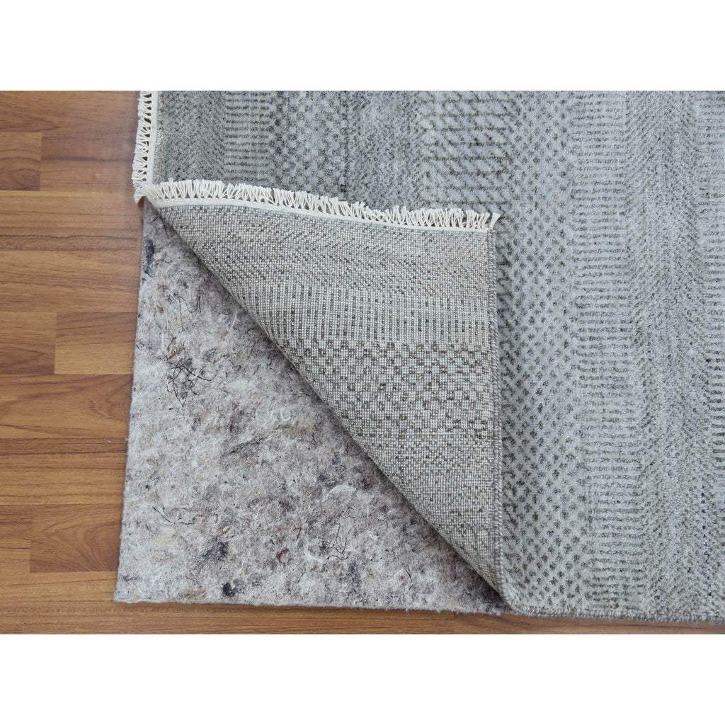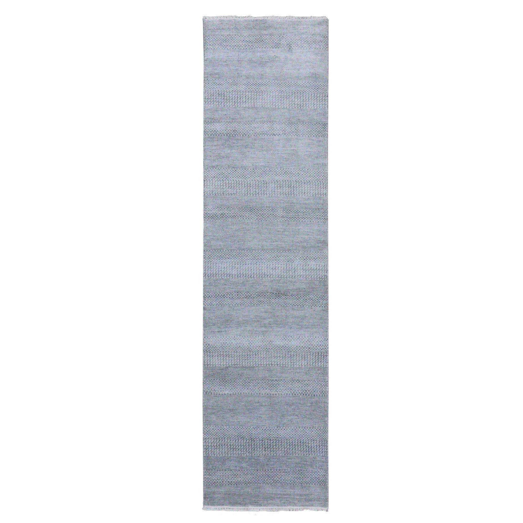 2'6"x10' Gray, Hand Knotted Modern Grass Design Gabbeh, Densely Woven Wool And Silk, Runner Oriental Rug FWR474804